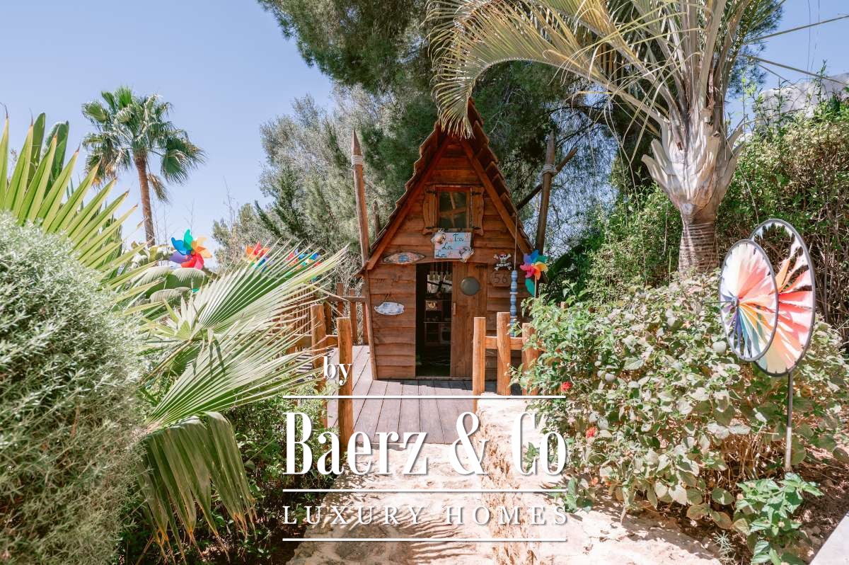 includes a private gym, a game room, and a separate laundry area.With its exceptional finishes and contemporary architecture, this villa is not only the perfect holiday home but also an outstanding investment opportunity in Ibiza.Outdoor Living at Its Finest: Pool, Jacuzzi, and Breathtaking ViewsThe outdoor areas of this villa are just as spectacular as the interiors. The large infinity pool offers unparalleled panoramic views of the lush hills and the sea, while the spacious sun terraces invite you to relax and soak up the Ibiza sunshine. Start your day with a coffee on your private terrace, spend the afternoon lounging by the pool, and end the evening with a barbecue in the outdoor kitchen, dining under the stars.The jacuzzi adds an extra layer of relaxation, while the Bali-style pergola with massage beds offers a unique wellness experience with mesmerizing island views. Families will appreciate the dedicated play area and trampoline, making this villa an excellent choice for both families and investors seeking a high-end property in Ibiza.Are you looking for a dream villa that combines privacy, luxury, and a prime location? Then this is your opportunity. This exclusive villa in Can Furnet offers everything you need in a high-end Ibiza home. Contact us today to schedule a viewing and experience this extraordinary property firsthand!Additional OpportunitiesSince this is a big buildable plot within an urbanization, there is even the option to completely demolish the existing villa and develop something entirely new and contemporary on this location. Whether you dream of building your own home, considering a full renovation, or making specific modifications to change the layout, the possibilities are endless. At Ibiza Estates, we are more than happy to think along with you!