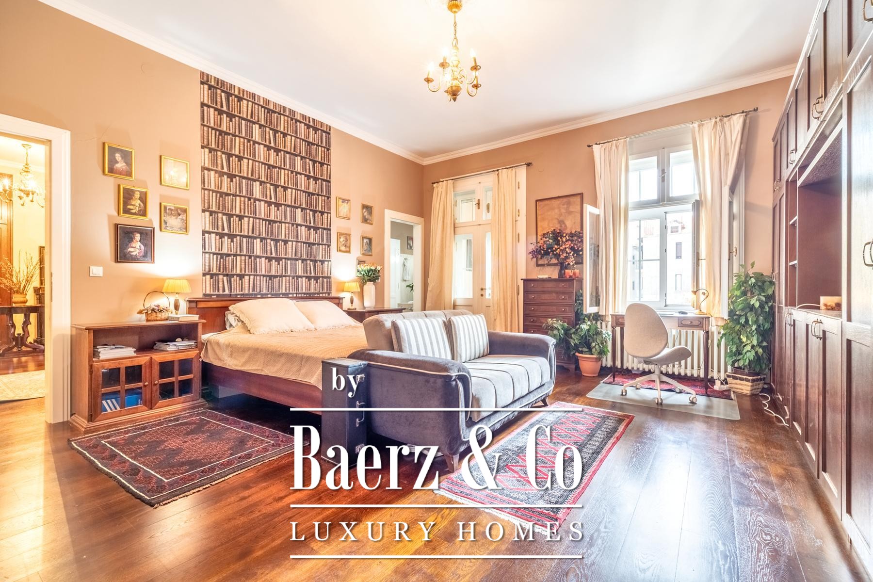 Zagreb, Center, beautiful three-bedroom apartment of 161 m2 located on Mažuranić Square within the green zone of Lenuzzi's horseshoe, in one of the most beautiful buildings in Zagreb. Located on the second floor of a well-maintained building with an elevator.It consists of an entrance hall, reception hall, large living room with balcony and park view, two spacious bedrooms, one of which has a loggia on the courtyard side, two bathrooms, kitchen with dining room and access to the courtyard balcony and laundry room.Excellently organized floor plan, east-west orientation, living area separated from the sleeping area, ceiling height 365 cm, completely renovated (2010), double
