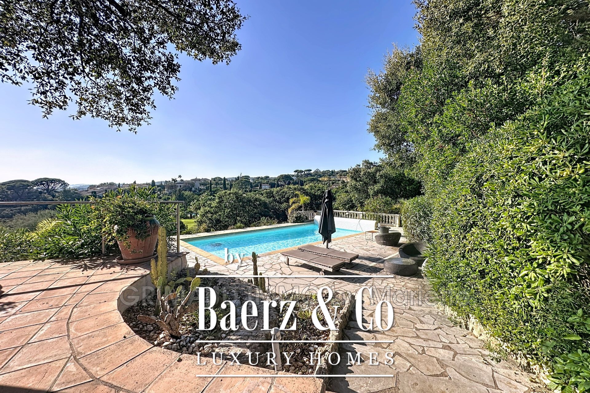 fitted kitchen, three bedrooms with two shower rooms, upstairs a master suite with its bathroom and an office. Numerous covered and uncovered terraces. Beautiful amenities and a beautiful view of the bay of Saint Tropez.