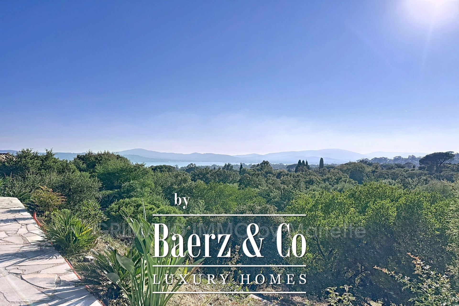 SEA VIEW for this beautiful Provençal villa, peacefully located on a large plot of 4100m² with heated swimming pool, jacuzzi and pétanque court, comprising: entrance hall, living room with fireplace, beautiful independent