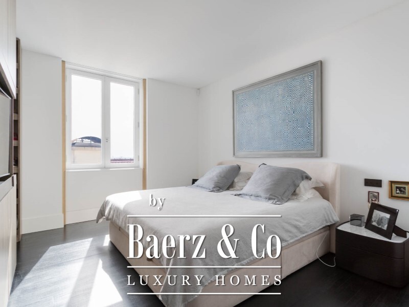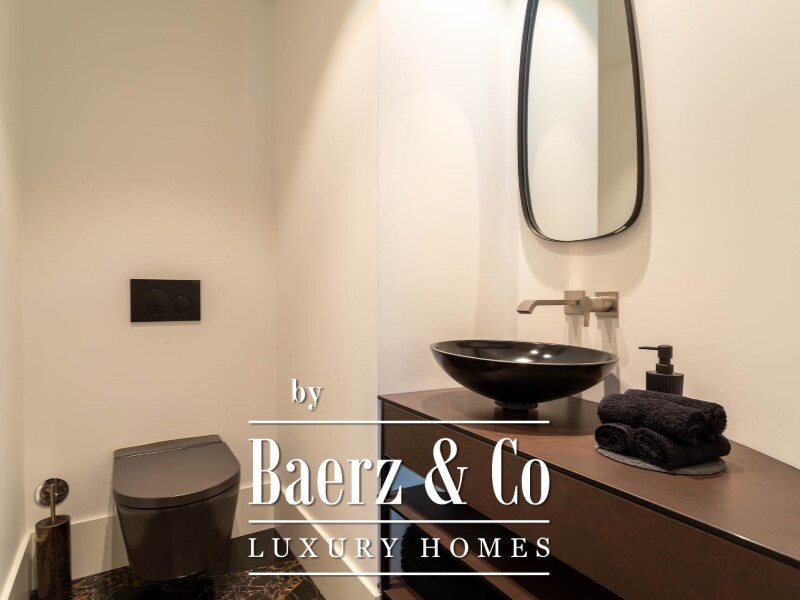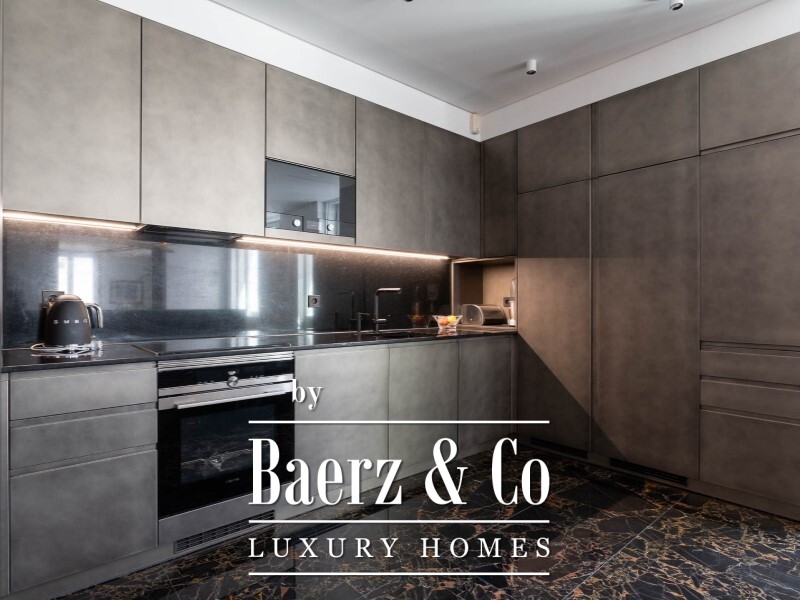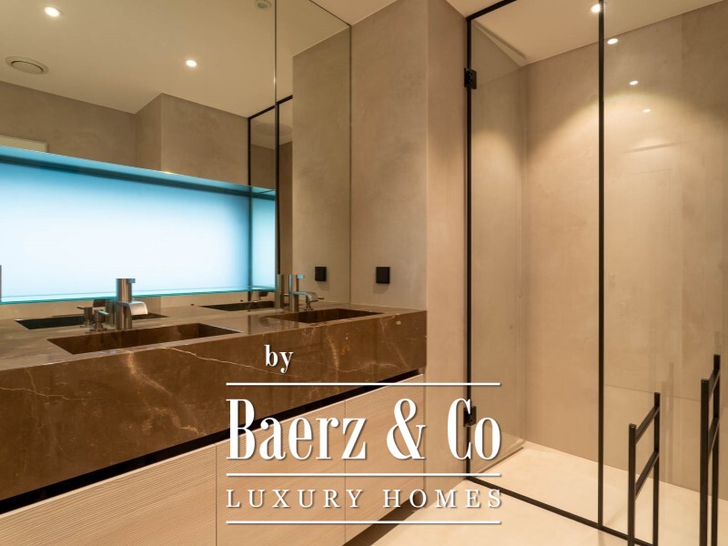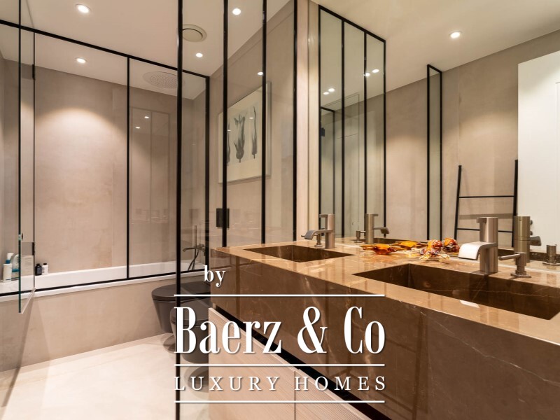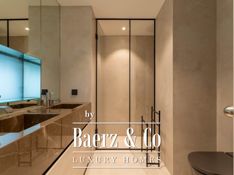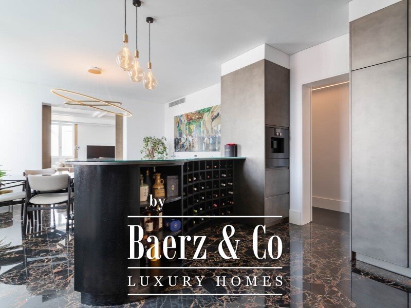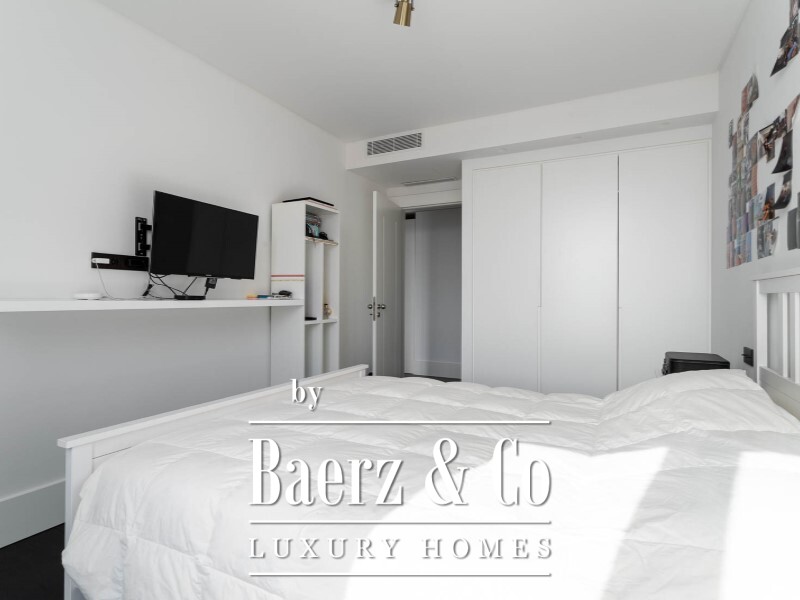 Inside the apartment, the floor of the social areas and bedrooms is solid wood painted in black. All bathrooms have marble stone finishes and underfloor heating. All rooms also have integrated air conditioning and wardrobes.