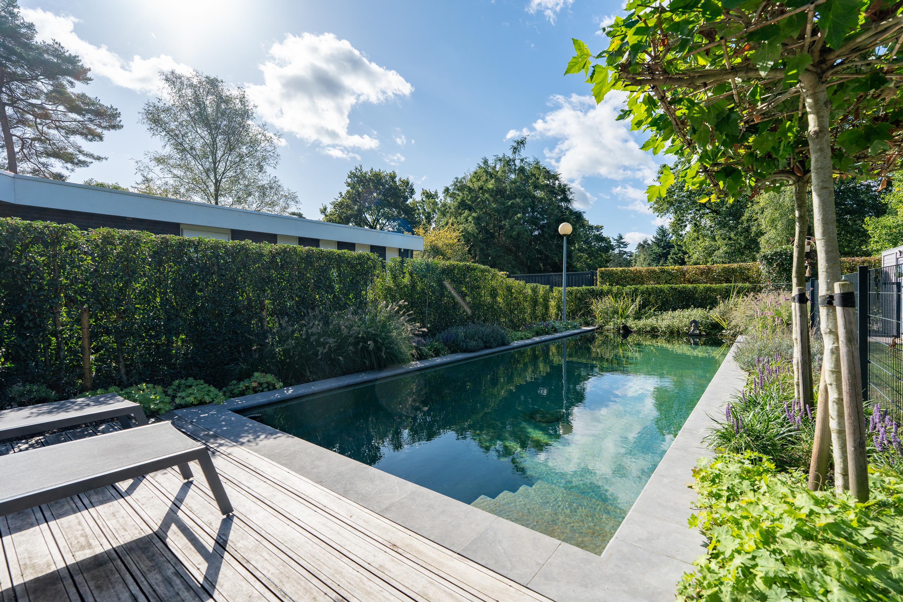 This bungalow offers a great opportunity to live on one level and still enjoy a garden, in one of the most popular residential areas in the region! In addition to the spacious living area, the house has a multifunctional (studio) space with its own entrance, kitchen and bathroom. There is also an attached workshop with a kitchenette and separate toilet, offering additional possibilities for a hobby or practice space. Together with the sustainable renovation and the beautiful swimming pond, this makes it a particularly versatile home.
