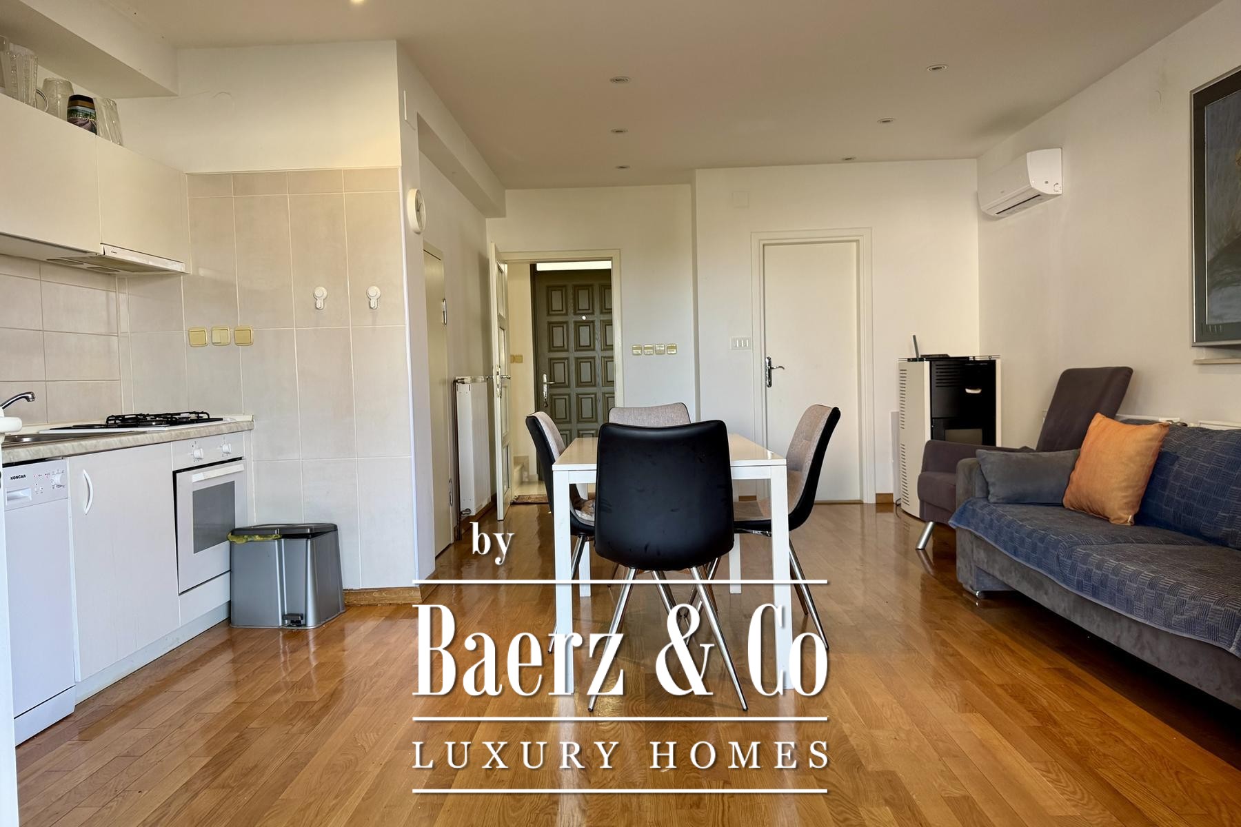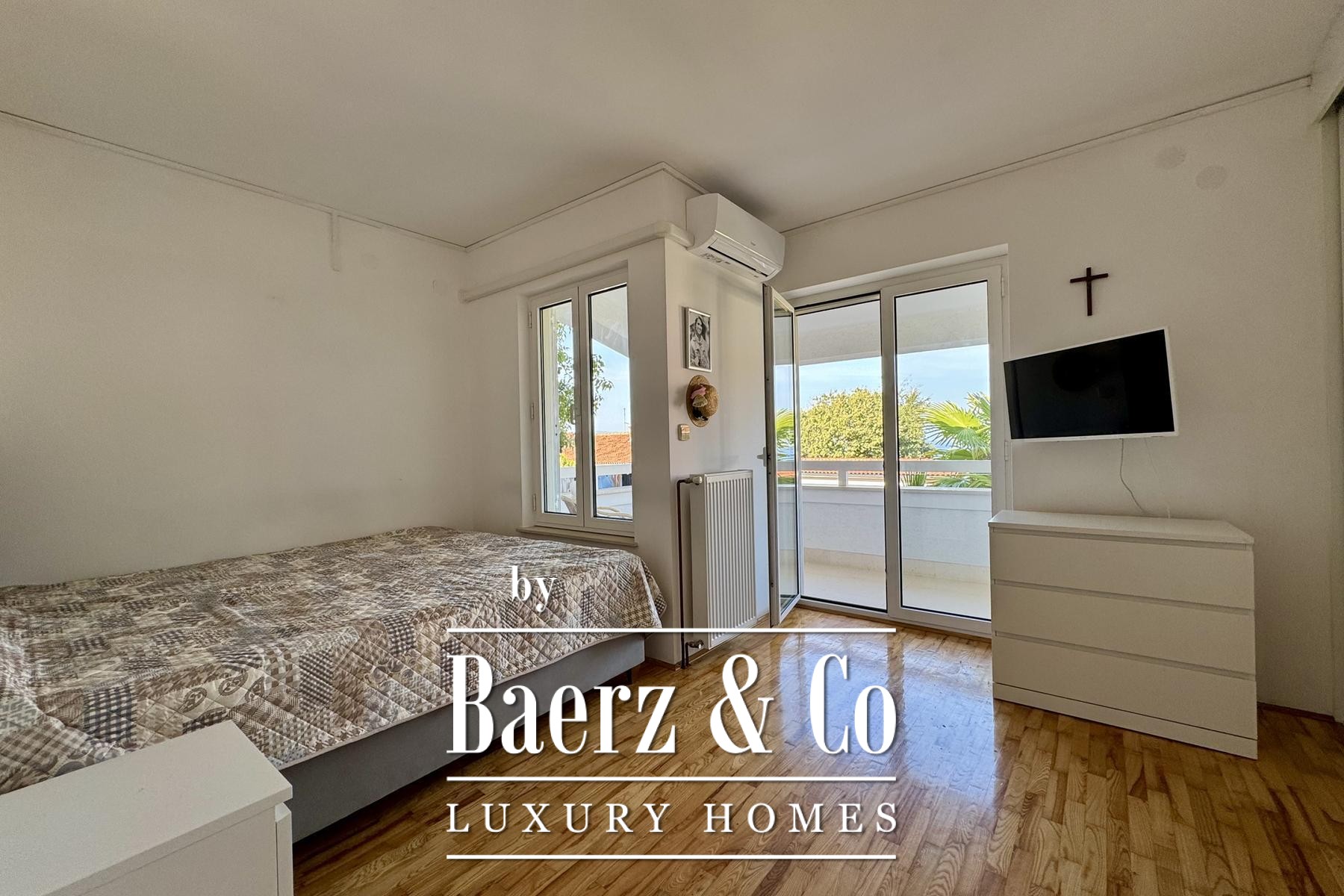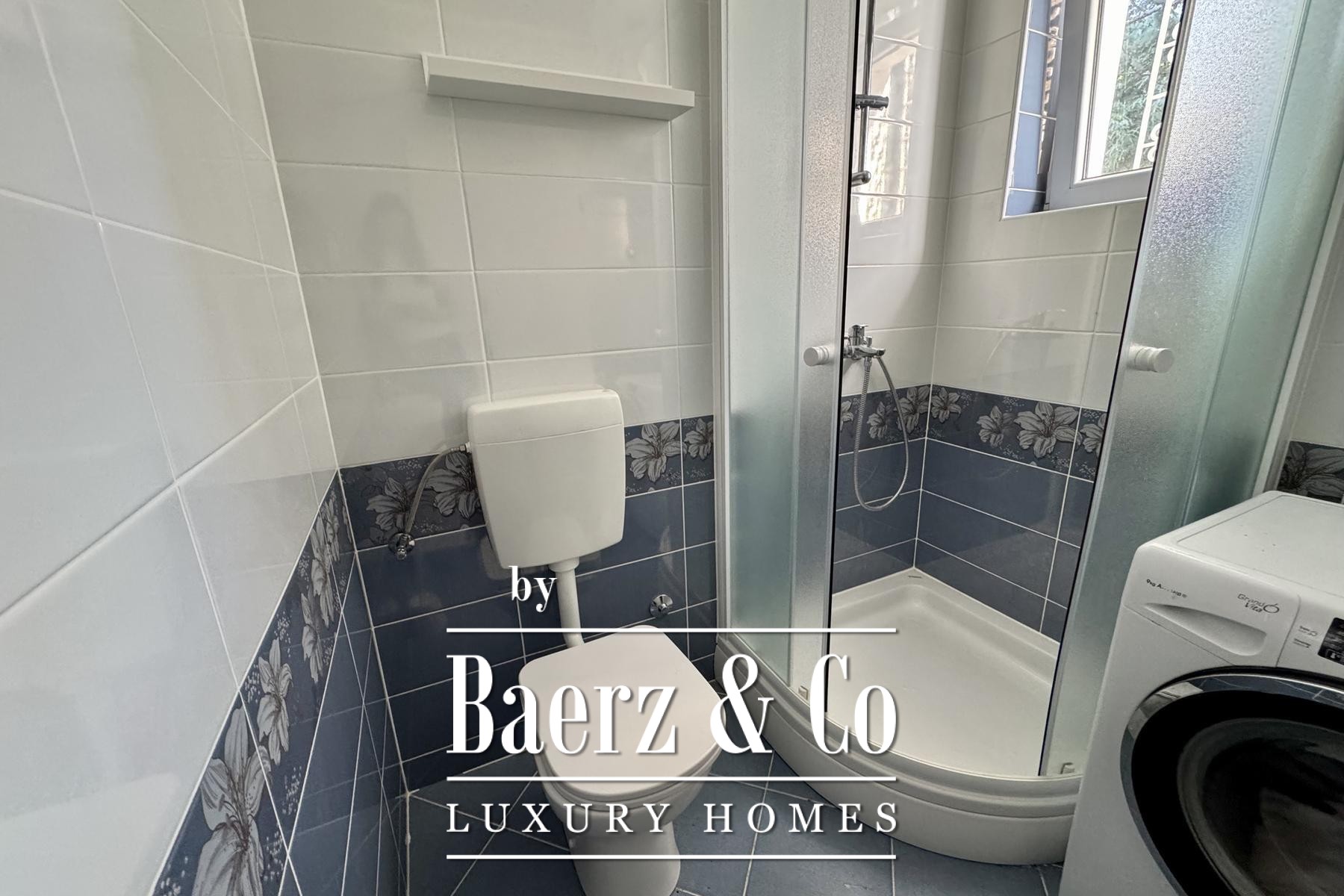 apartment consists of a bedroom, bathroom, kitchen, living room and terrace.Another additional apartment is located in the basement of the house and has two bedrooms, a kitchen, a bathroom and a storage room.There is also a garage in the yard of the house, and the garden itself is full of beautiful Mediterranean plants.Four more cars can be parked in the yard.For any additional information, feel free to contact us!