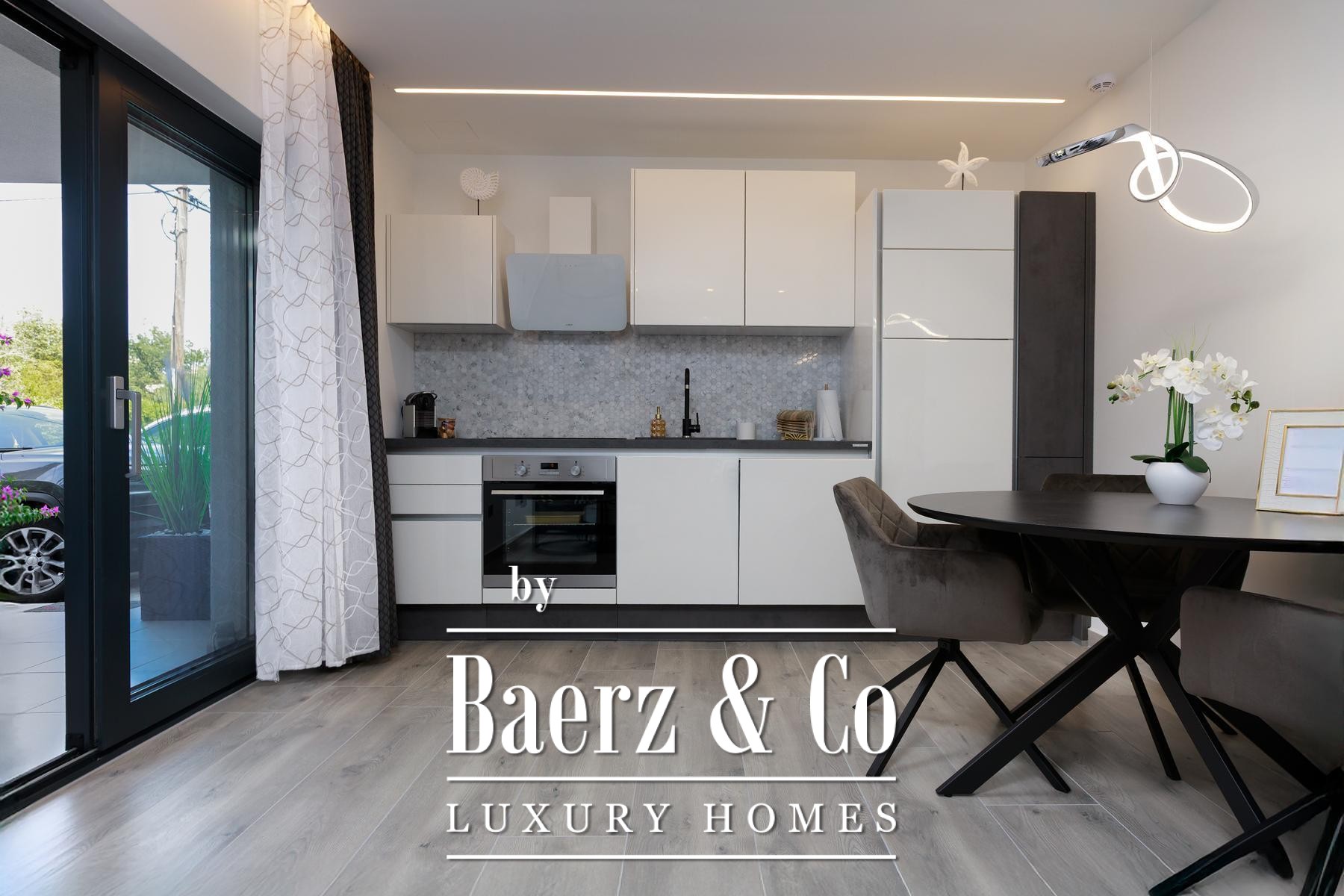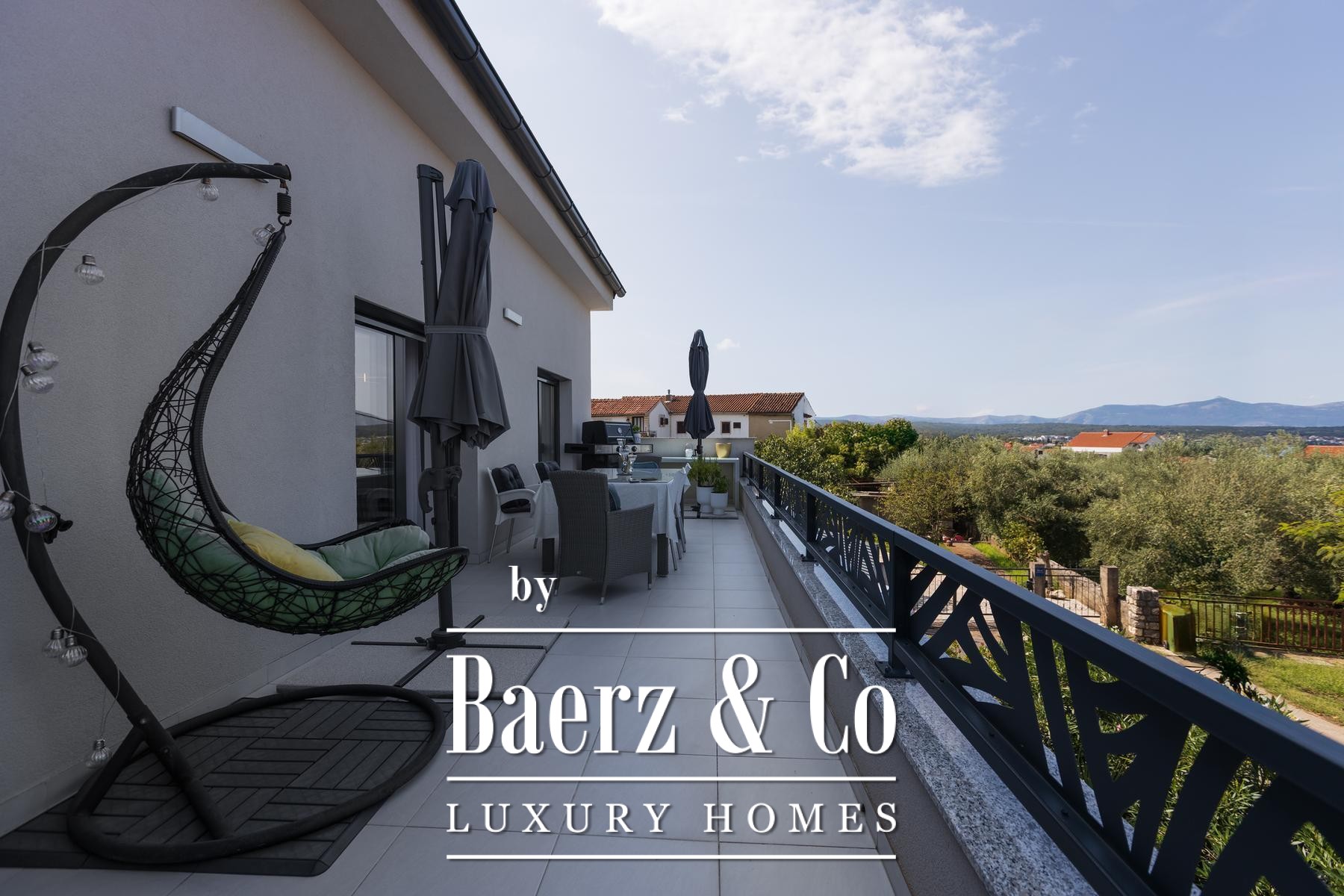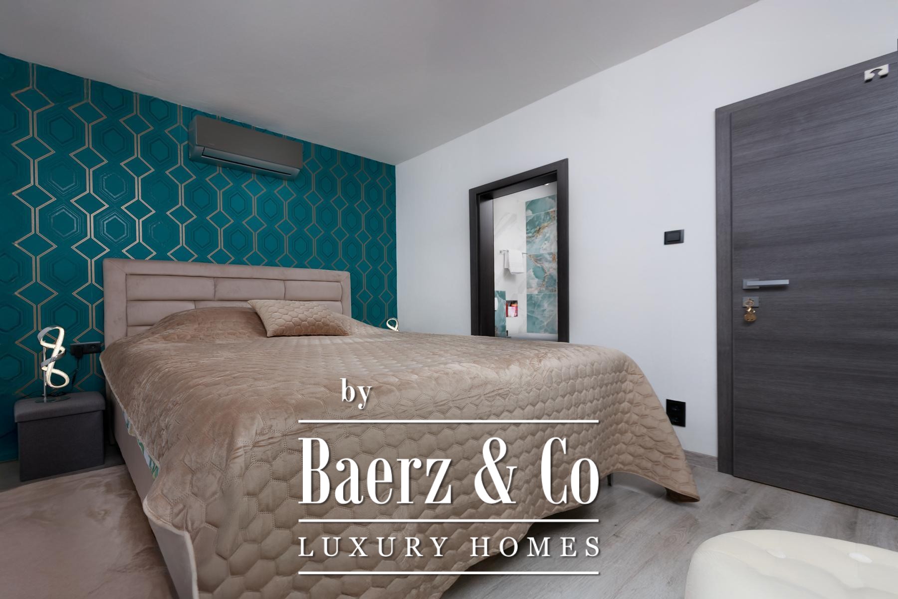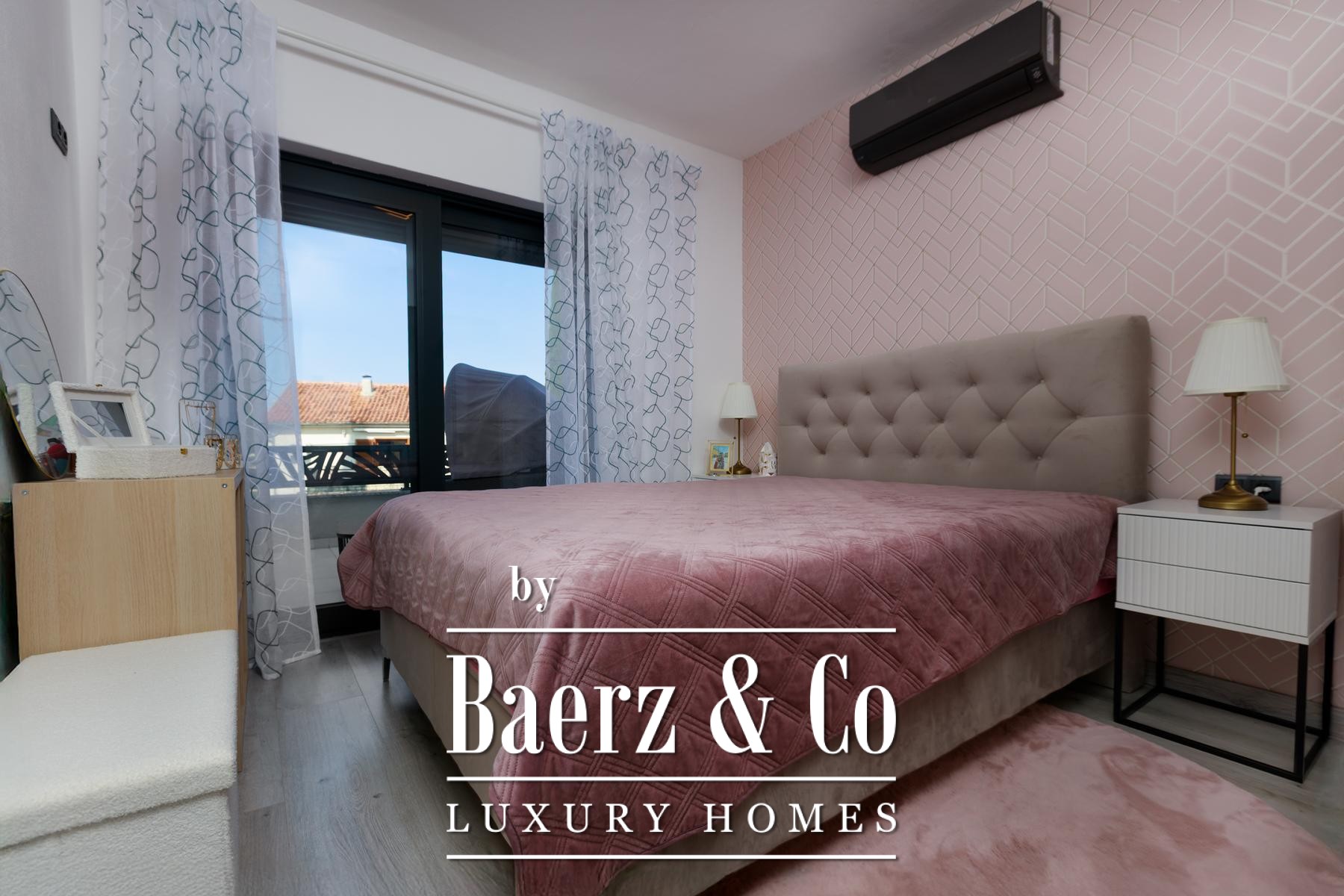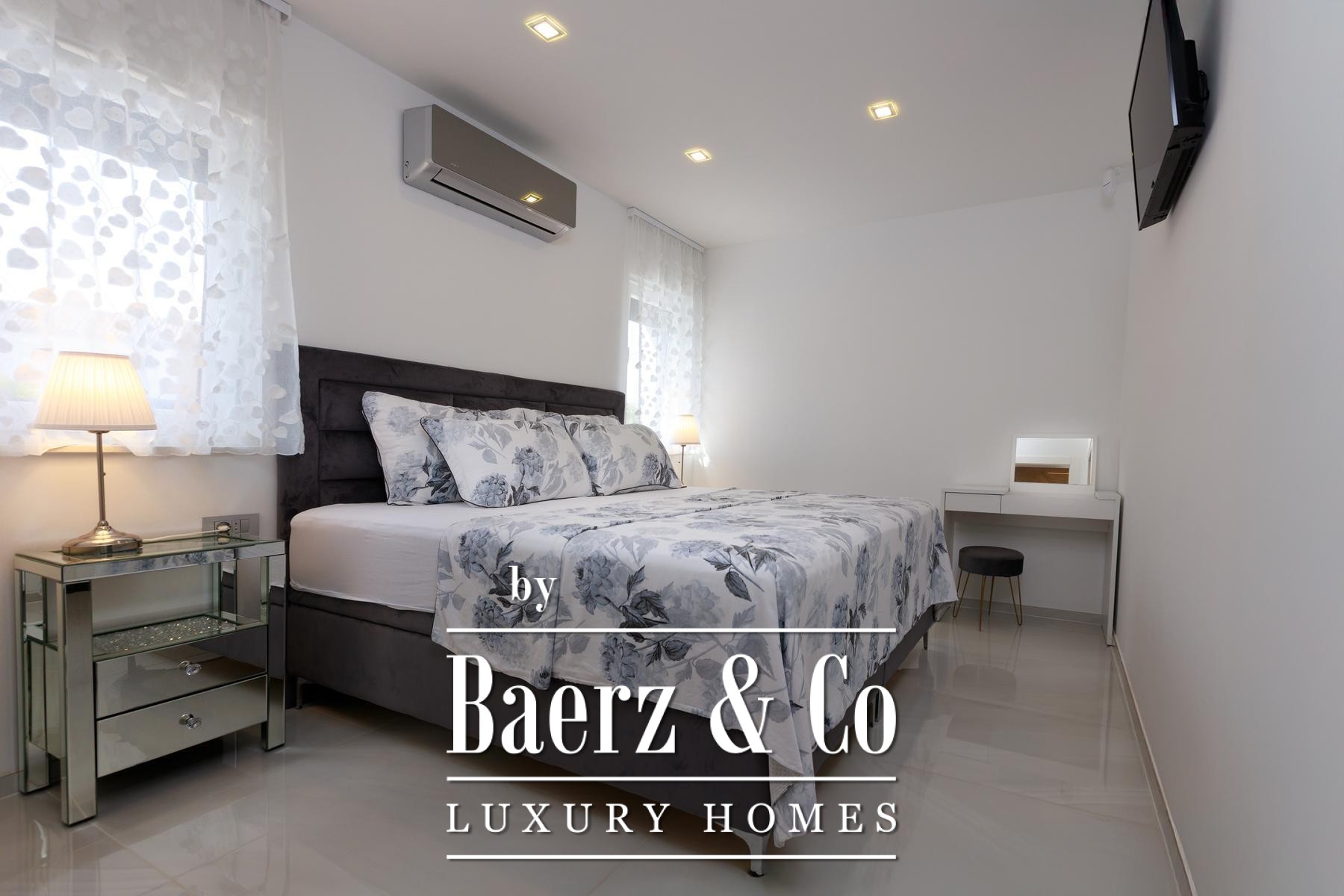 a high standard: the ground floor apartments have PVC joinery, while the upper floor has aluminum joinery; all windows are fitted with electric shutters and insect screens. Comfort and security are ensured by eight air conditioning units, an alarm system, smoke and glass-break detectors, and four surveillance cameras. All three kitchens are from the renowned brand DAN Küchen, while the bathrooms are furnished with premium carpentry. The attic, measuring 60 m², offers the possibility to create an additional apartment, and the most recent renovation of the house was carried out in 2025.Outdoors, there is a large swimming pool measuring 10 x 5 meters, with a heat pump already provided that only needs to be connected. The property also includes four outdoor parking spaces.This house combines privacy, luxury living, and investment potential in one of the most desirable locations on the island of Krk.