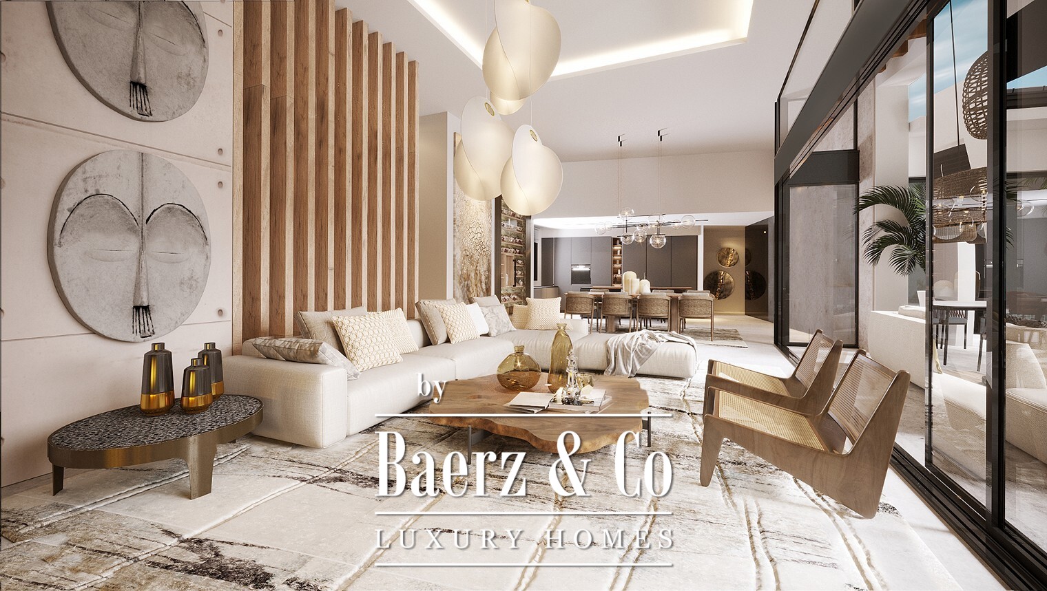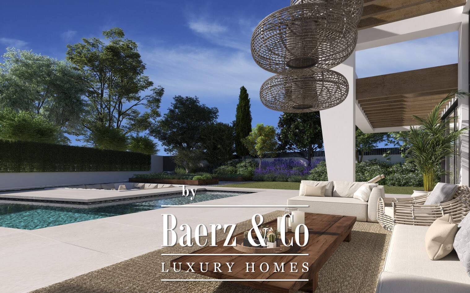 Spacious terraces, garden areas, swimming pool and chill out area with winter fire. The villas have an underground garage and a large basement that can be customised to suit the taste and lifestyle of each family.
