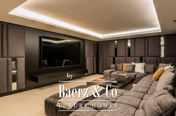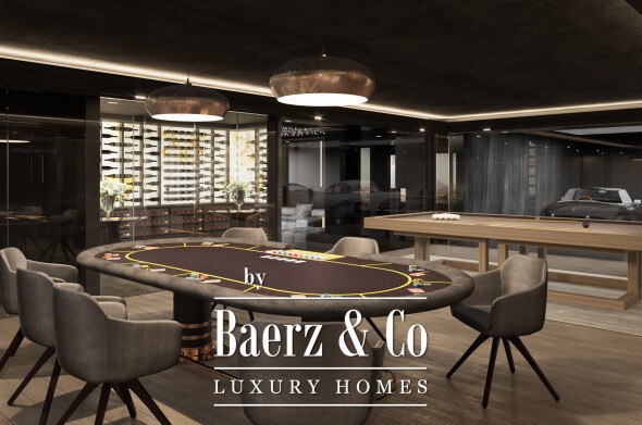 The lower level is dedicated to well-being and leisure, including a spa with heated indoor and cold pools, sauna, hammam, massage room, and gym. Wine collectors and film enthusiasts will appreciate the wine cellar and cinema, while a games room and three-car garage reflect a dedication to both relaxation and automotive passion.