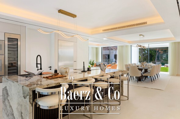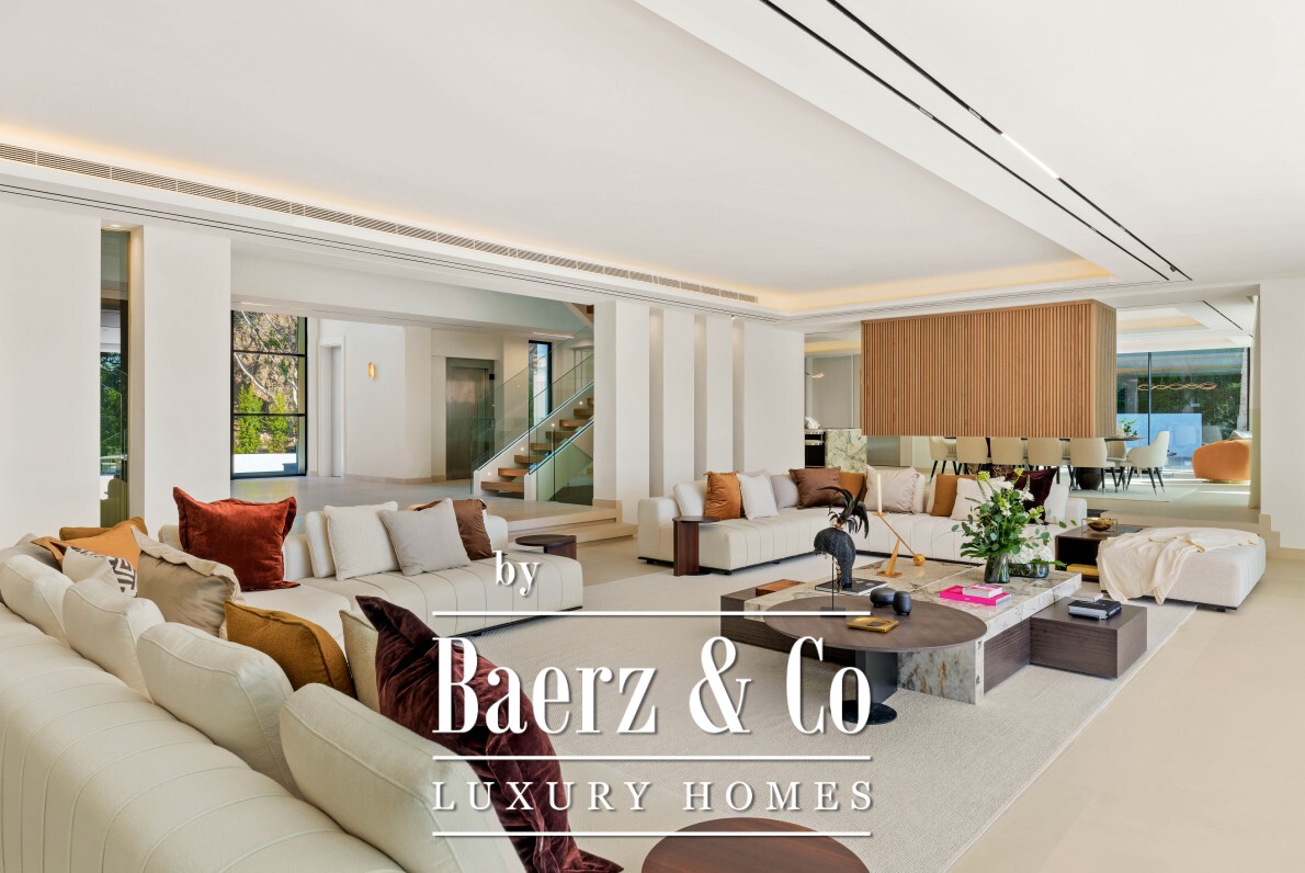 Villa Marbella with sea and golf views invites a discerning presence into its 1,605 m² of living space, set on a private 3,197 m² plot just moments from La Quinta golf and a short drive from Puerto Banus. This villa is a study in precision and design, conceived by a prominent local architect who selected every material and finish for enduring quality.