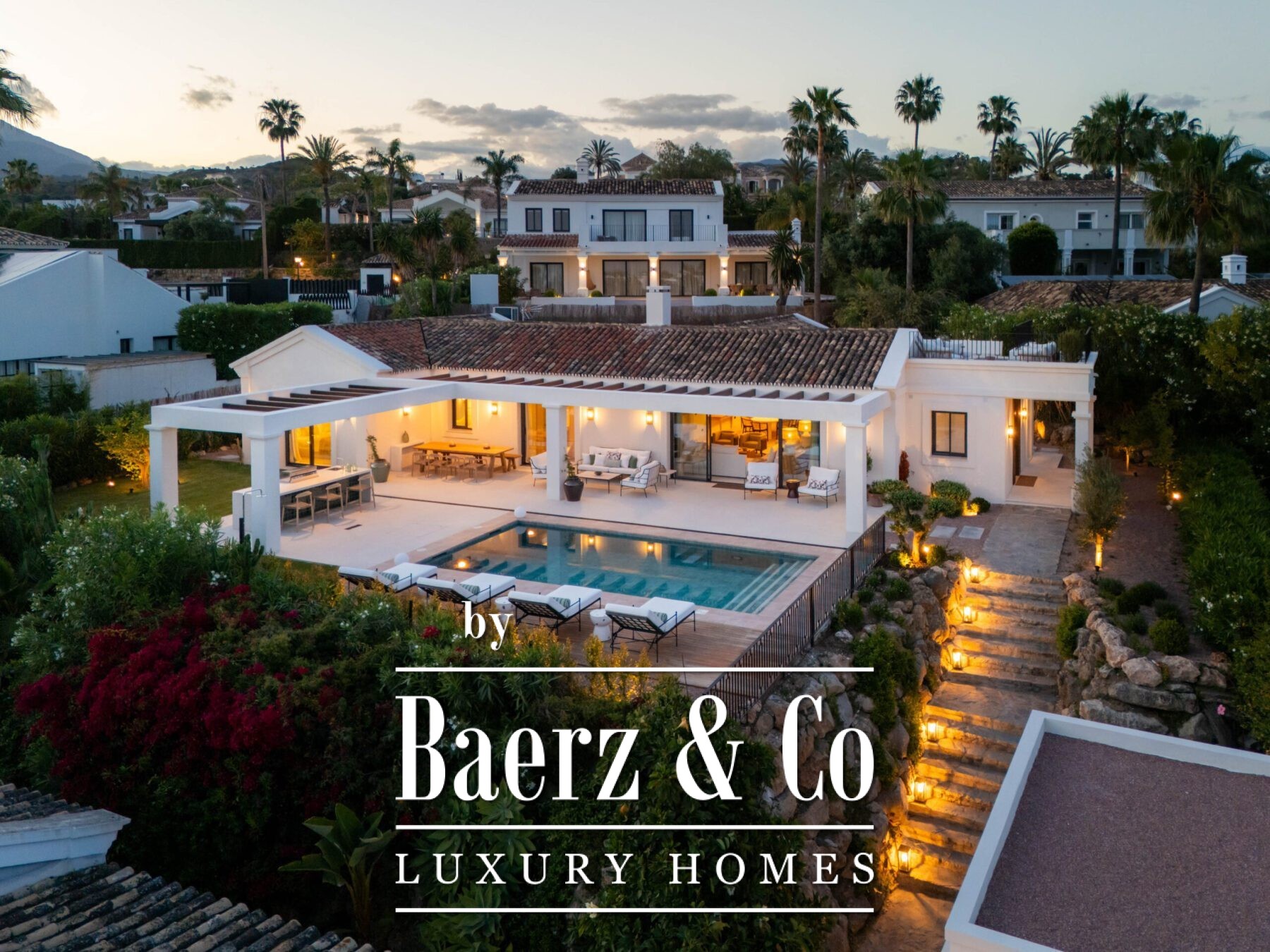 A beautifully reimagined single-level villa nestled in the heart of Nueva Andalucía, just minutes from the renowned Los Naranjos Golf Course. Designed and developed by known developers, this exquisite 4-bedroom home merges Mediterranean elegance with contemporary comforts. Set on a lush, elevated plot, the villa offers privacy, tranquillity, and breath-taking views across the valley to the sea, all while being moments away from Marbella’s best golf, dining, and beach experiences.