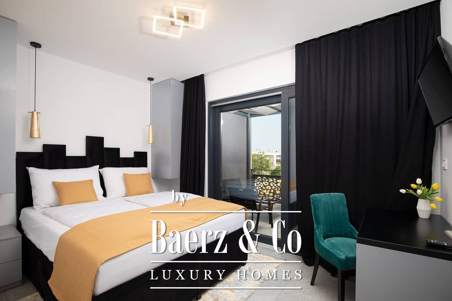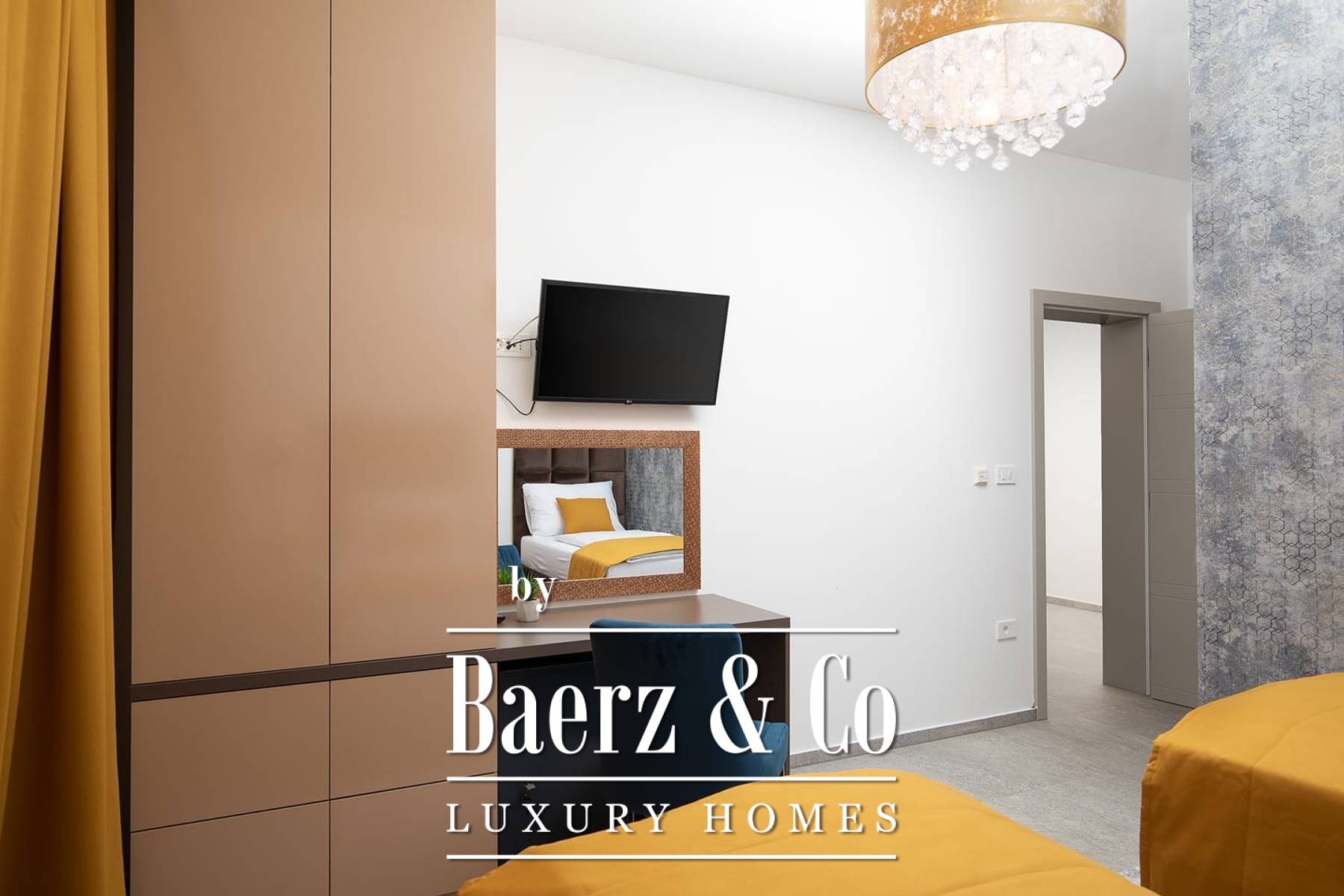 floor, stairs lead to a corridor through which there are 5 bedrooms, 5 bathrooms, a laundry room and two covered terraces. One terrace connects two bedrooms, while the second terrace is accessed from the hallway. Underfloor electric heating throughout the villa. Air conditioned too. ALU PVC joinery with mosquito nets. Video surveillance of the villa. First-class ceramics and furniture. It is sold in a fully furnished condition as shown in the pictures. The villa is ready for rent and is an excellent property for use for tourist purposes. We are at your disposal for more additional information.