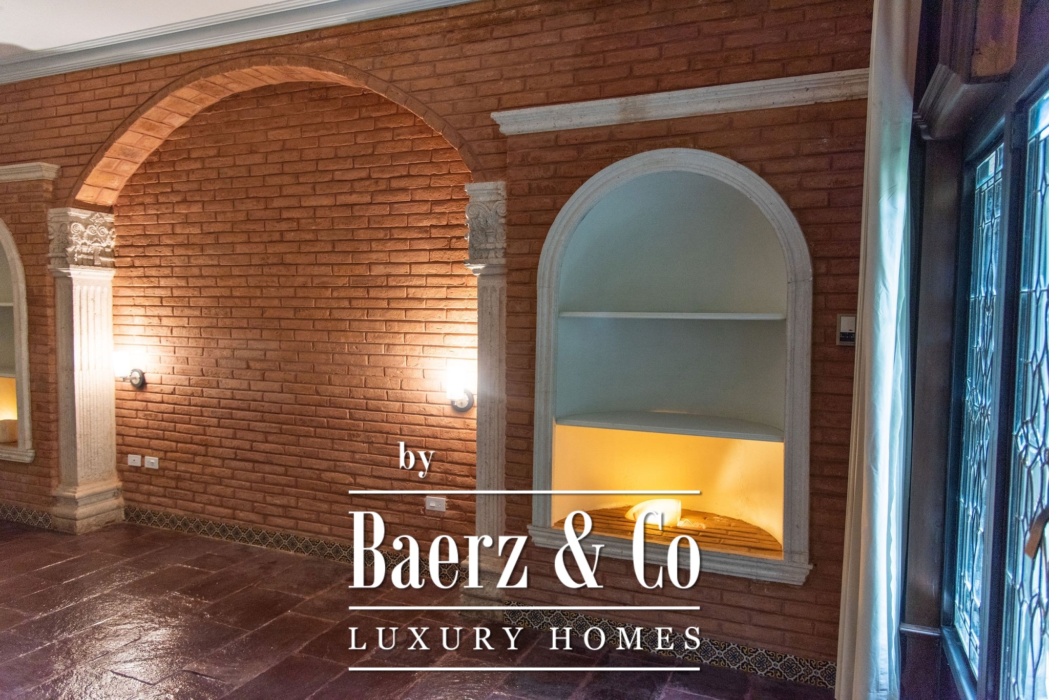 Somewhat discrete in one of the most traditional and sought-after areas known as Itzimna in the city of Merida, you will discover “Los Aluxes” Manor house. With its 4056 square meters of land and 1133 square meters of construction, this magical property has it all. Great spaces built with all the luxury for you to enjoy all year round. The house has in total 5 bedrooms with 5 bathrooms, all with unique design. At the entrance you will find a great façade that only invites to imagine the interior of the property. Spectacular spaces of living anteroom and dining room will greet you with the sensation of being in your very own palace. Floors made out of carrara marble, custom made wrought iron make a one of a kind piece with import stained glass that form part of all the main windows. All carpentry made out of fine hard wood in its beams. Hand cut stone columns with great design are laid out through all the residence, combined with exquisite rustic volcanic stone floors. It´s domes that were custom made and designed exclusively for the property make the interior even more beautiful. In the exterior you will find fascinating gardens and lush and exotic vegetation that surround this exclusive mansion, with an enormous pool at the end of the property that has it´s own terrace and bathrooms. To the side your own rustic chapel. “Los Aluxes” Manor makes for those who come near forget where they were headed to and feel a pleasant sensation of harmony and peace.