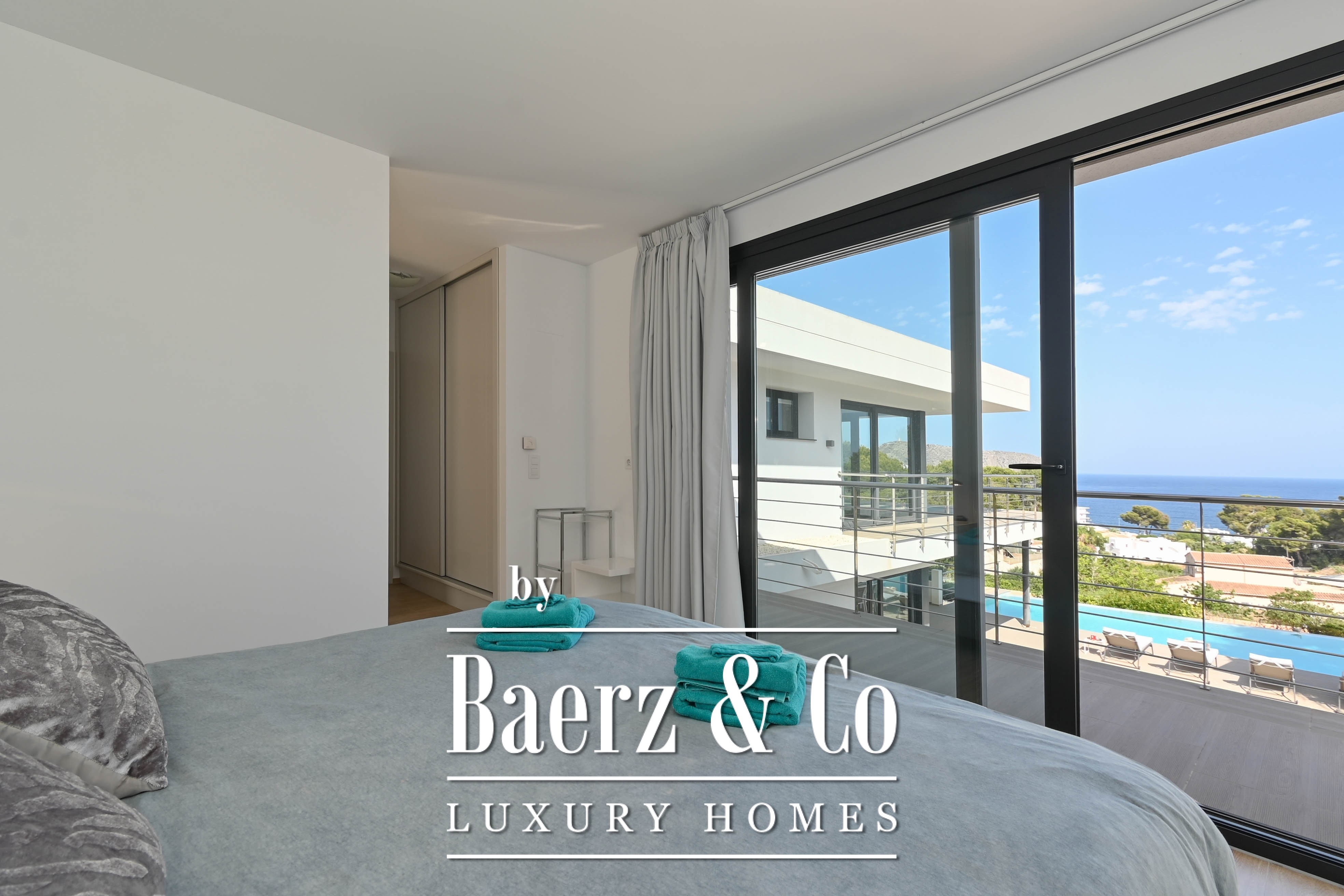 Outdoors, you can enjoy a large terrace, an inviting swimming pool, and of course, the spectacular views of the Mediterranean Sea. The double garage provides extra comfort and storage space.