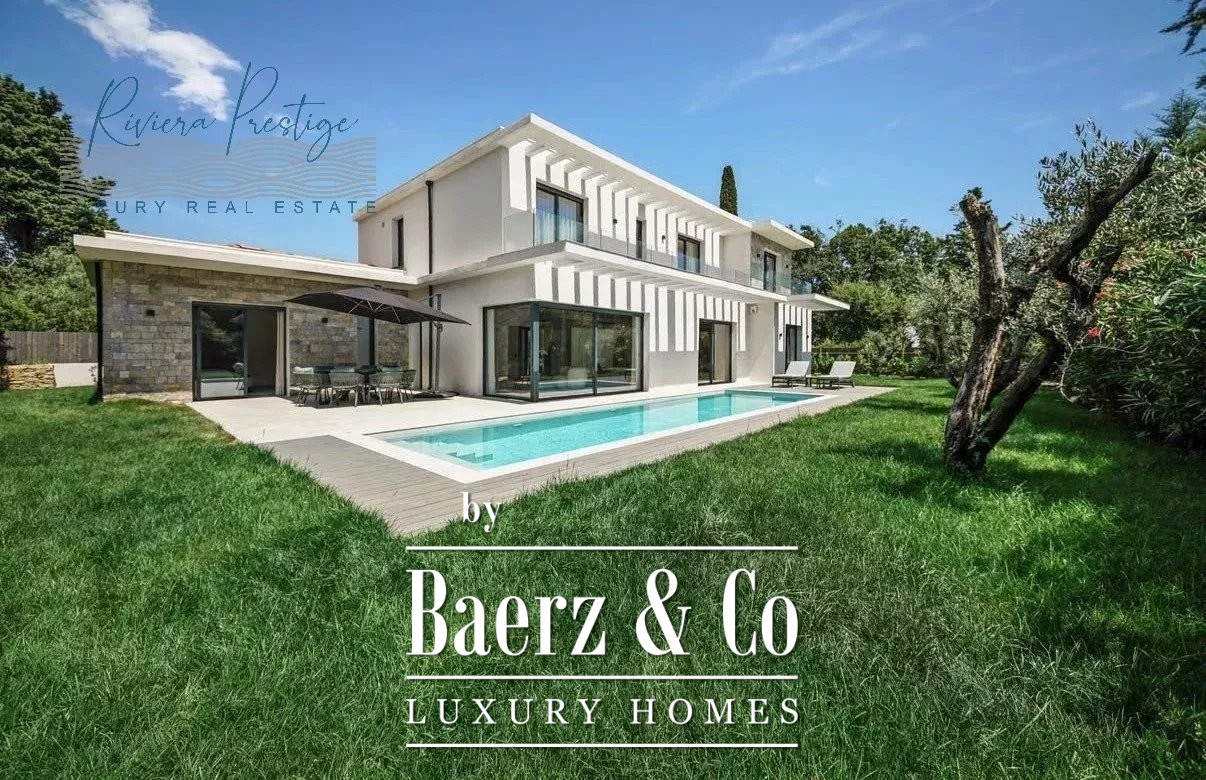 Villa Mougins stands as a contemporary sanctuary, defined by its refined architectural lines and expansive bay windows that usher abundant natural light throughout 380 m² of living space. This property welcomes you into a world where indoor elegance seamlessly transitions to outdoor serenity, with terraces that open toward a flourishing garden and swimming pool, forming a setting for tranquil repose or quietly memorable gatherings.