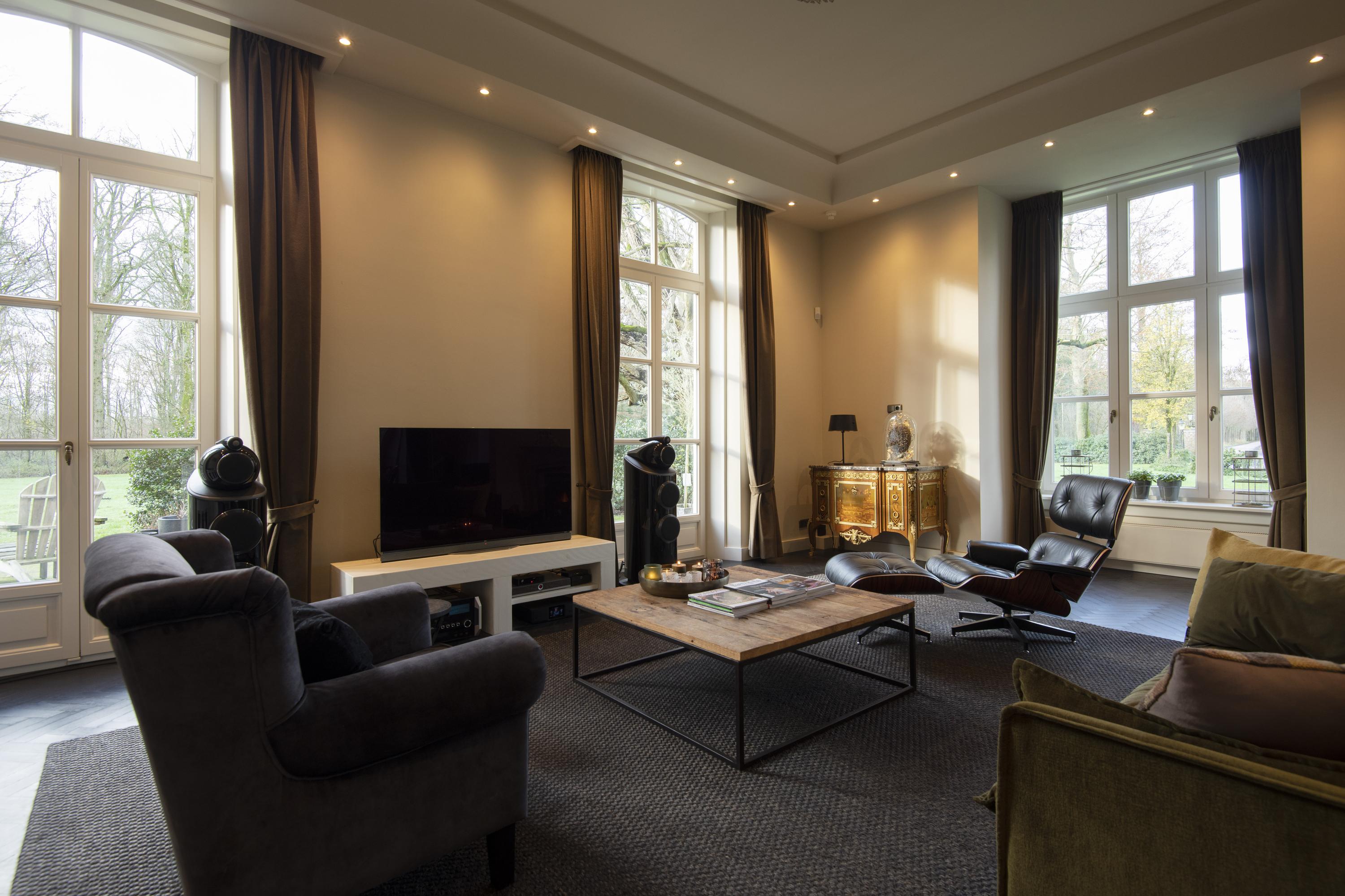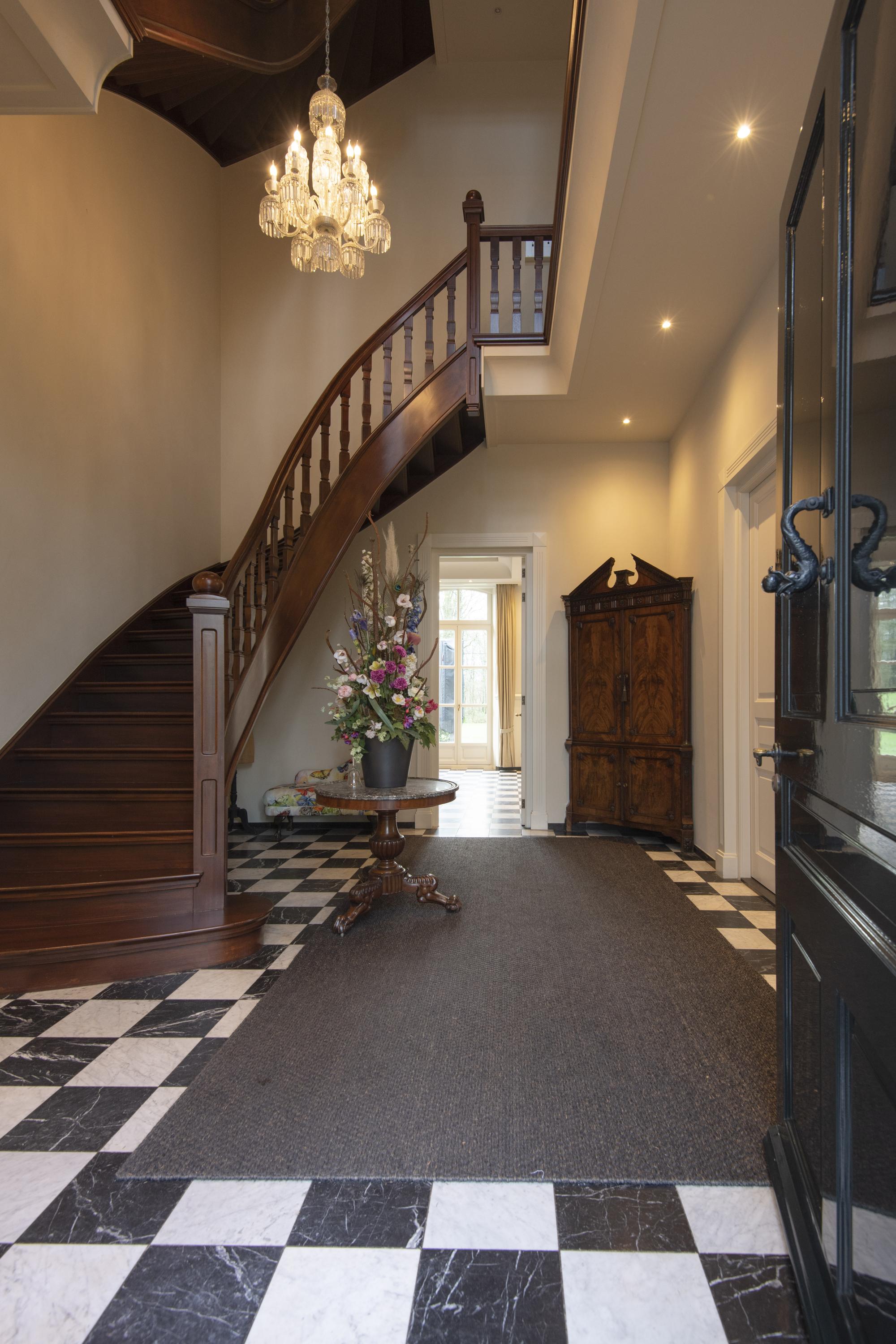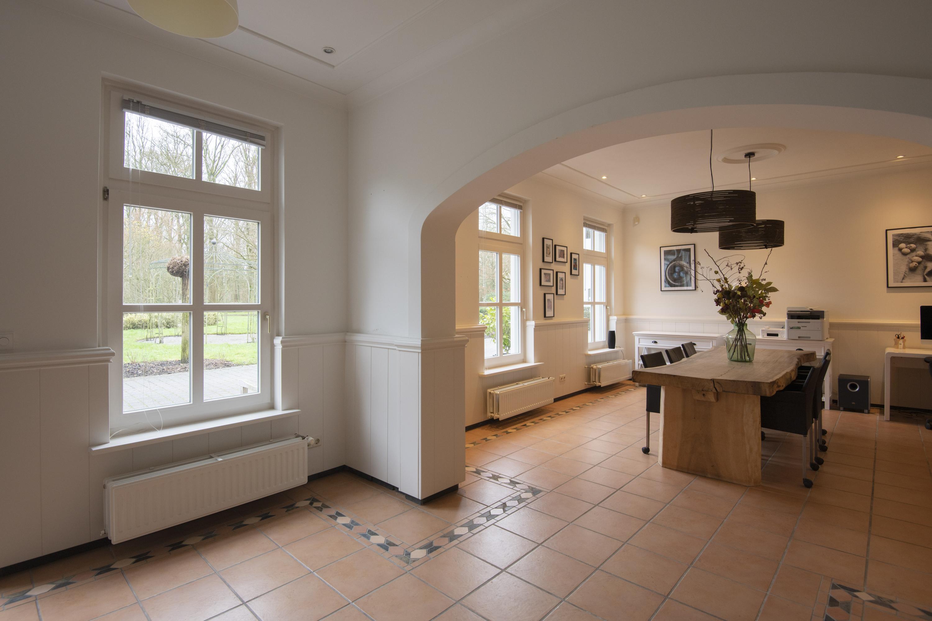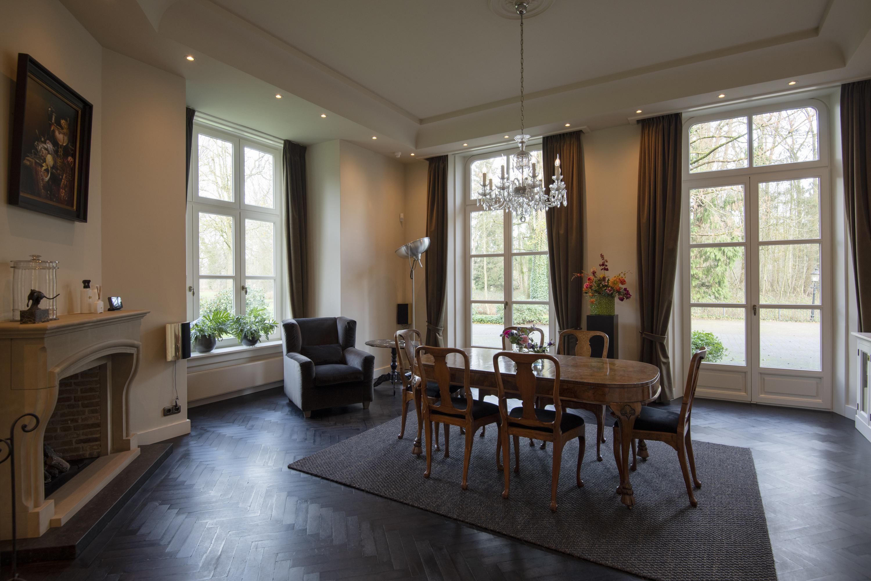 The quiet and also strategic location of the estate with castle-like allure make it an ideal residence. Within 30 minutes you can reach Eindhoven airport, the High Tech Campus and Tilburg, among others, while Den Bosch is only 20 minutes away. In the immediate vicinity are extensive hiking trails to wander for hours through the beautiful Brabant woods. Surrounding the mansion is an English landscape garden with a pond, several lawns and many mature trees, including a magnificent monumental Caucasian wingnut and a Canadian poplar.