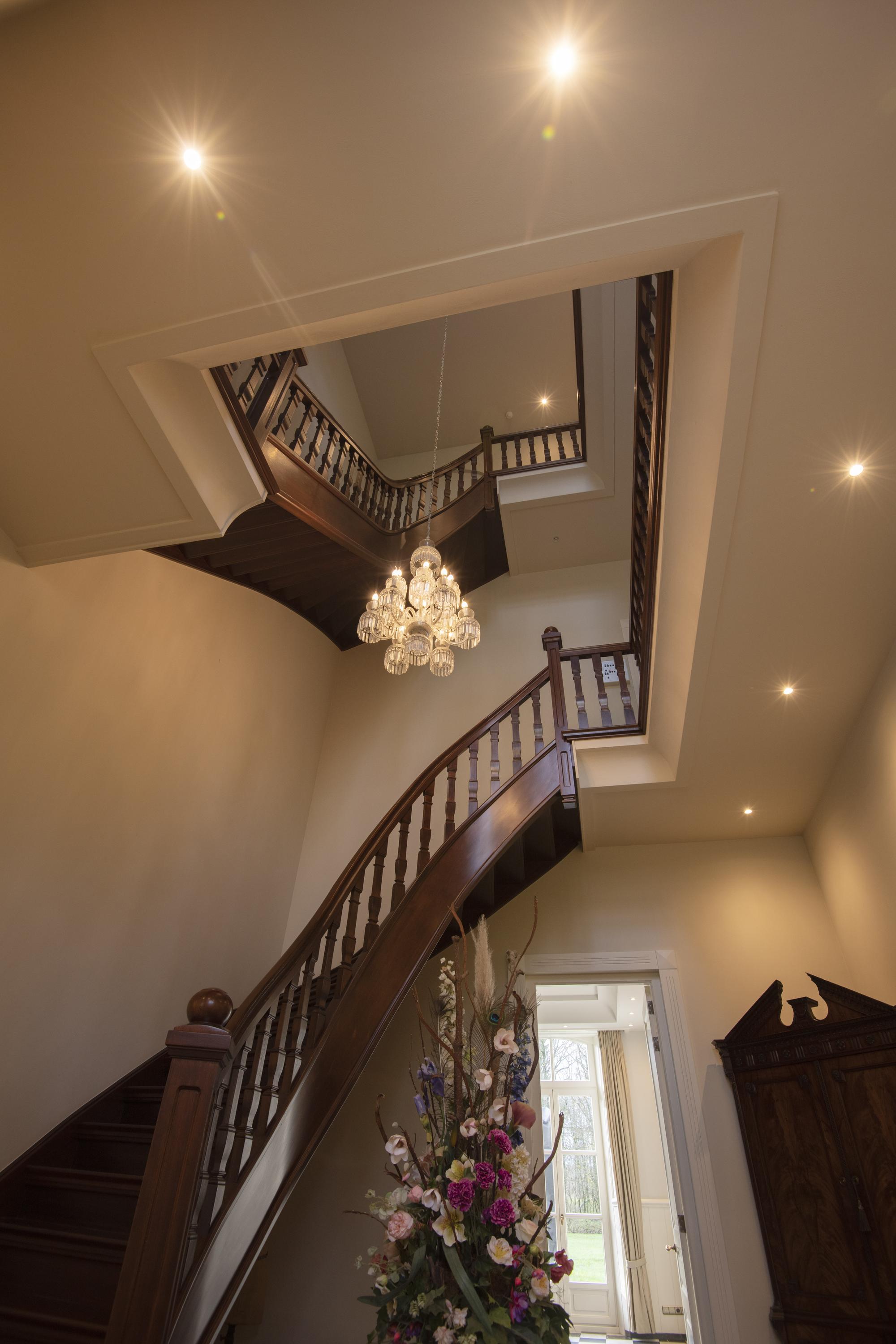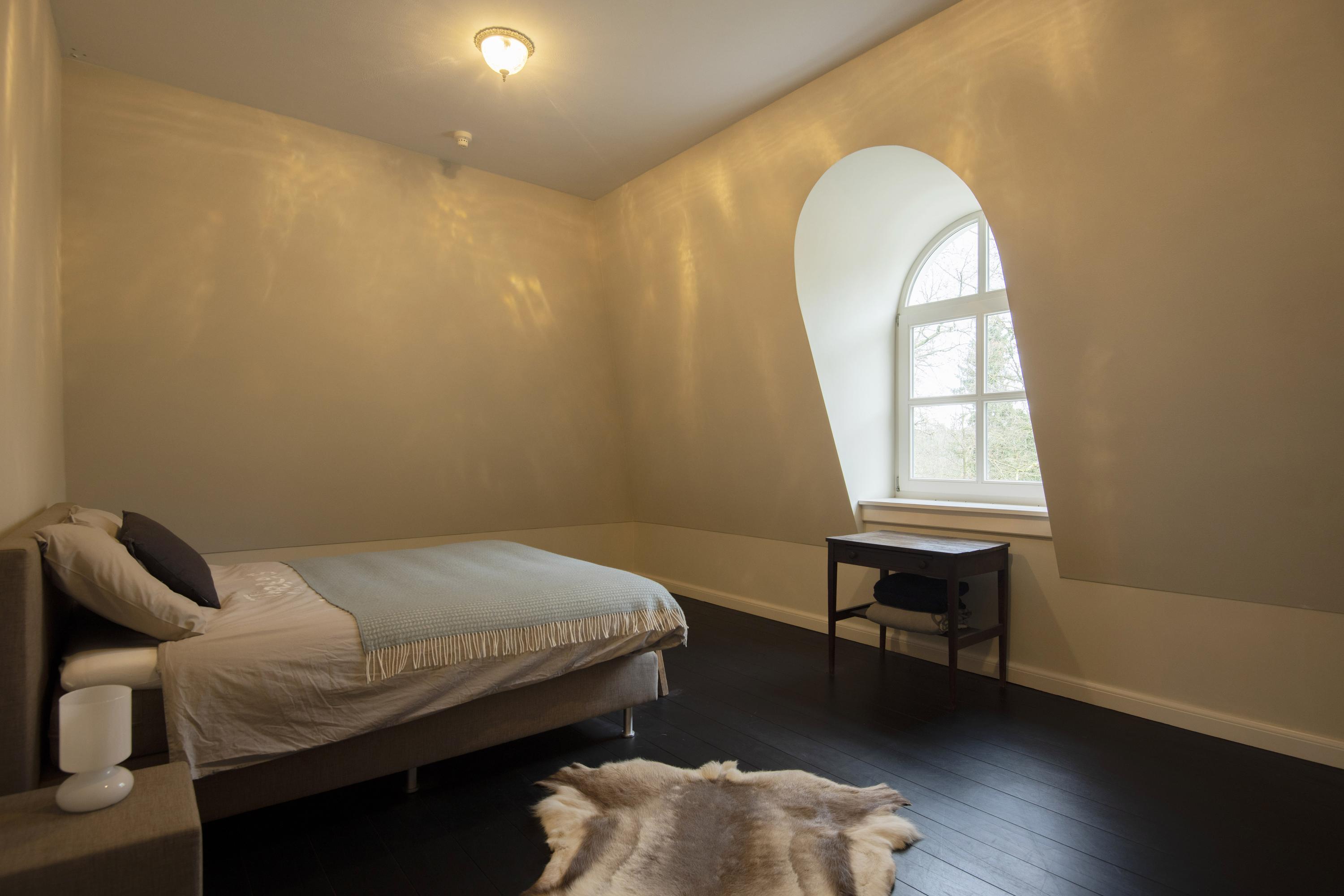 The mansion is characterized by white plastered facades, hipped roofs, hanging towers at the corners and one round corner tower with battlements. Although the original year of construction cannot be traced exactly, the history leads back to ± 1864. In 1998 the mansion was largely destroyed by fire and hereafter completely renovated, modernized and preserved with a lot of craftsmanship, love and attention. Partly due to the presence of 40 solar panels and two heat pumps, this has led to a unique energy label A+.