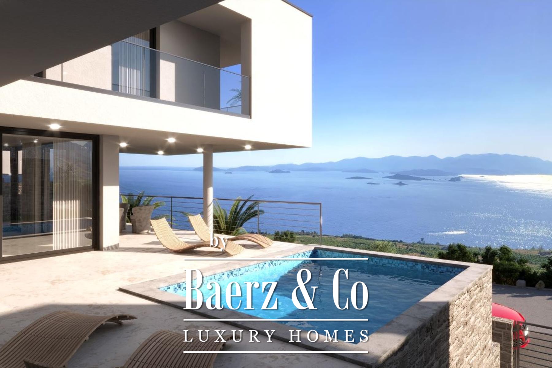 Orebić, project of modern luxurious villas, located on the beautiful southern slopes of the Pelješac peninsula in the oldest protected wine area in Croatia. The villa is located on a plot of 390 m2, consists of three floors with a total of 201 NKP, and consists of a basement where there is a swimming pool and a terrace. The ground floor consists of a covered terrace, covered passage,