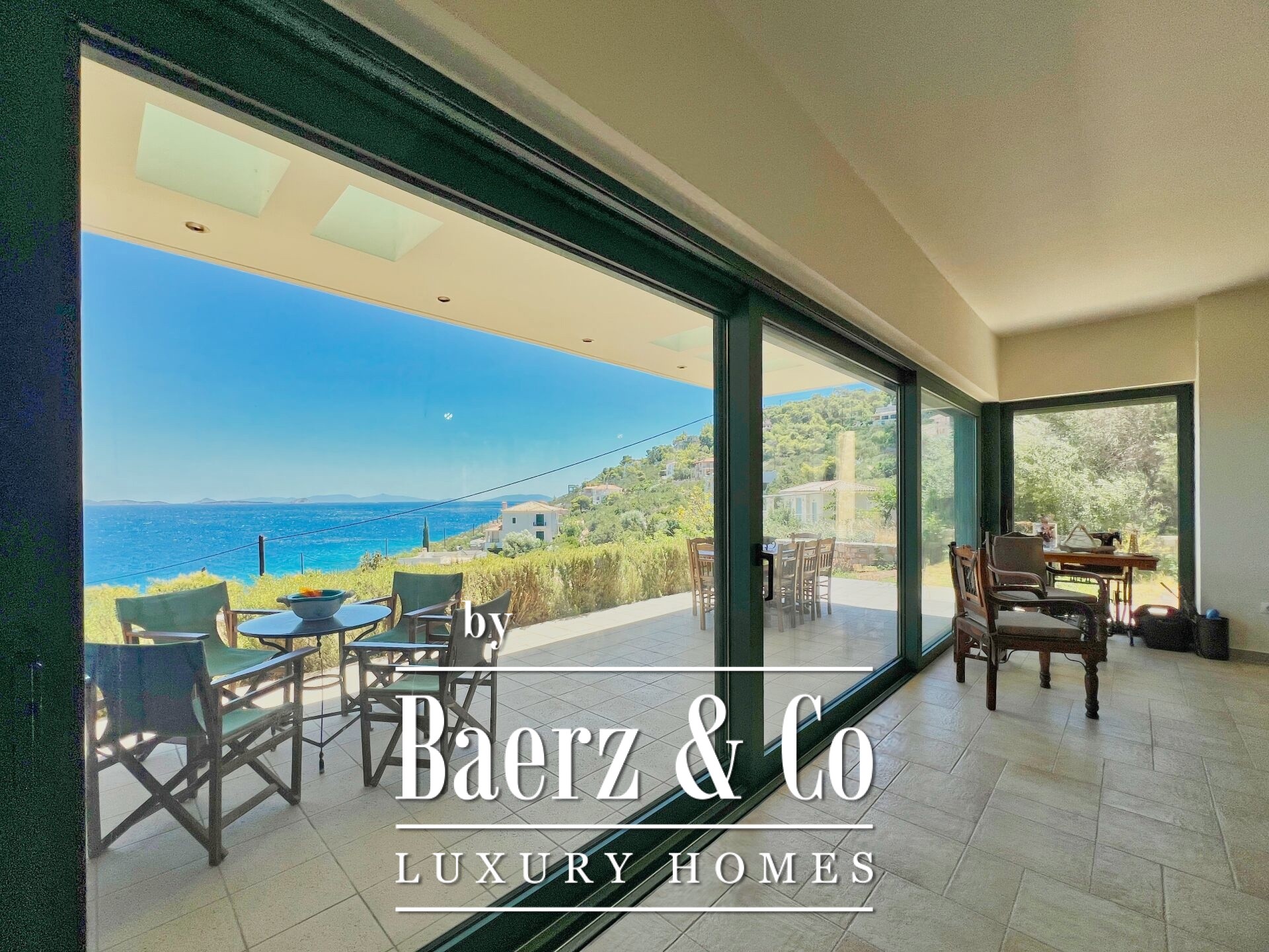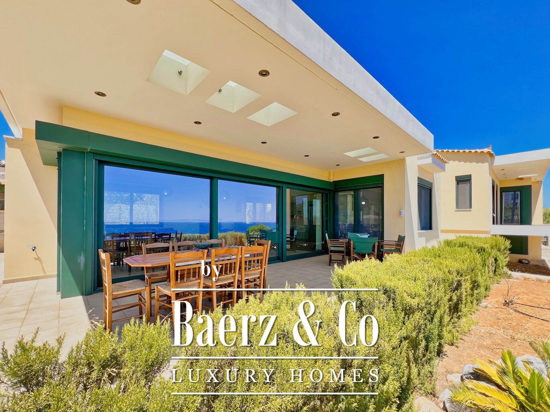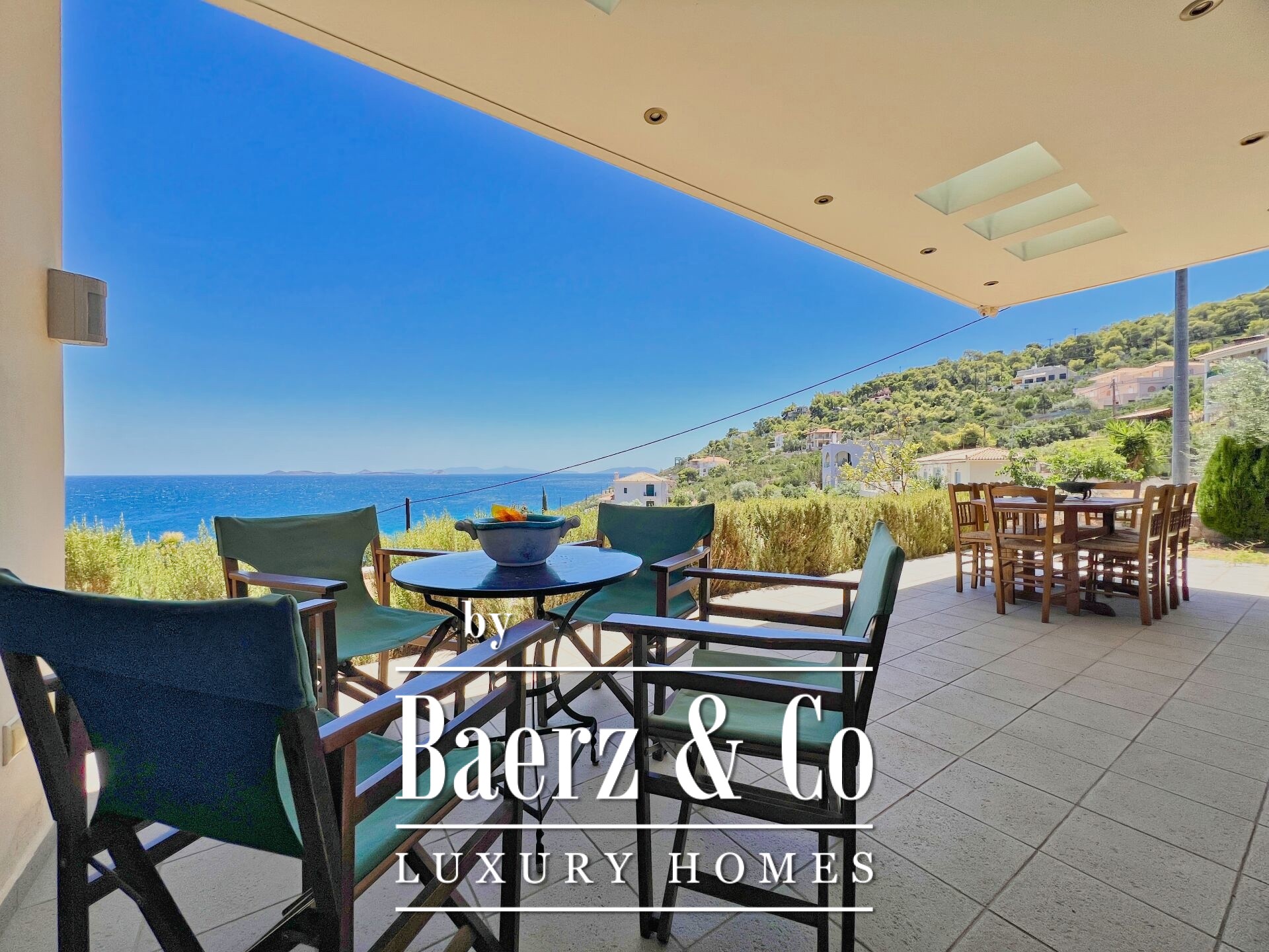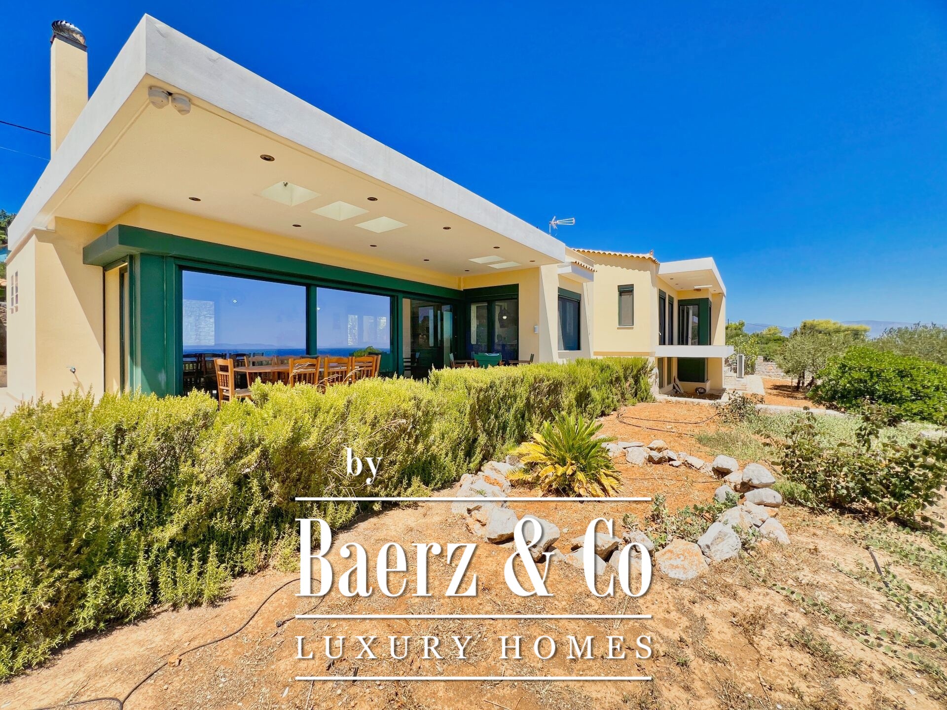 The property enjoys panoramic and unobstructed 180° views of the Saronic Gulf from every point of the house.