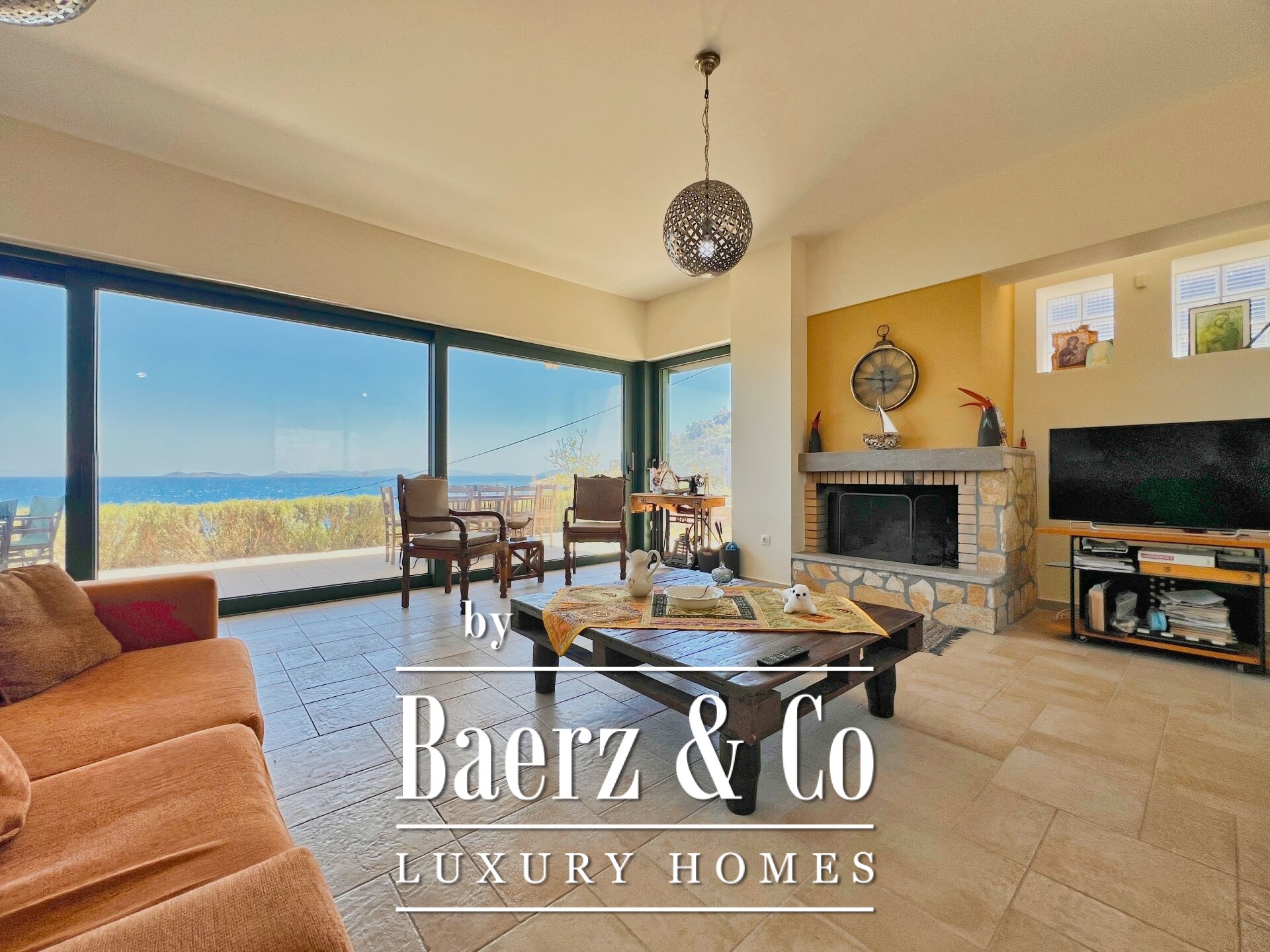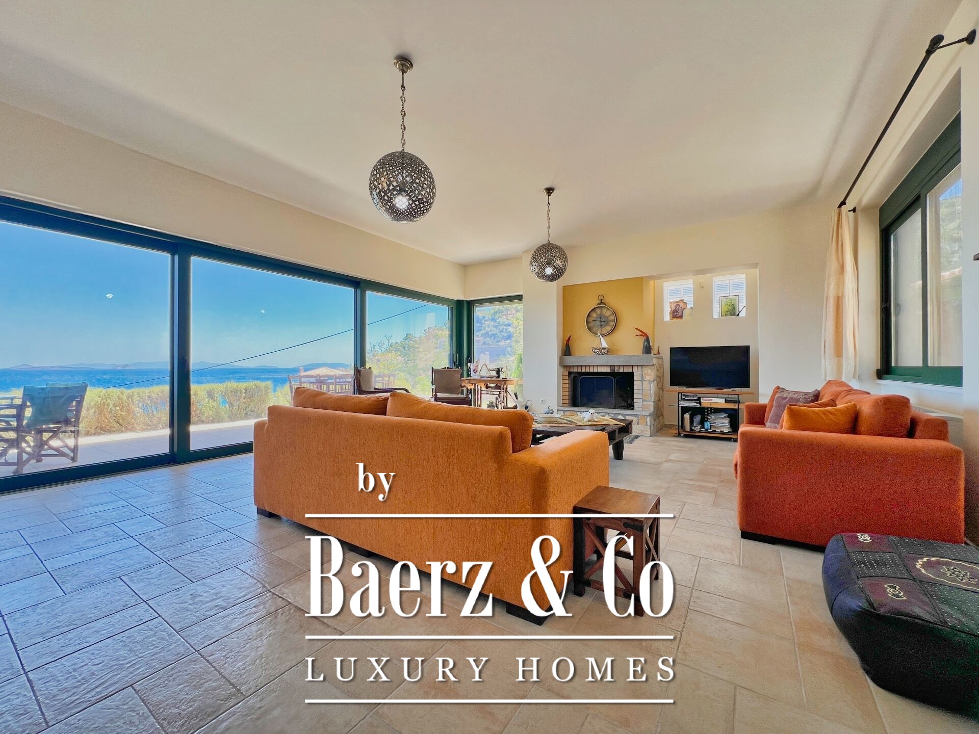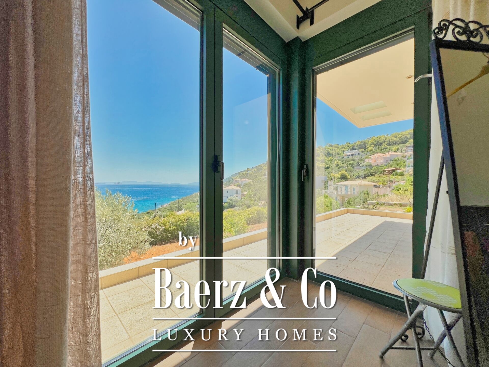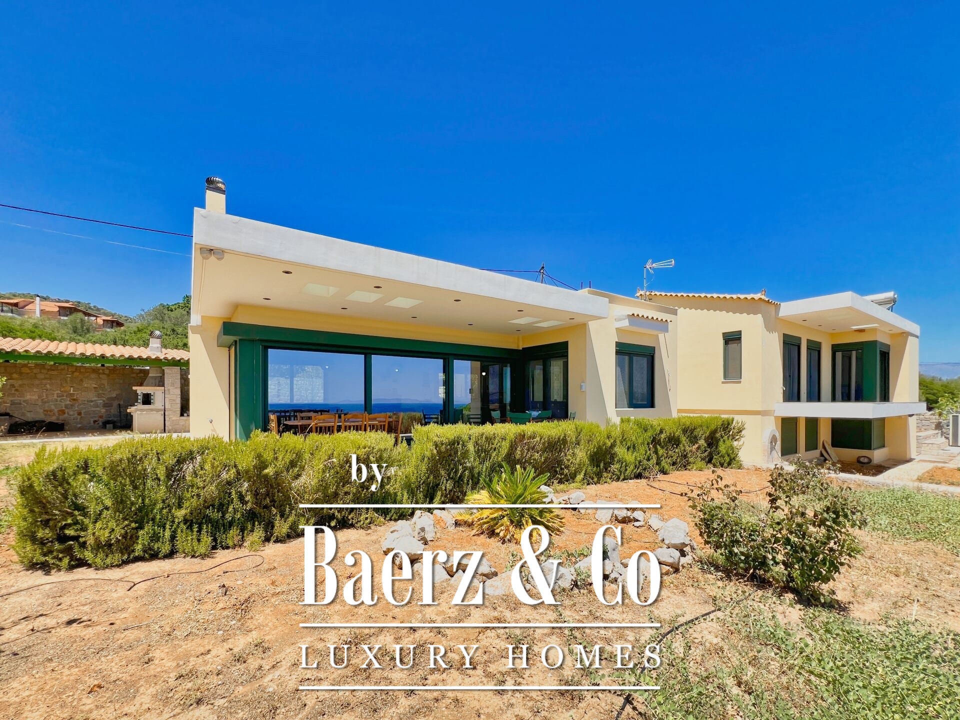 The property enjoys panoramic and unobstructed 180° views of the Saronic Gulf from every point of the house.