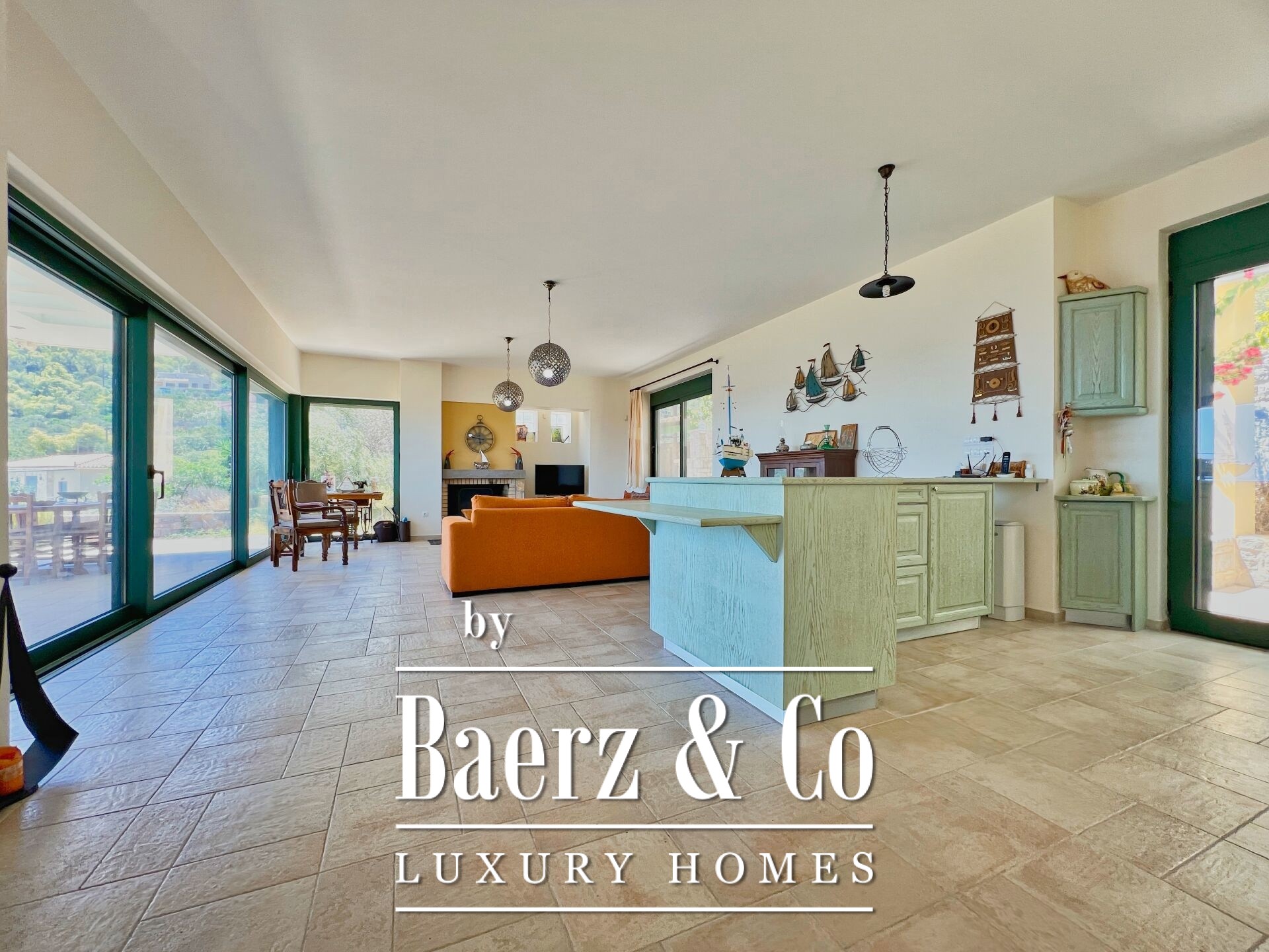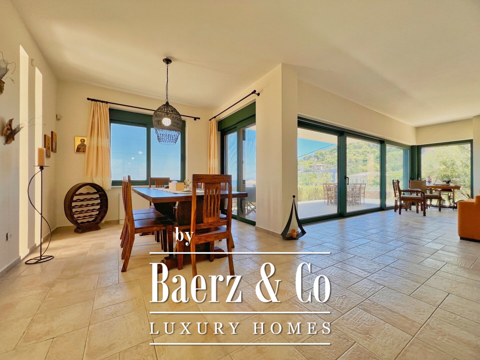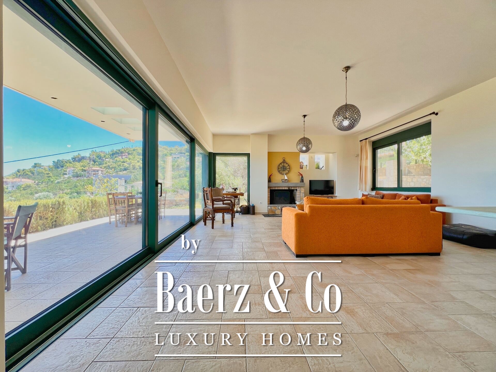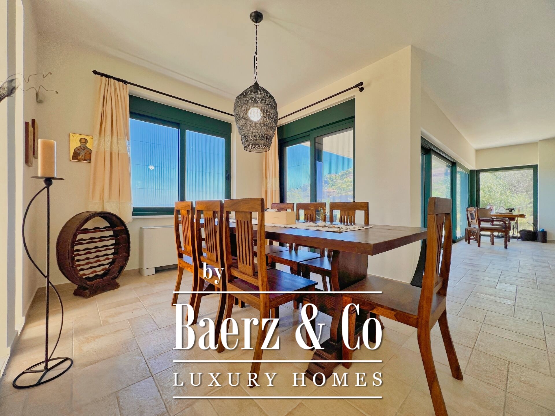 The property enjoys panoramic and unobstructed 180° views of the Saronic Gulf from every point of the house.