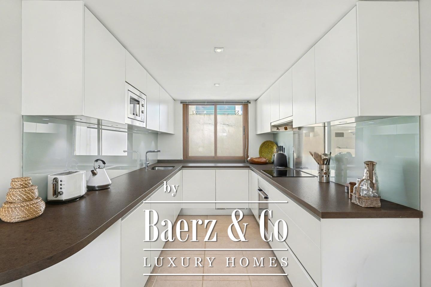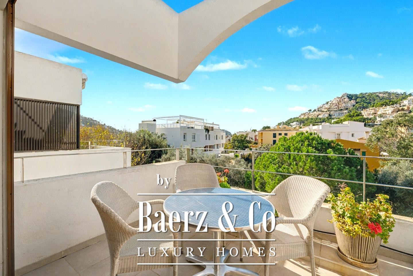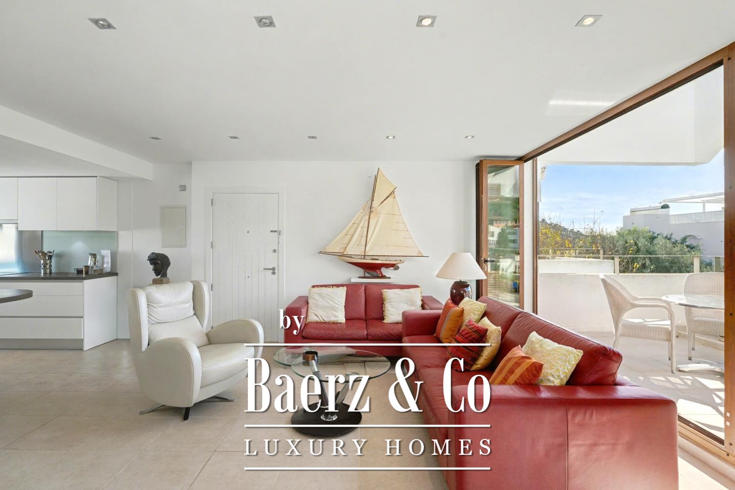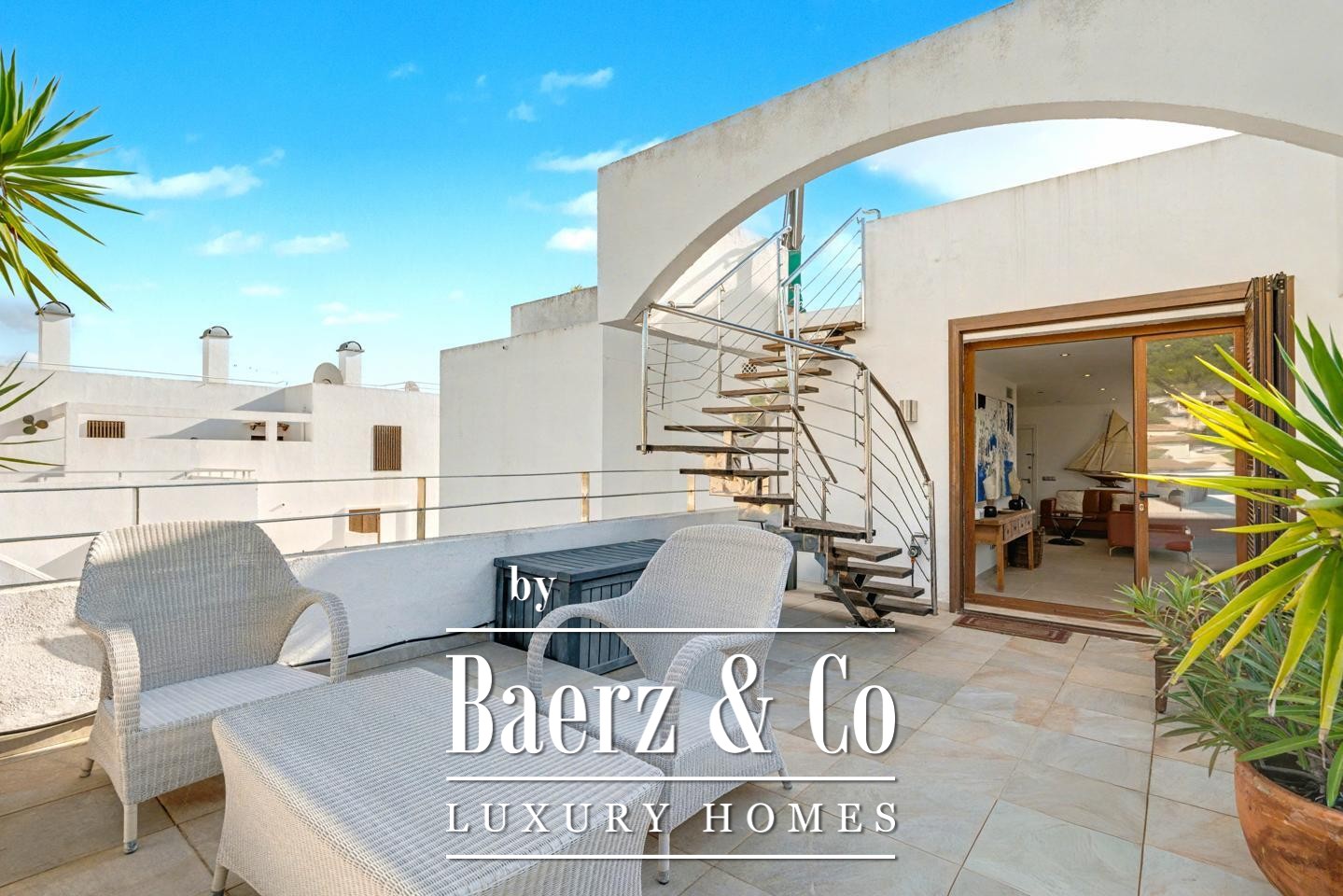 This penthouse Port d'Andratx offers a considered fusion of Mediterranean ease and contemporary clarity, set within a peaceful international enclave in southwest Mallorca. The home spans 106 m², with two double bedrooms and two bathrooms, including an en suite, all refreshed in a modern, quietly confident aesthetic. The open living area is flooded with natural light, extending seamlessly to two terraces—one intimate, the other generously scaled for open-air dining or relaxation overlooking the harbour.