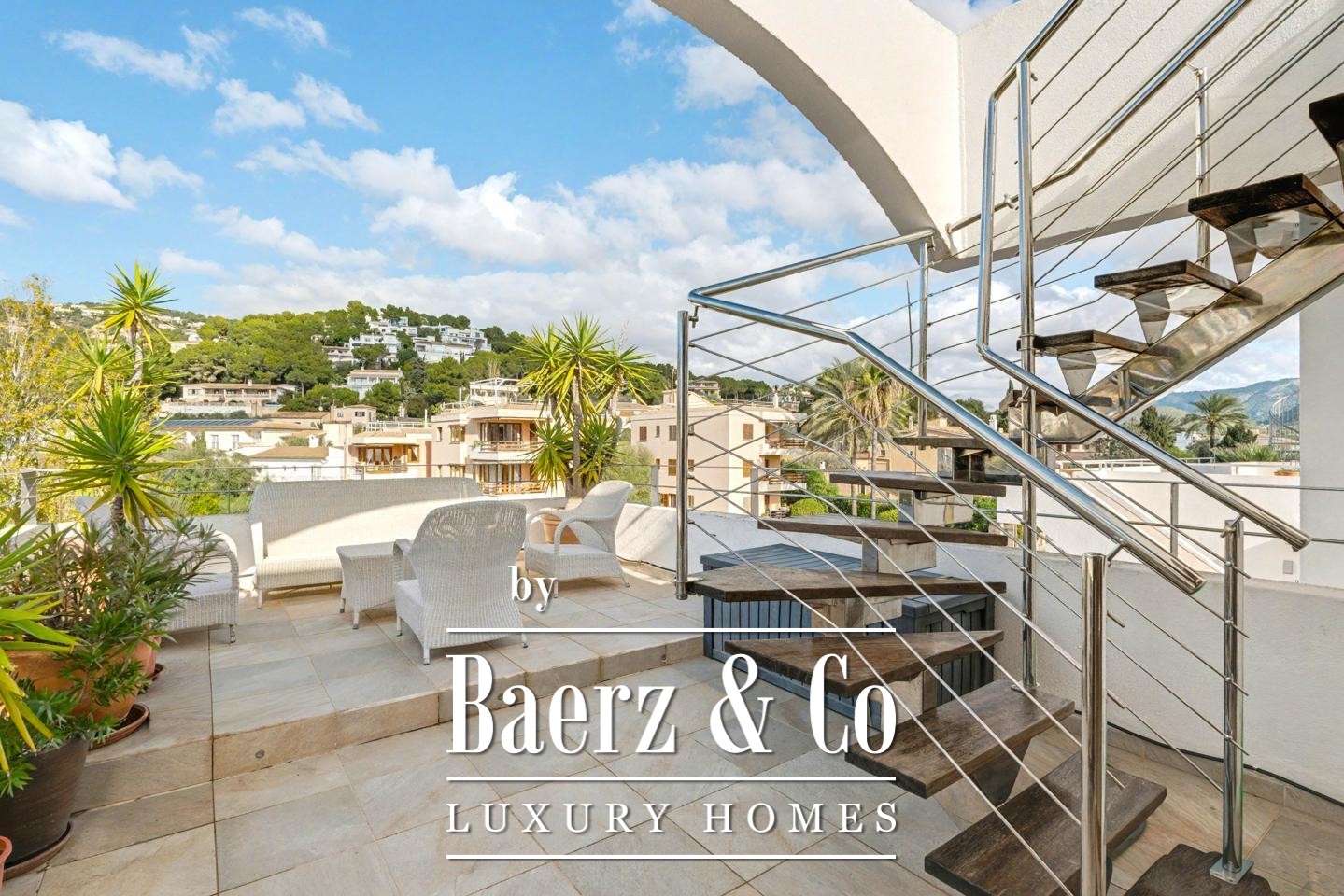 A private staircase ascends to the penthouse’s rooftop terrace, an expansive, sunlit space designed for adaptable outdoor living, balancing views of Port d'Andratx with privacy. Here, possibilities unfold for a lounge, an outdoor kitchen or a jacuzzi, creating a vantage point for year-round enjoyment of the island climate.