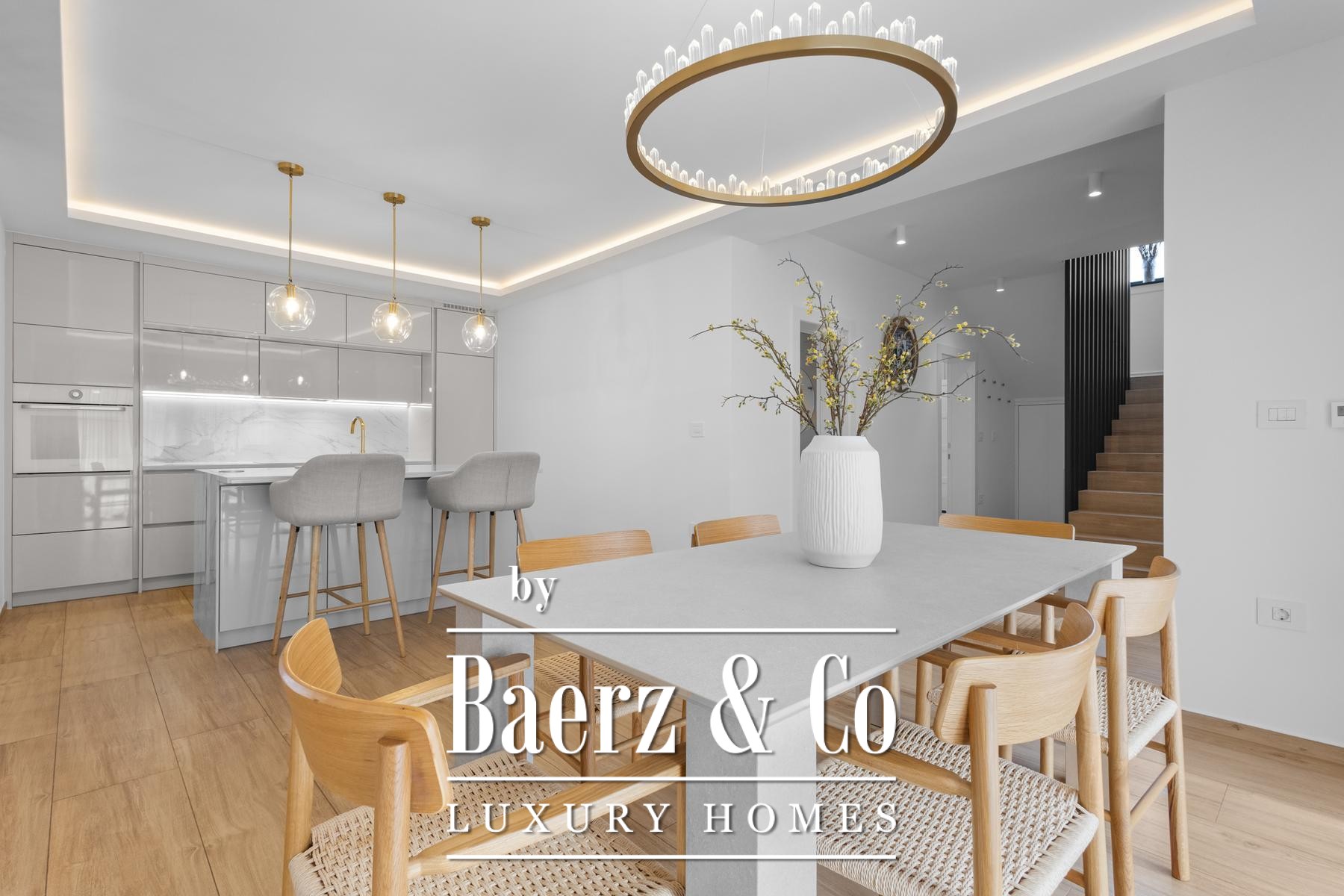 Daily rhythms unfold around an open plan living area of 48 m², where the lines between kitchen, dining, and lounge spaces dissolve into a seamless whole. Floor-to-ceiling glass opens onto a covered terrace of 23 m², allowing light to permeate and drawing the outside in. Four bedrooms and four bathrooms provide flexibility, the upper level anchored by a principal suite with walk-in wardrobe and dedicated children’s rooms. Leisure is elevated by a 30 m² gym and sauna, as well as two secluded roof terraces, each offering privacy within the urban landscape.