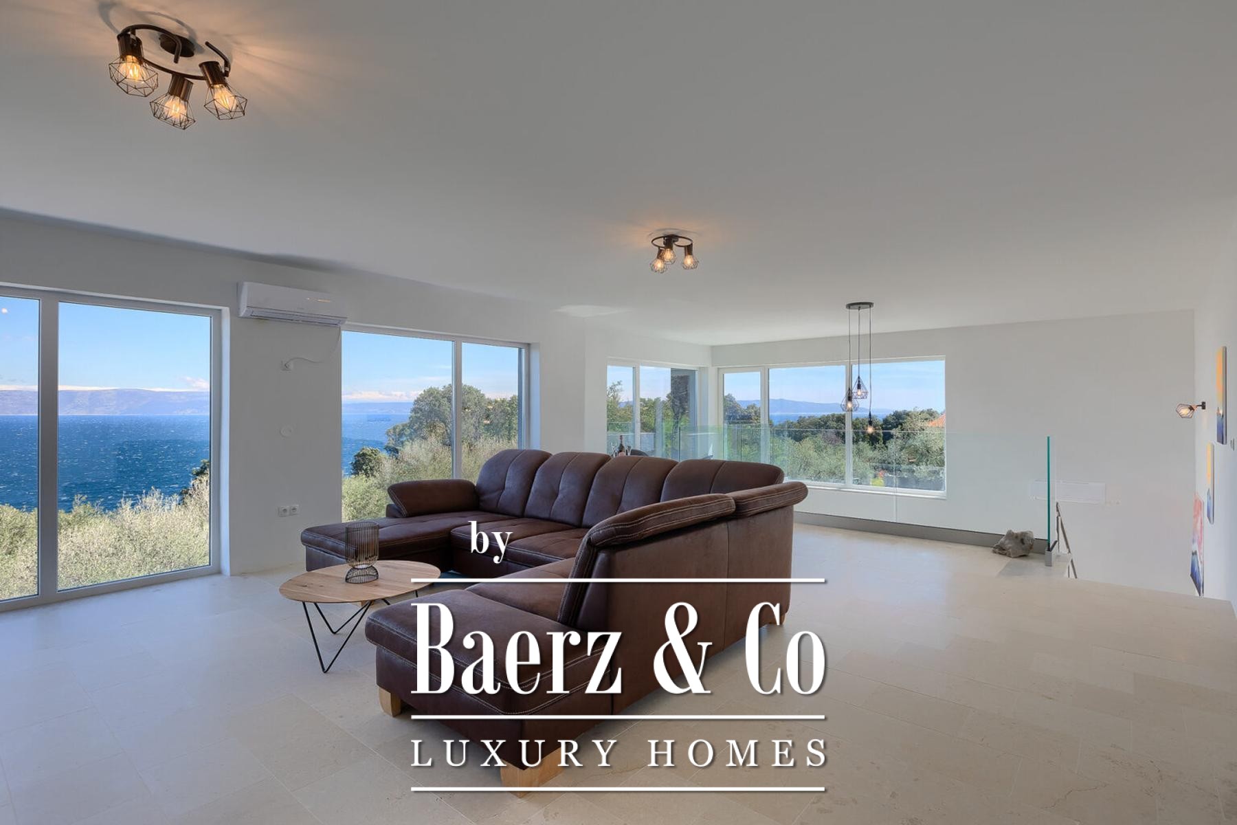 In the charming village of Ravni, which is only a few kilometers from the town of Labin, is located this impressive villa with a total living area of 200 m2 on a plot of 496 m2.The property is characterized by a modern design, and top quality materials were used in the construction, the interior itself highlights an open space with glass walls that provide constant natural light and a beautiful view of the sea from your future living room.The villa extends over two floors, ground floor and first