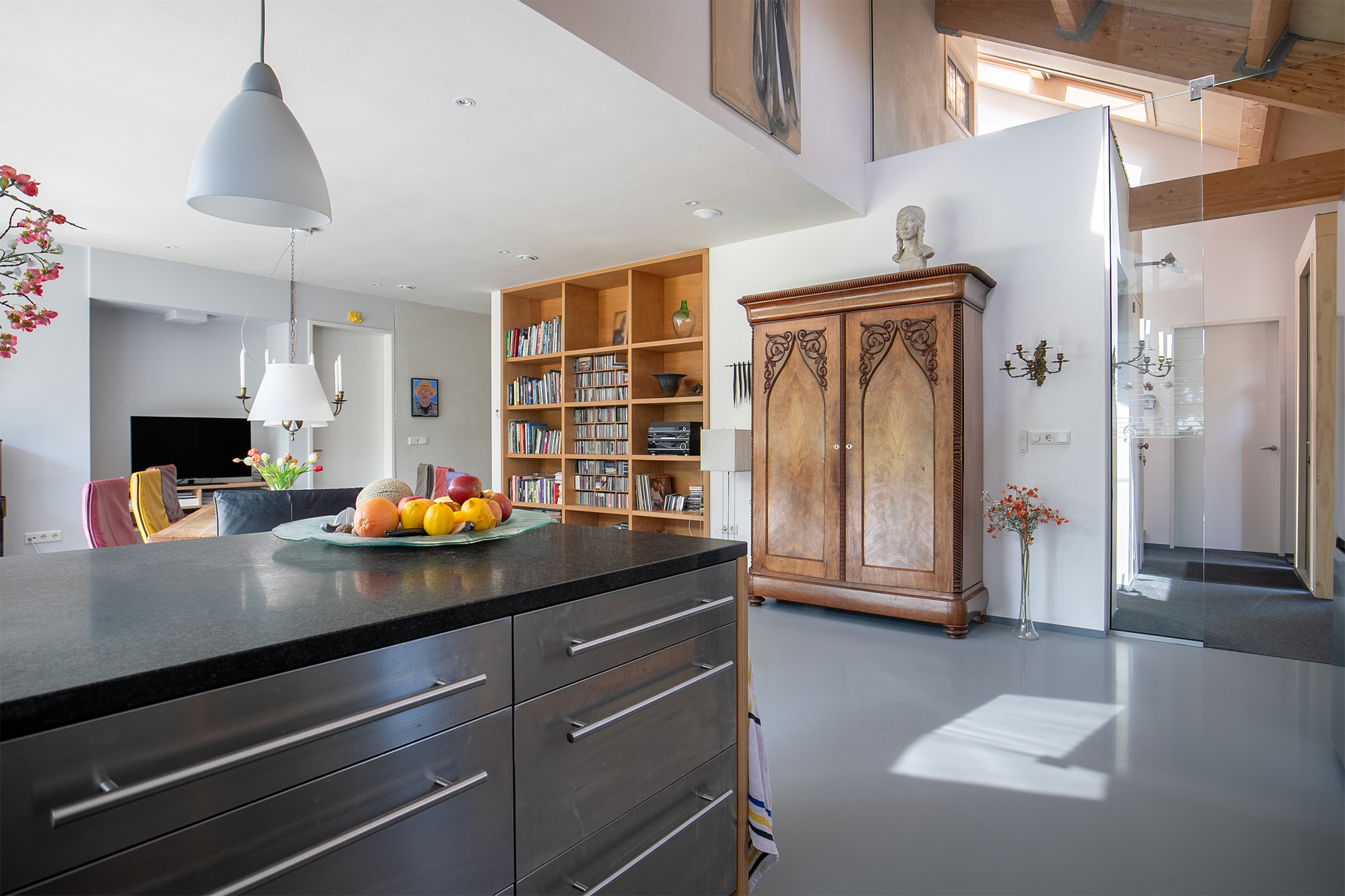 In addition, on the ground floor you will find a utility room, a separate toilet, and a spacious bedroom with an en-suite bathroom—perfect for single-story living or as a guest apartment. Unique is the extra spacious room, which can be furnished according to your wishes as a living room, workspace, or extra bedroom. Thanks to its separate entrance, this space offers excellent opportunities for working from home without compromising on privacy.