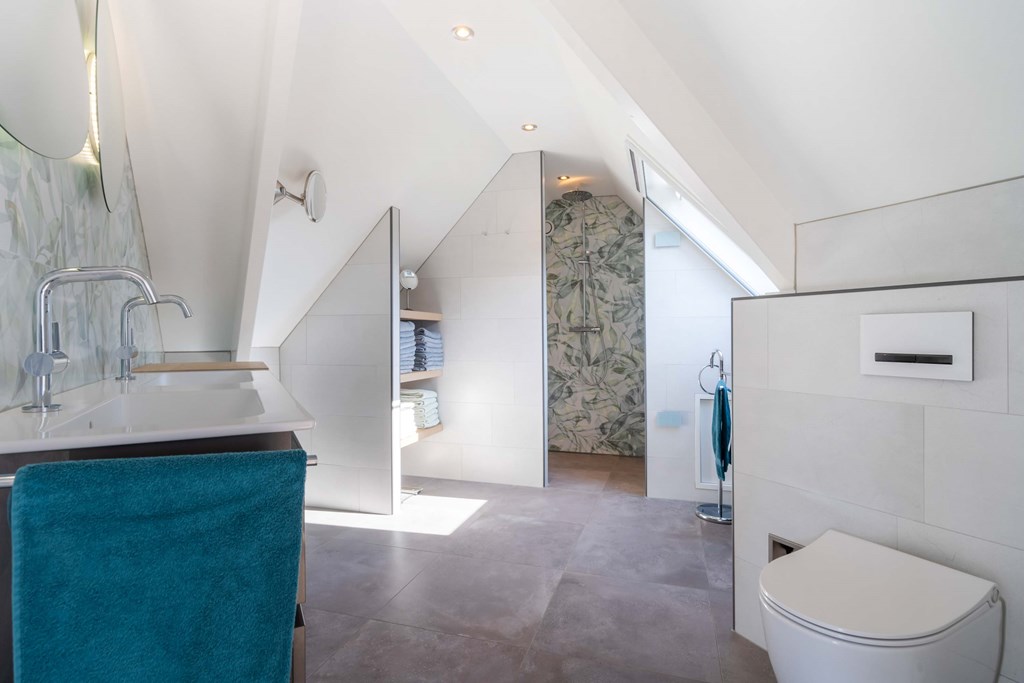 A loft ladder gives access to the attic for generous storage and to the central heating unit (Nefit combi 2012 IW 6).