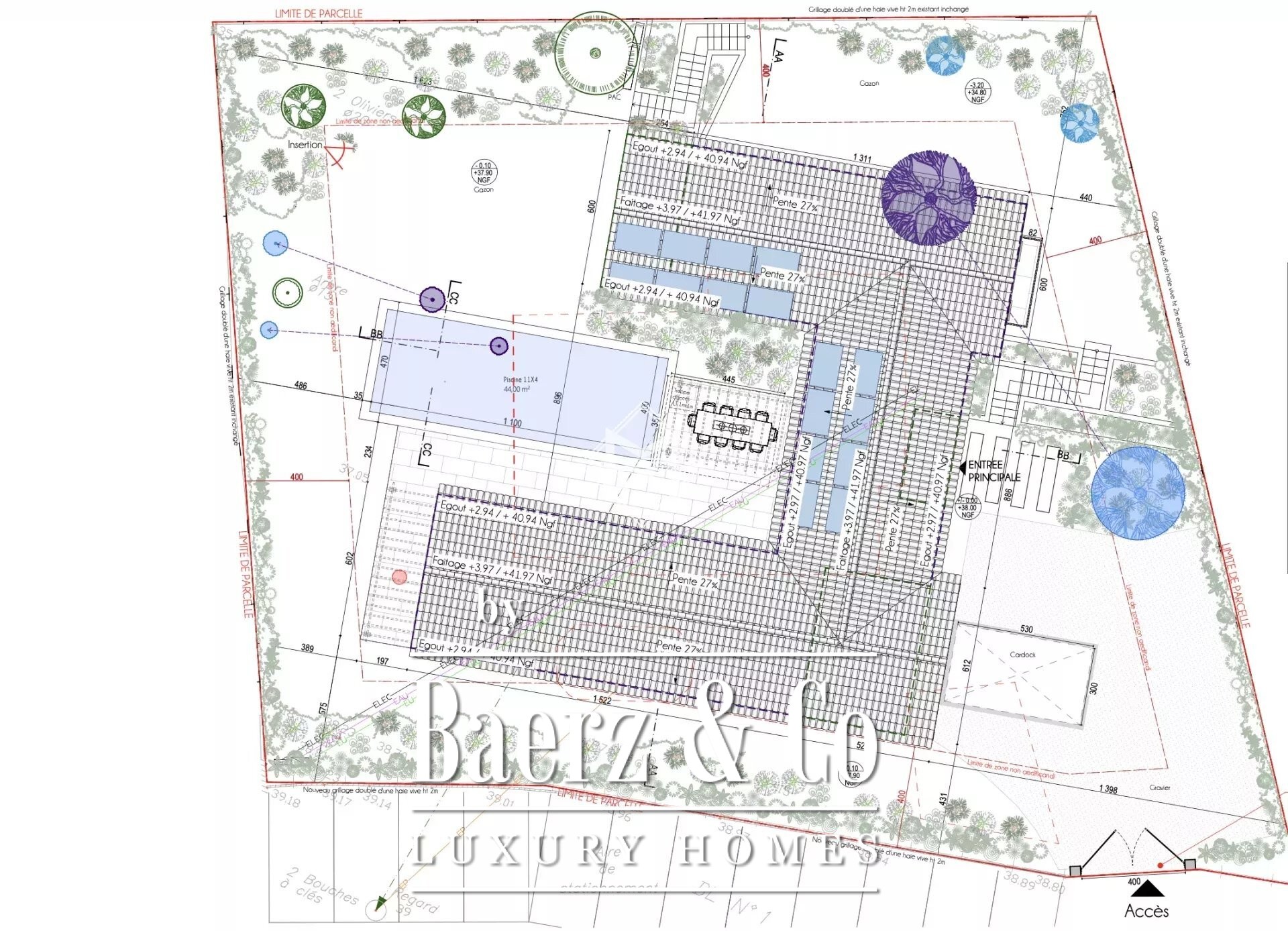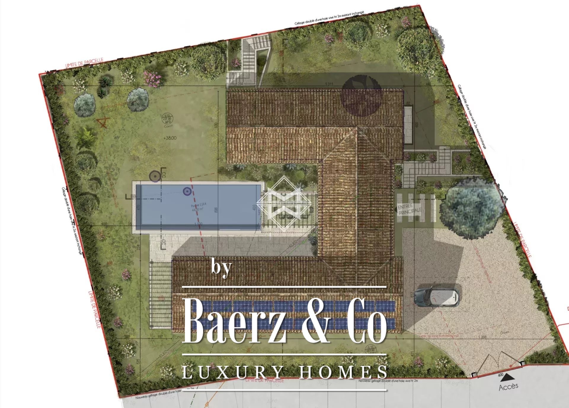 building permit for a stylish two-level villa, offering a total area of 308 m², including a garage and a swimming pool. A rare opportunity in a prestigious setting.