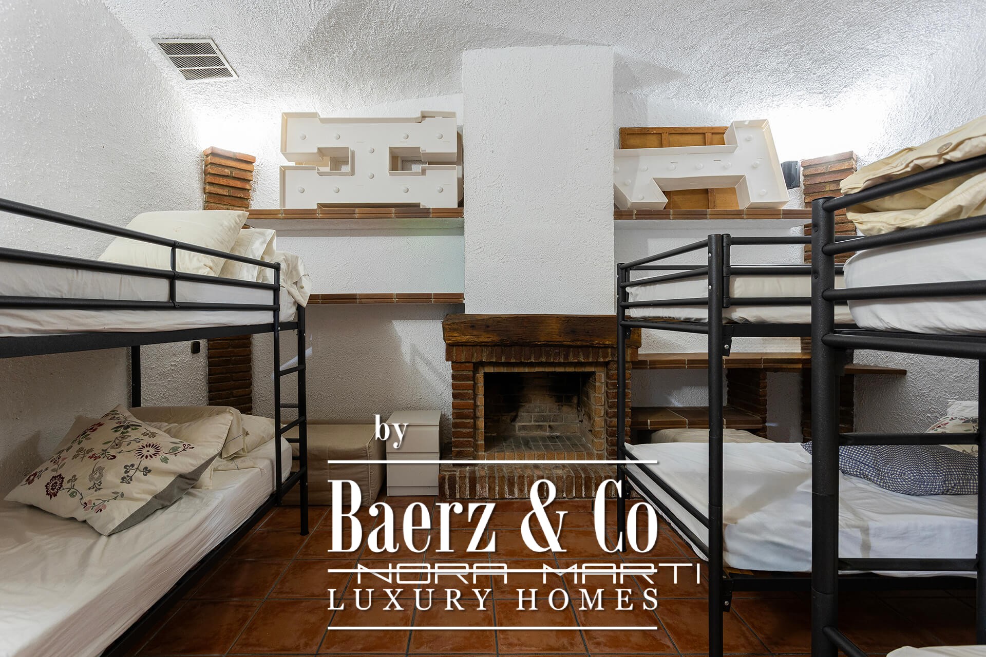 Spanning three levels, the house accommodates refined family living. The basement provides a garage for several vehicles, a wine cellar, and generous storage. The ground floor encompasses a luminous living room, a fully equipped kitchen opening to a 60 m² terrace for al fresco dining, and two bedrooms with a full bathroom. The first floor features four spacious double bedrooms, two full bathrooms, and a 40 m² terrace capturing the calm scenery.