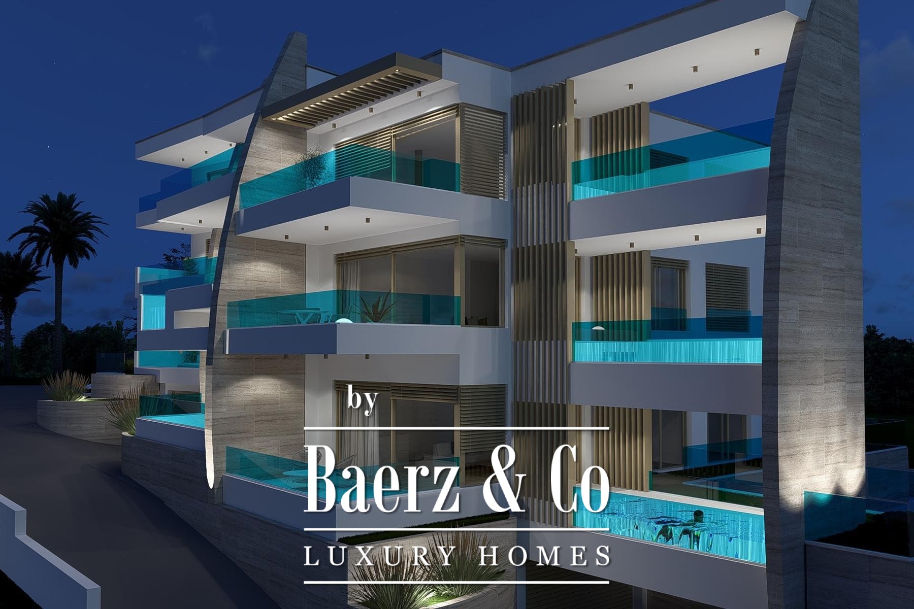 bathroom, one separate bathroom, and a spacious terrace with a pool and a sea view. Above the apartment there is a spacious roof terrace with a sunbathing area and a barbecue area. Each room has air conditioning, and the apartment also has underfloor heating. The building is equipped with an elevator.The building is located only 40 meters from the sea. This is a luxury project consisting of two buildings, with a total of 9 apartments, where each apartment has a private pool.We are at your disposal for all other information.