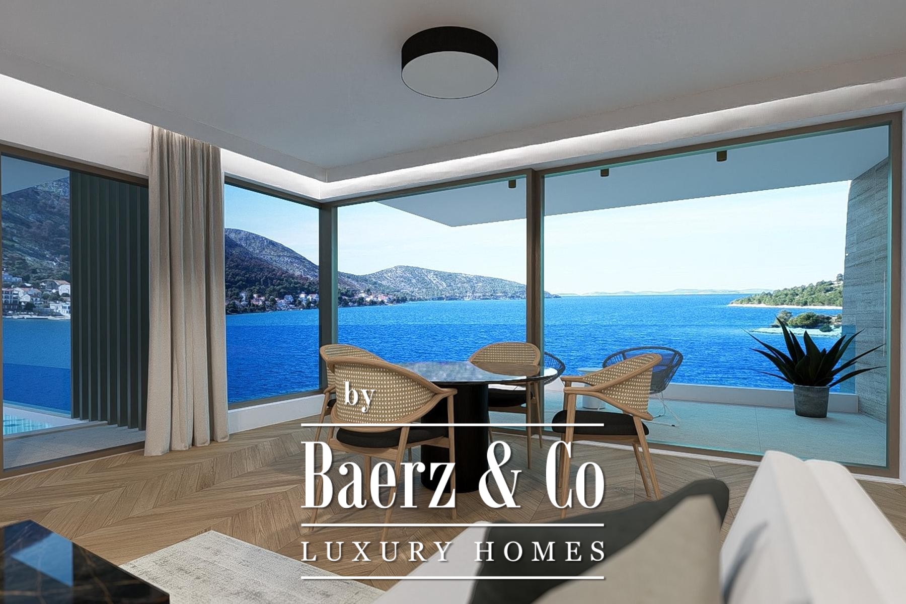 of which has access to private bathroom, one separate bathroom, and a spacious terrace with a swimming pool and sea view. Each room has air conditioning, and the apartment also has underfloor heating.The building is located only 40 meters from the sea. This is a luxury project consisting of two buildings, with a total of 9 apartments, where each apartment has a private pool.We are at your disposal for all other information.