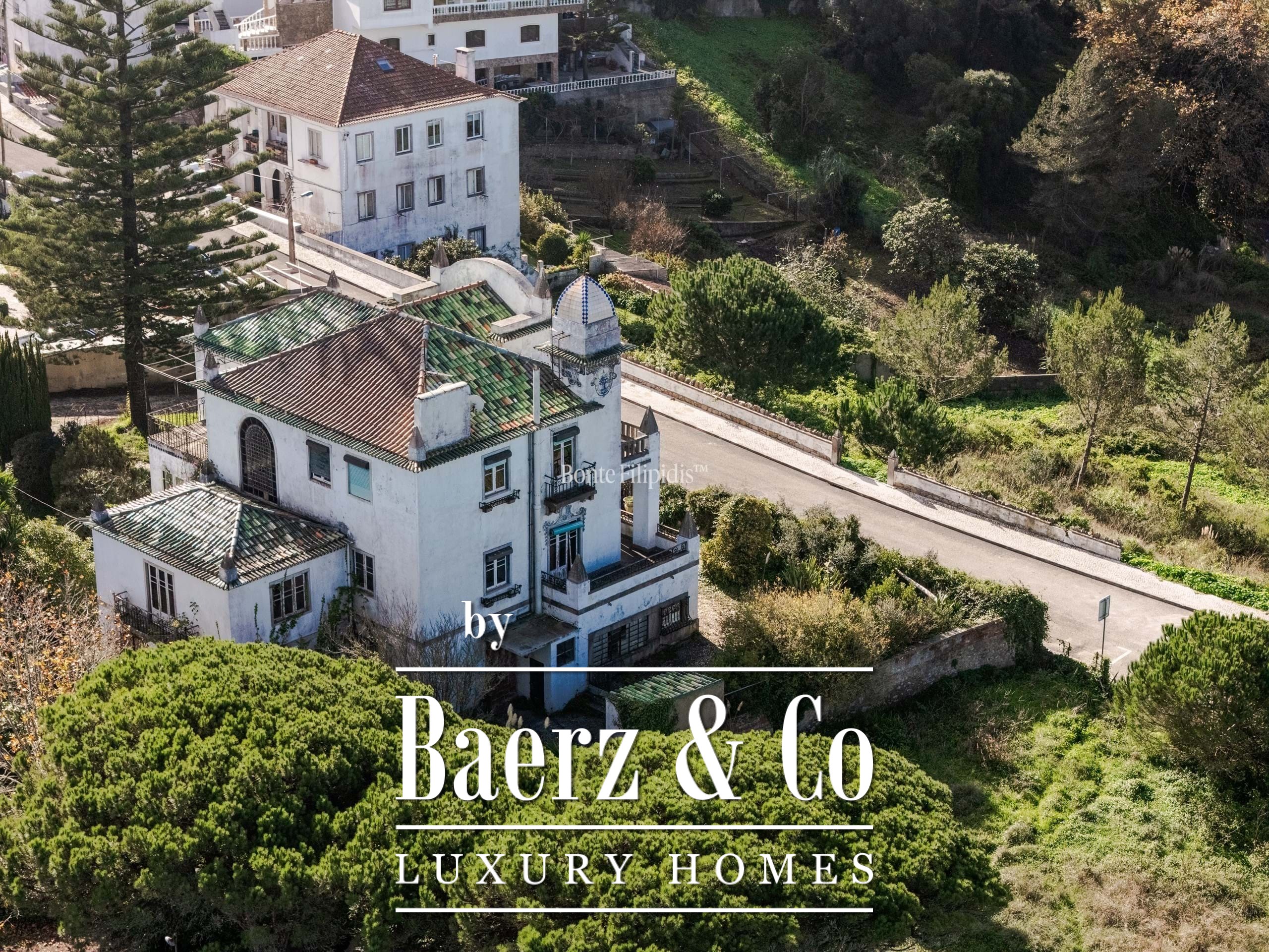 Located in the center of Sintra, this 478 sqm property reflects the architectural heritage of the region and was designed by architect Manuel Joaquim Norte Júnior. Set on a 1,282 hectare plot, the property combines mountain and garden views with trees, offering privacy and versatility for various projects.