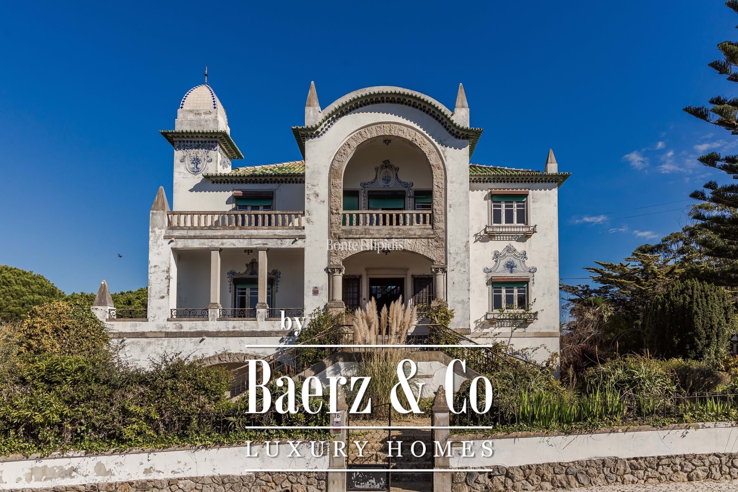 Outside, the terraces and gardens provide views of the Sintra mountains and the Atlantic Ocean, creating spaces for leisure or events. The property has a footprint of 948 sqm and is partially classified as residential, allowing for rehabilitation projects that comply with local urban planning regulations.