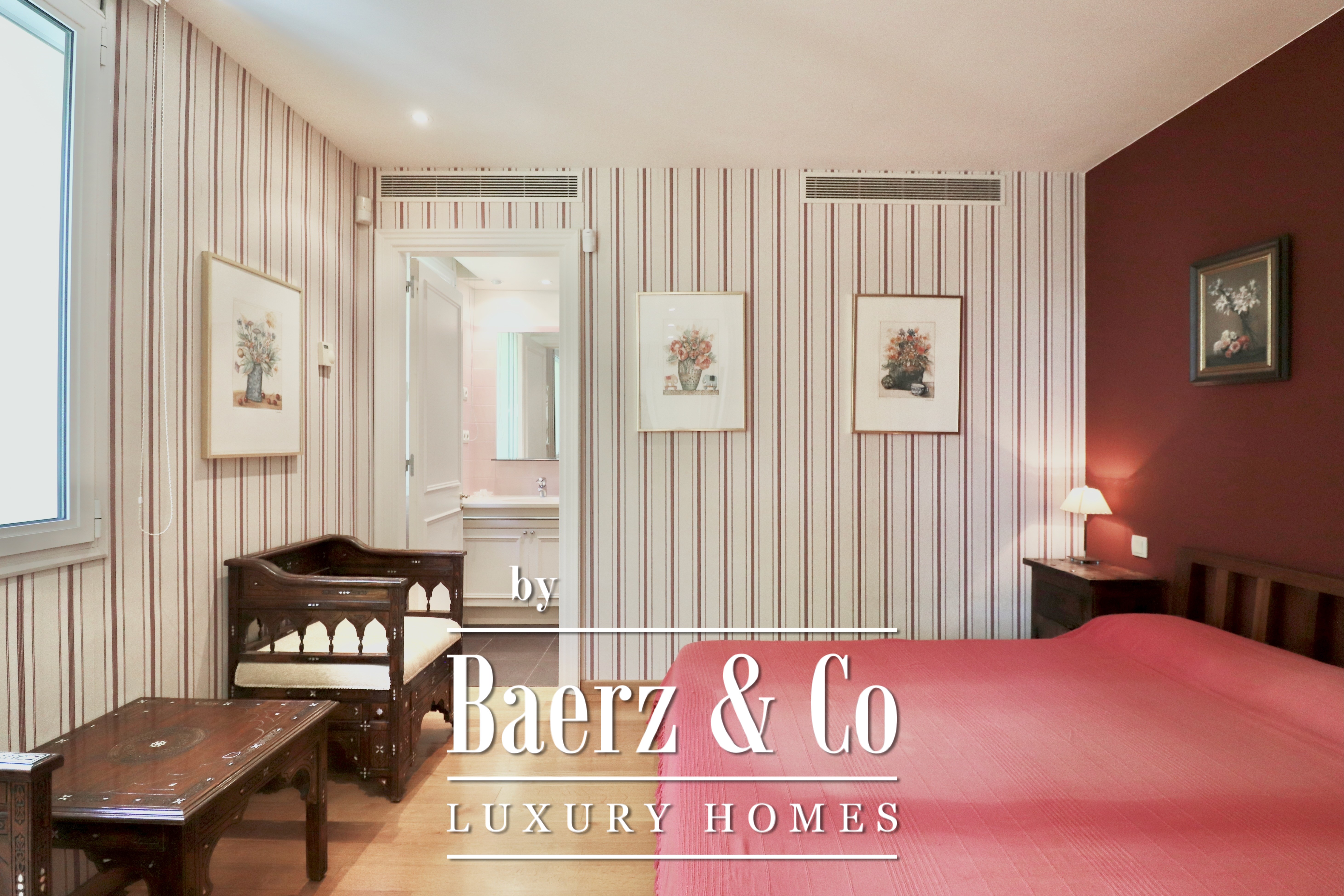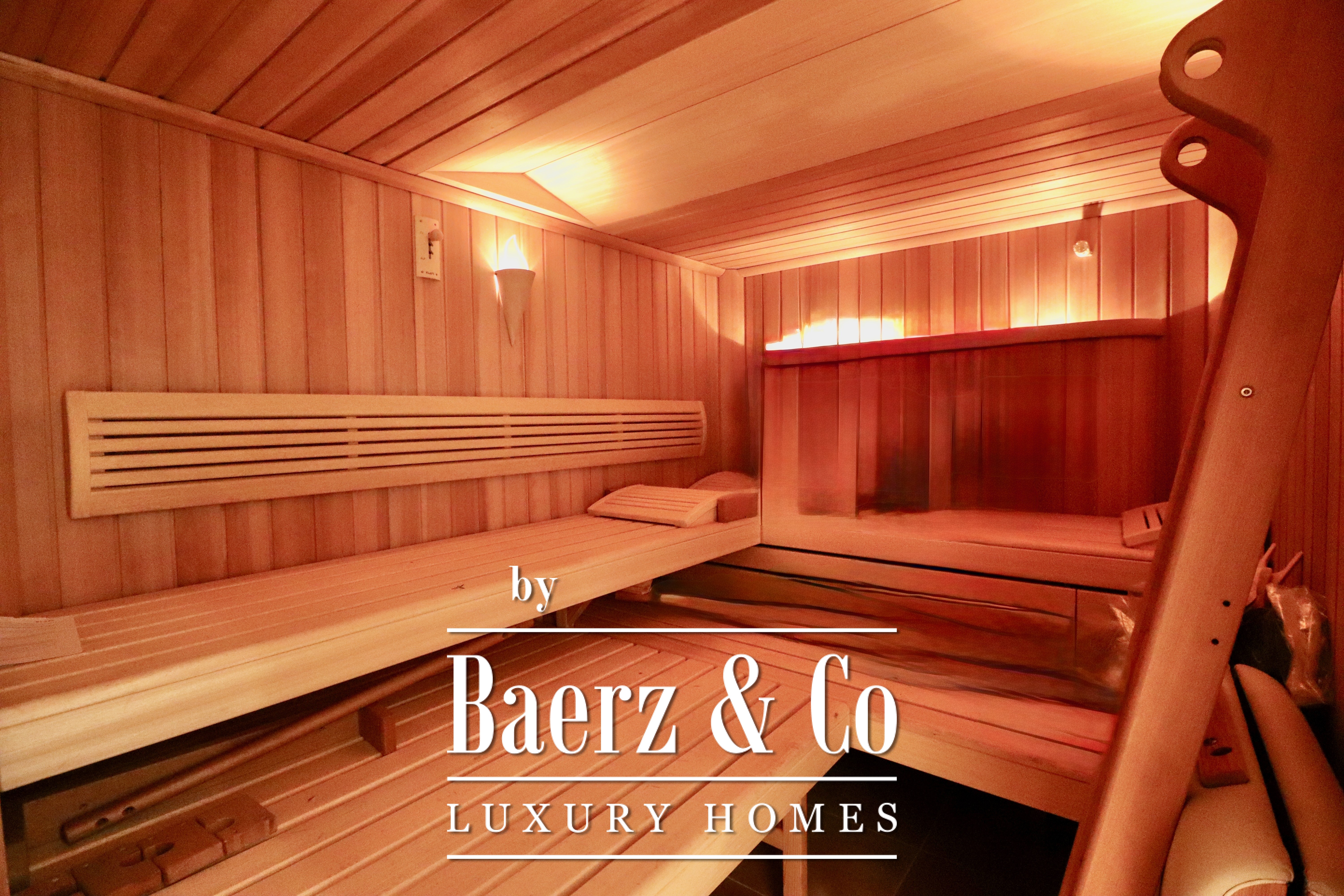 Designed for discretion and comfort, the villa unfolds across three levels, connected by a private lift. The main level opens with a refined entrance hall leading to a fluid living space, including living and dining rooms, a media zone, and a fully equipped kitchen with an adjoining service area and dedicated office. Five bedrooms and eight bathrooms allow for both family intimacy and entertaining on a generous scale.