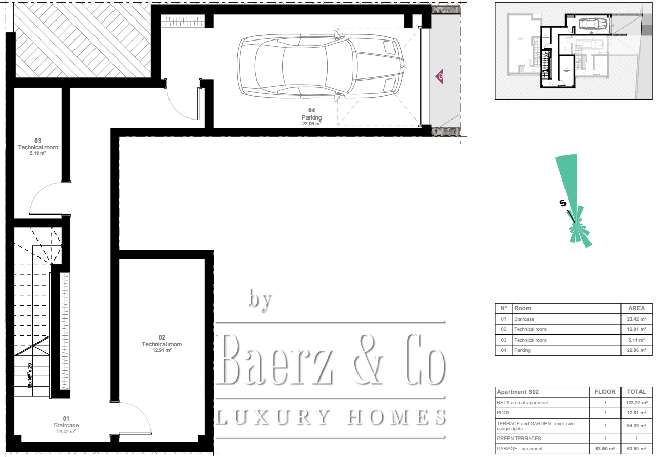 ‍The townhouse has 4 levels. It has a pool that is on the top of the house. The house has a garage spot. It is connected by an asphalt road to the main road.