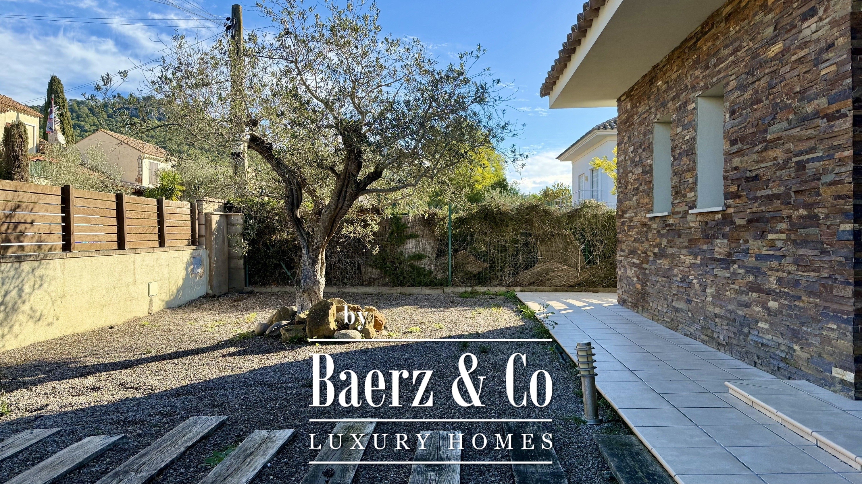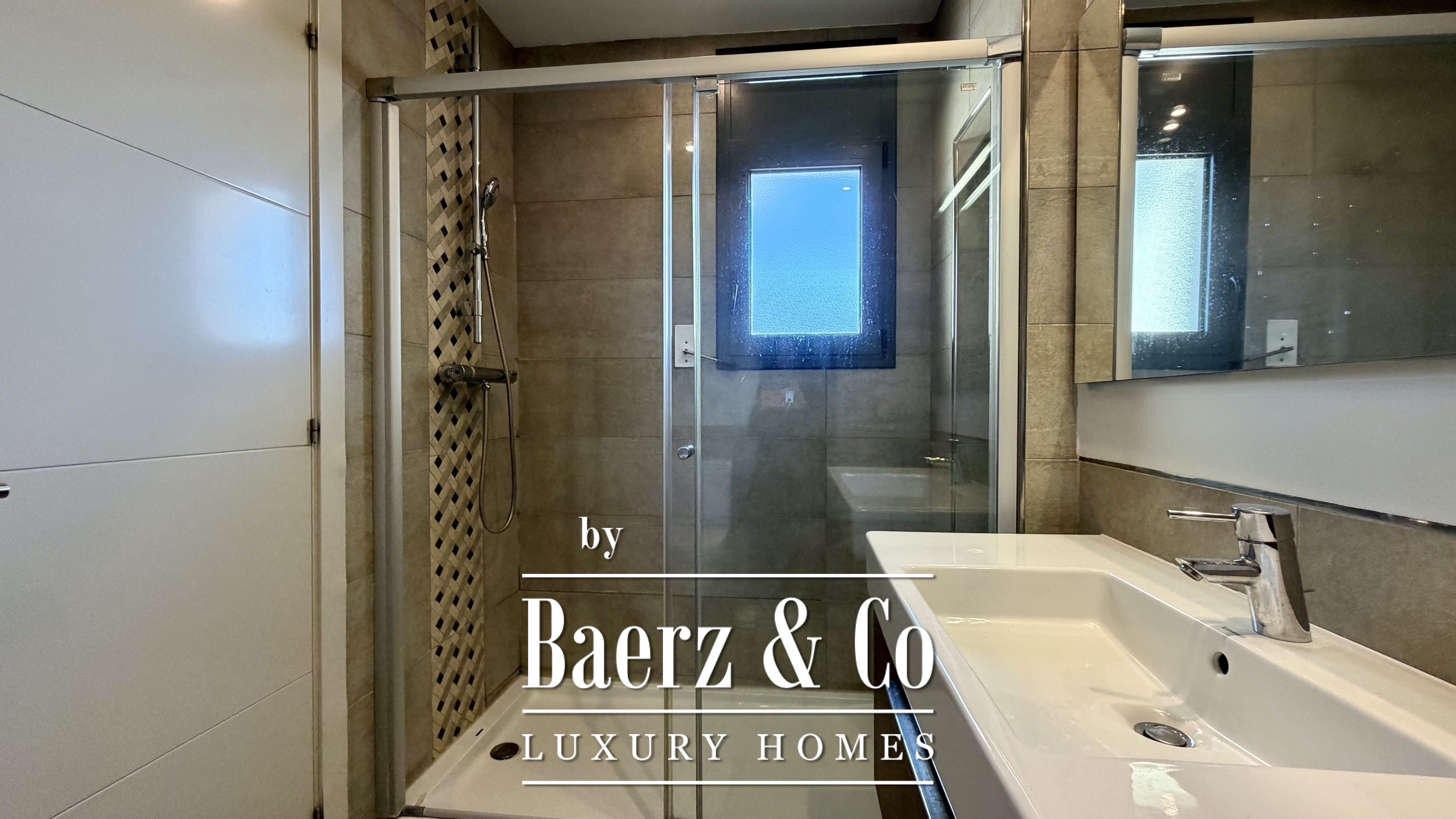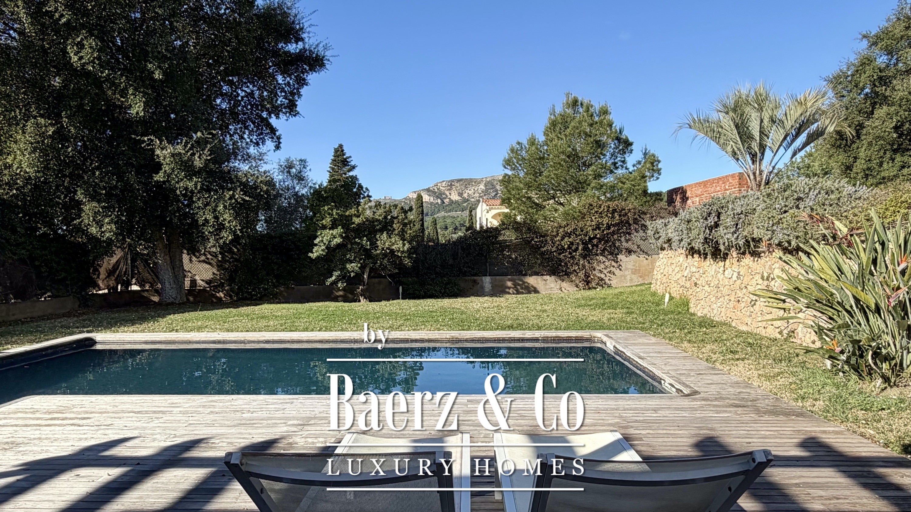 Upstairs, three further bedrooms—two en suite—and an additional bathroom ensure privacy for family and guests. Every room benefits from light, openness and tranquil views, with sea and country outlooks present throughout. Outdoor life centres on the landscaped Mediterranean garden and private pool, framed by terraces and a pavilion with changing facilities.