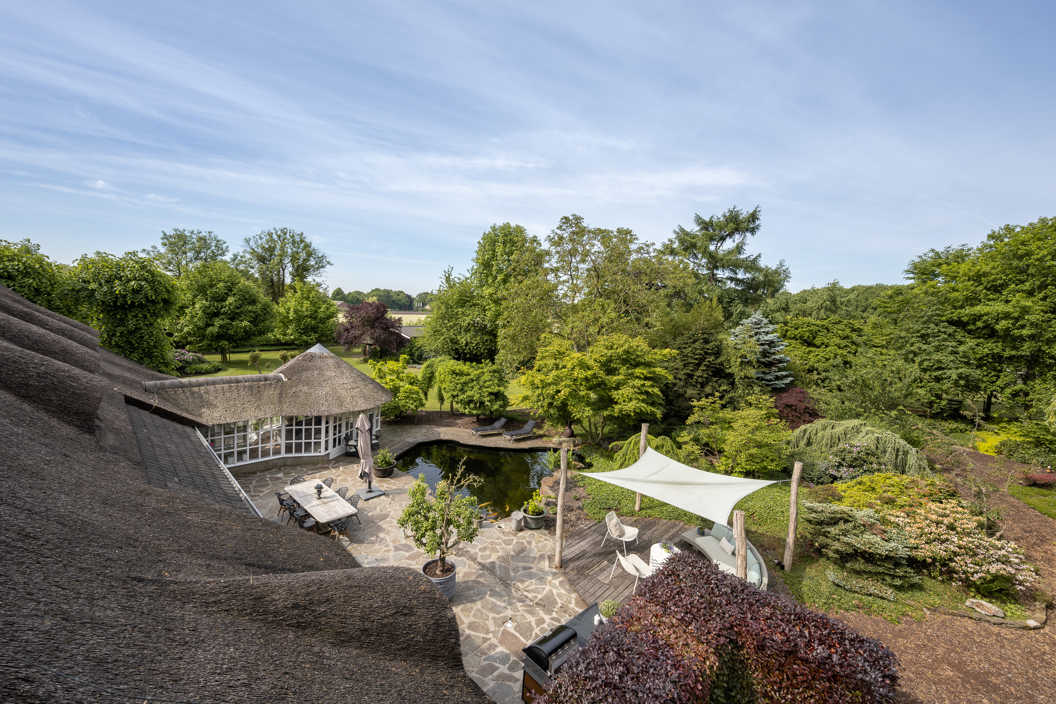 Set on approximately 1 hectare of land, the estate offers a park-like garden with mature trees, a pond, and multiple terraces. For equestrian enthusiasts, there are stables, a fully fenced paddock, and direct riding access to the Bedafse Bergen trails. Additional features include a fruit orchard, vegetable garden, natural pasture pond, animal shelter, an authentic water well, and even a converted baker’s cottage serving as a charming chicken coop.