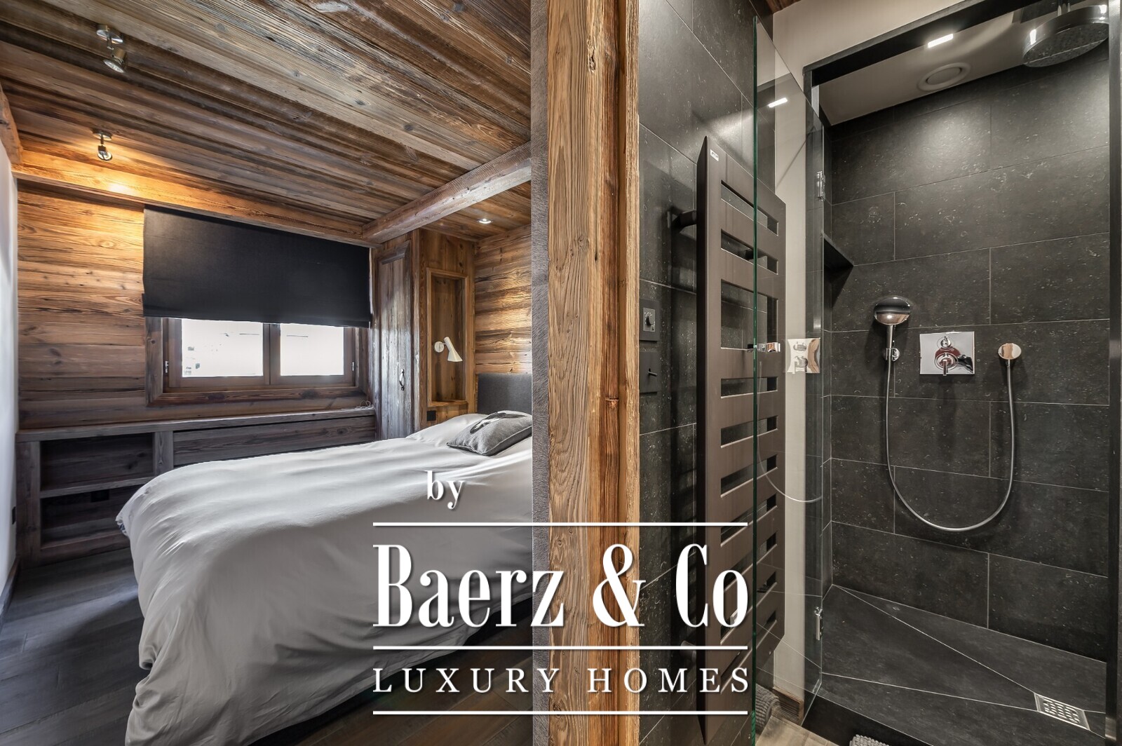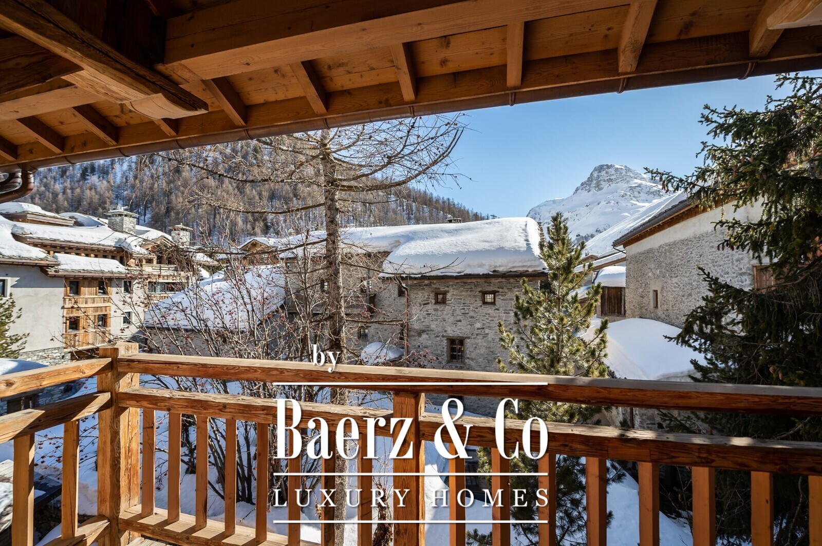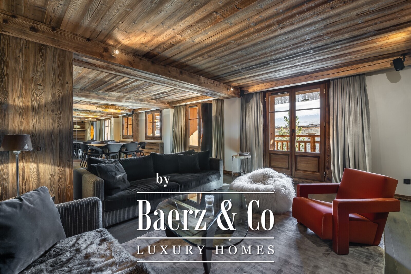 This magnificent apartment is located in a small luxury residence in the heart of the old village, one of the most sought-after areas of Val-d'Isère. This apartment offers spacious rooms, a beautiful living room with a fireplace, three double bedrooms, a dormitory, an indoor parking space, and two cellars. The high-quality materials and tasteful decor give it a warm atmosphere in a distinctly Alpine style. The apartment's south-facing aspect allows for sunshine throughout the day.