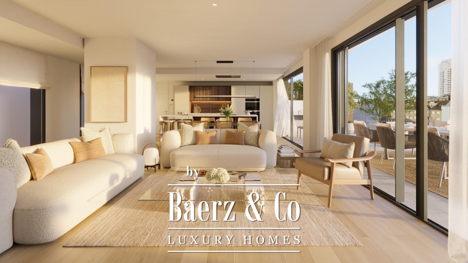 Penthouse Valencia stands as a quietly commanding presence in one of the city’s most prestigious quarters, moments from the City of Arts and Sciences. This penthouse comprises 254.27 m² total built area, including a 148.66 m² apartment and a private terrace of 105.61 m², each detail calibrated for contemporary living with privacy and light. The terrace, seamlessly extending from the living room on the same level, frames the Mediterranean climate as a true part of daily life, creating an open yet intimate spatial rhythm.