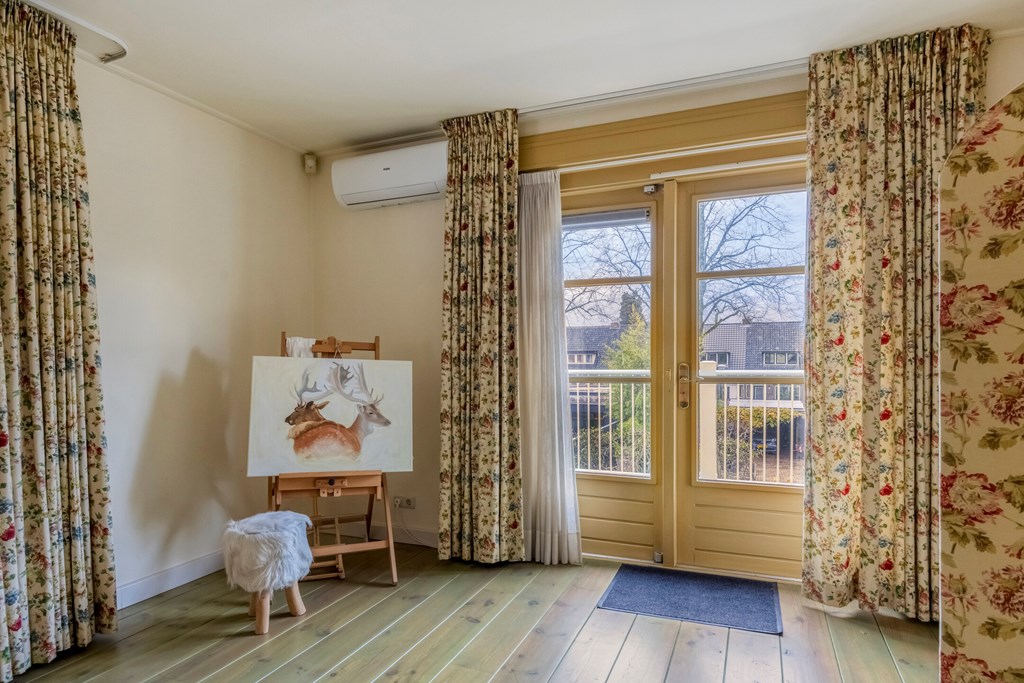 The first floor brings you to the bright landing with air conditioning and connects to three spacious bedrooms and a second bathroom. Each room has its own charm and a convenient washbasin unit. The largest room also has air conditioning and offers access to the generous balcony through French doors, overlooking the deep garden. The bathroom on this floor is practically laid out with a washbasin, shower and toilet. The floor feels airy thanks to the space and the abundance of daylight throughout.