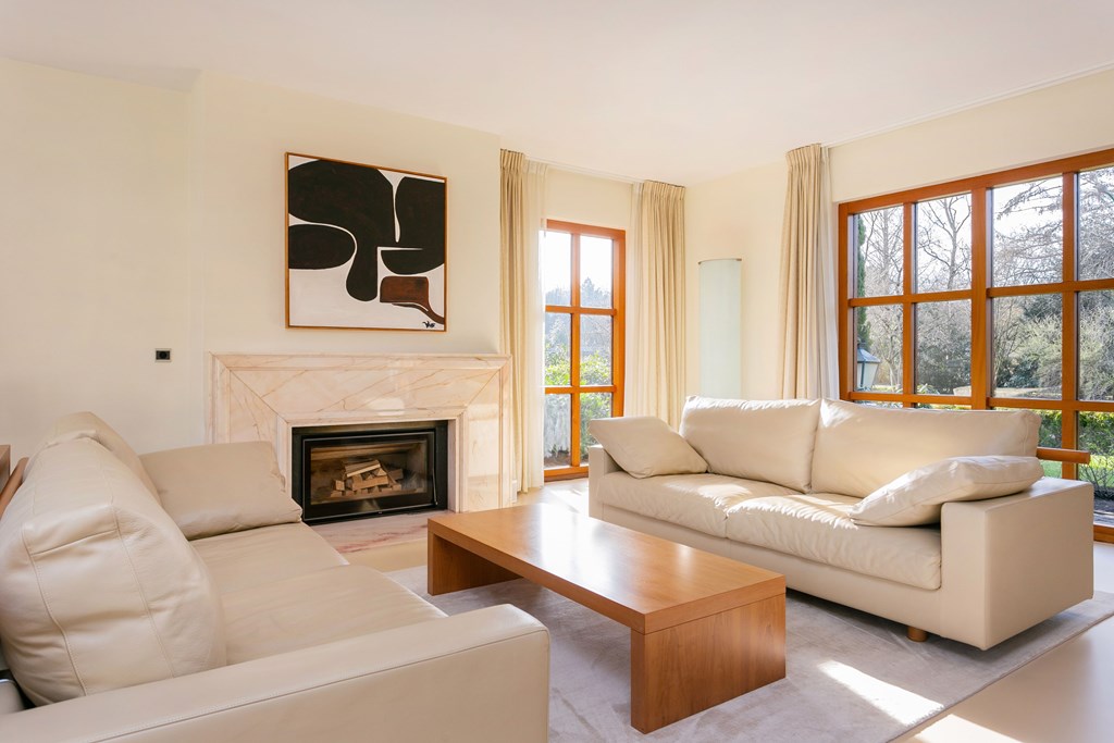 - Closed wood-burning fireplace: Barbas, 90 cm, set in a marble surround