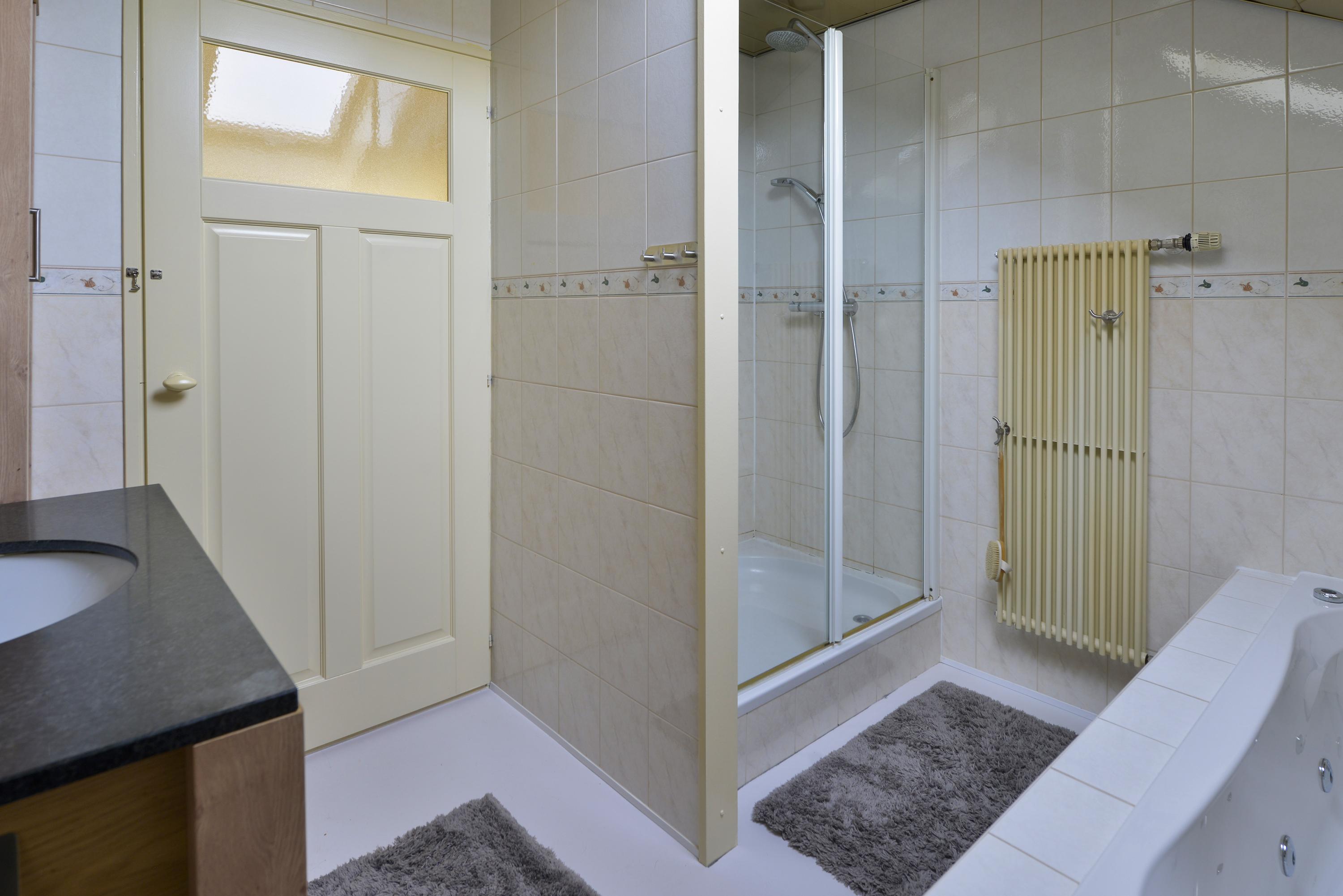 Ground floor: entrance hall with meter cupboard access to the cellar and staircase. Atmospheric and bright living room at the front of the house with an adjoining cosy raised room. From both the hall and the raised room the spacious kitchen is accessible. This modern kitchen was renewed in 2022 and fitted with various built in appliances. There is also a generous utility room with the central heating system and laundry connections.