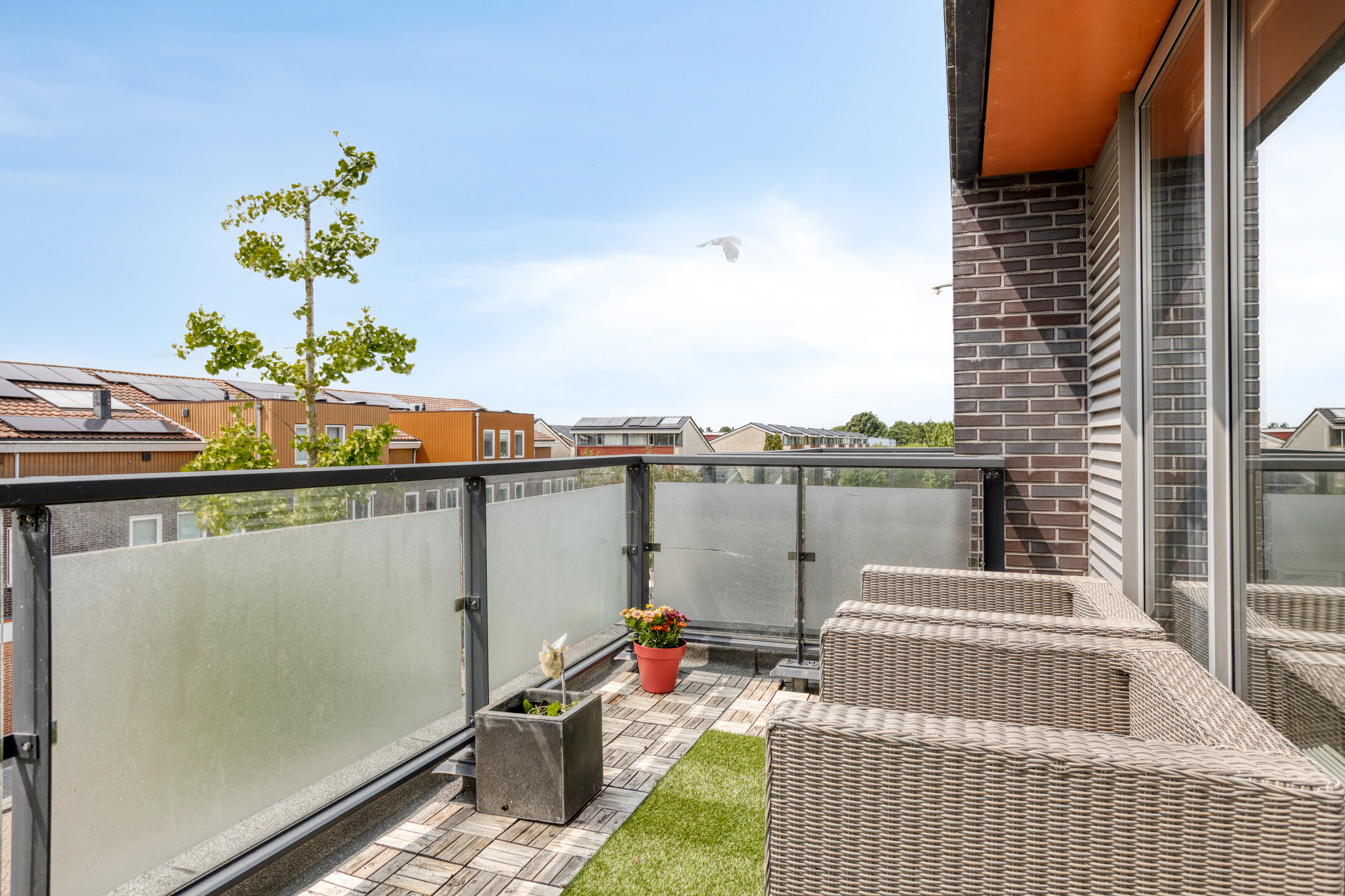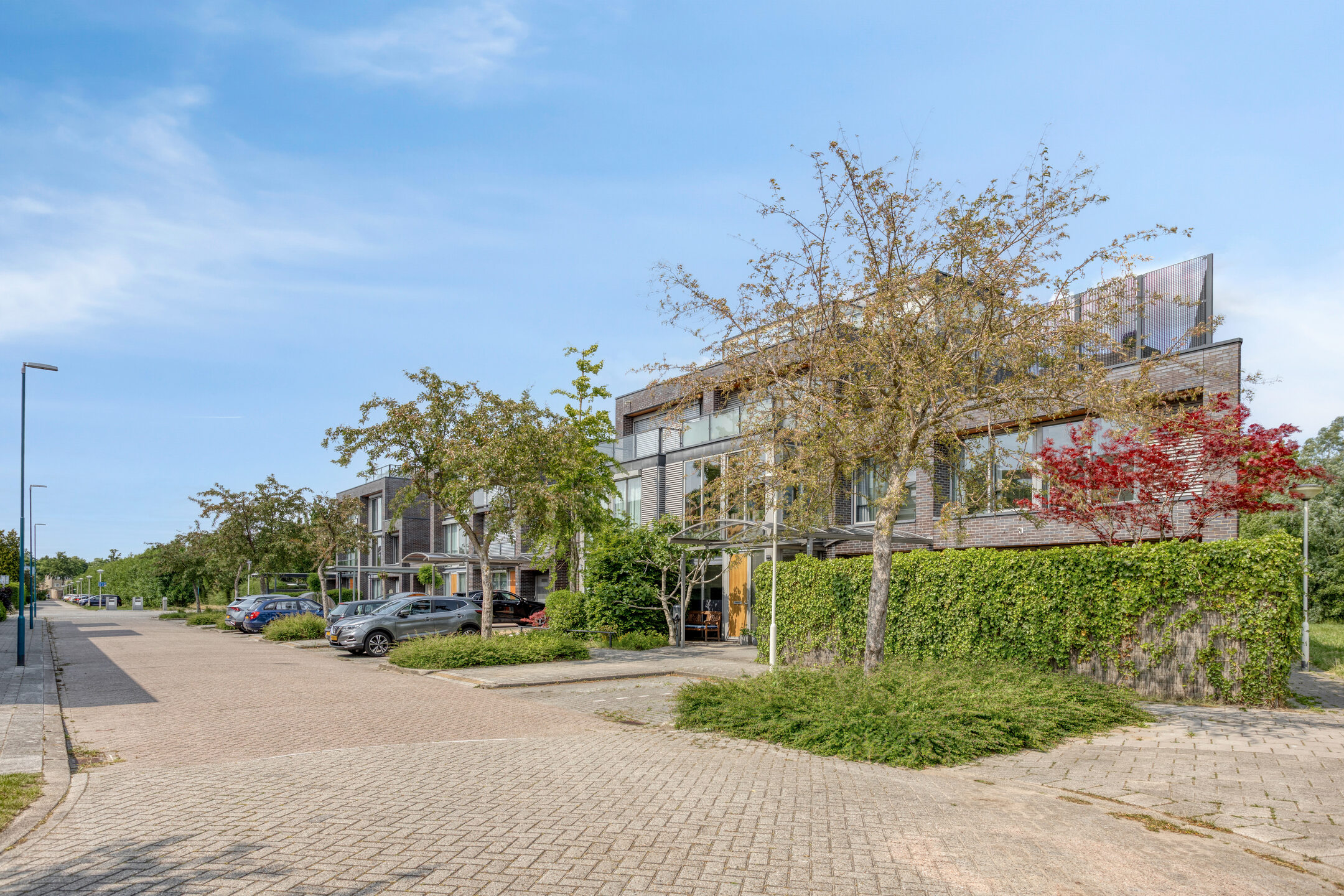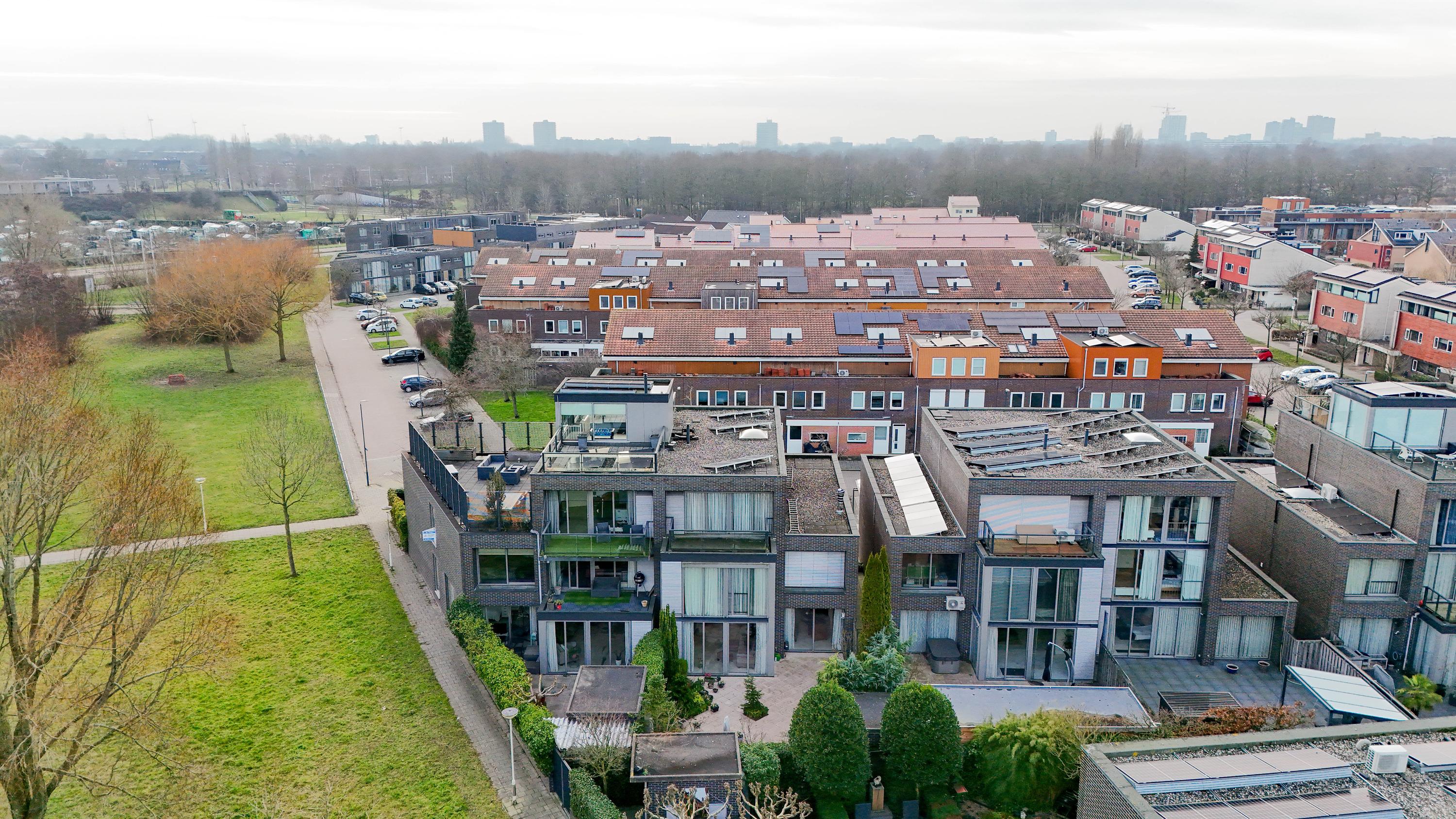 The outdoor space is just as impressive: a total of 168 m2 of outdoor area divided over a spacious front garden, back garden, 3 balconies and 3 roof terraces. This means you always have a spot in the sun as well as privacy. There is parking space on private property under the carport and there is even a private charging station available. The location in a green, quiet neighbourhood of Zoetermeer completes the living comfort. From the living room you have an unobstructed view over a green strip and mature trees – a rare combination of space, privacy and nature within easy reach.
