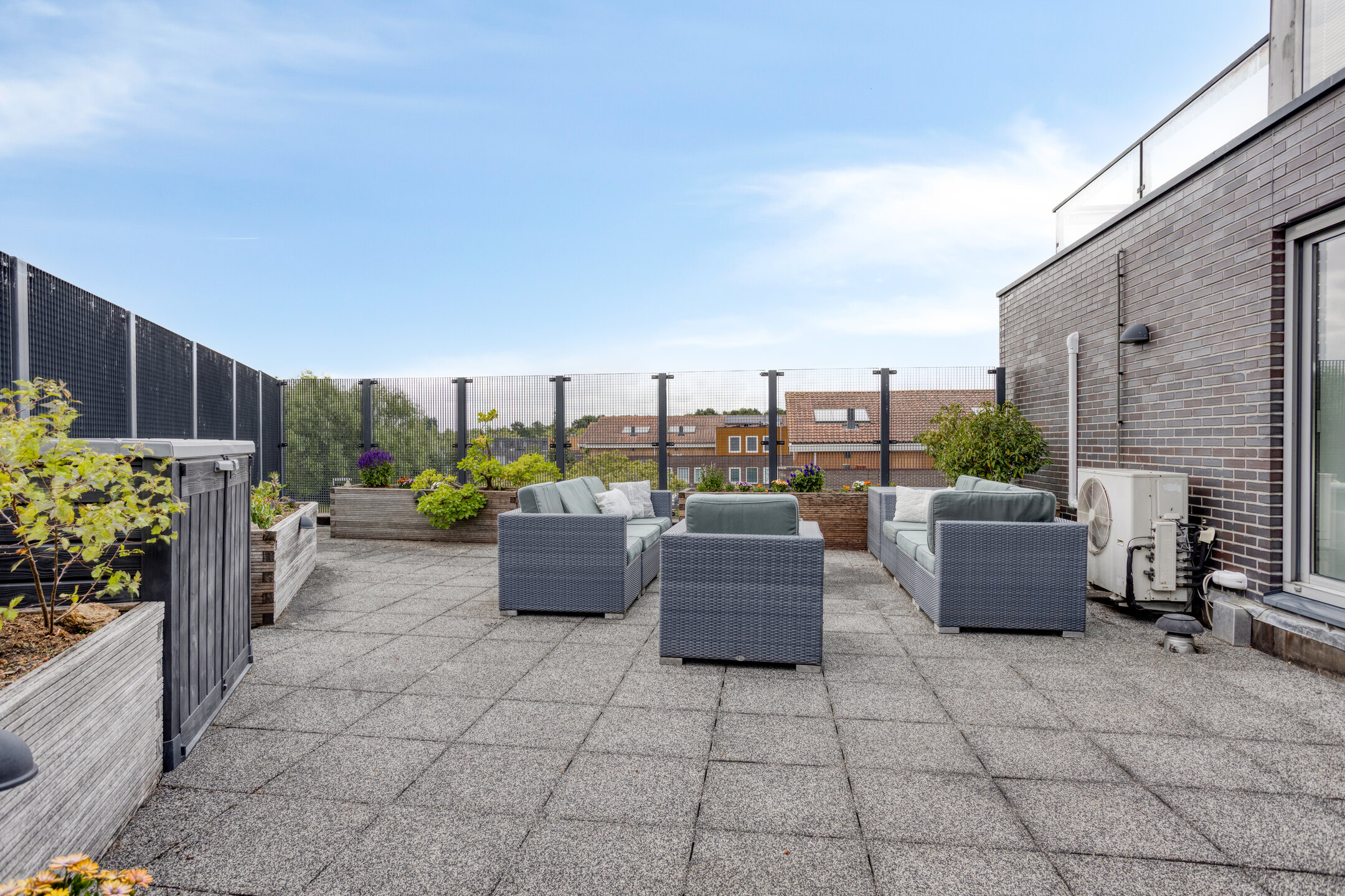 -Front garden, back garden, 3 balconies, 3 roof terraces