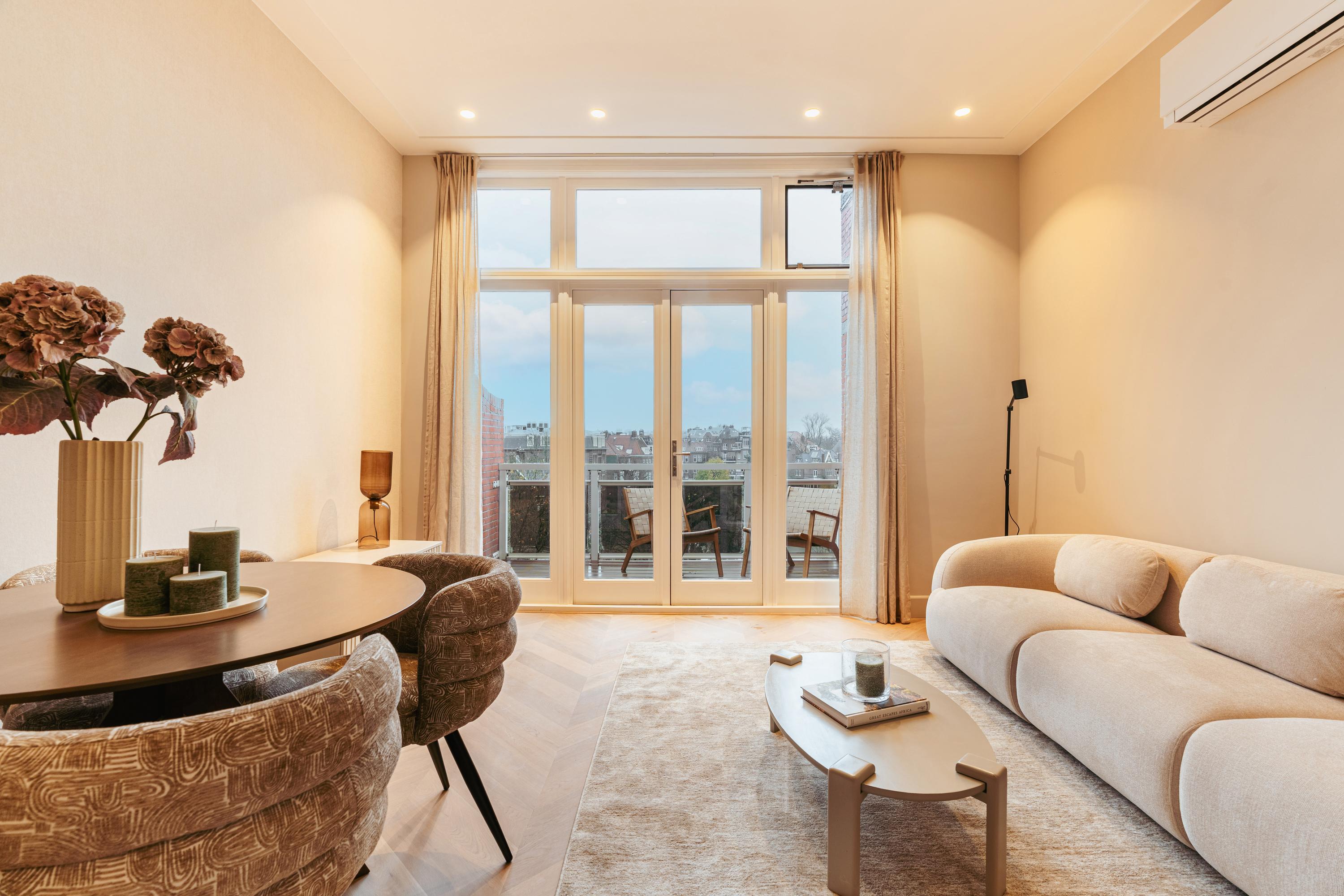 Destaca la recién construida terraza en la azotea, que ofrece vistas panorámicas sobre la ciudad y el elegante estanque. La etiqueta energética A subraya el carácter innovador de este ático, que también dispone de aislamiento en paredes, paneles solares y una bomba de calor. A escasa distancia de Vondelpark, restaurantes reconocidos y boutiques exclusivas, este apartamento de lujo en venta en Amsterdam Oud-Zuid ofrece privacidad y comodidad; cada detalle está concebido para una vida urbana sofisticada.