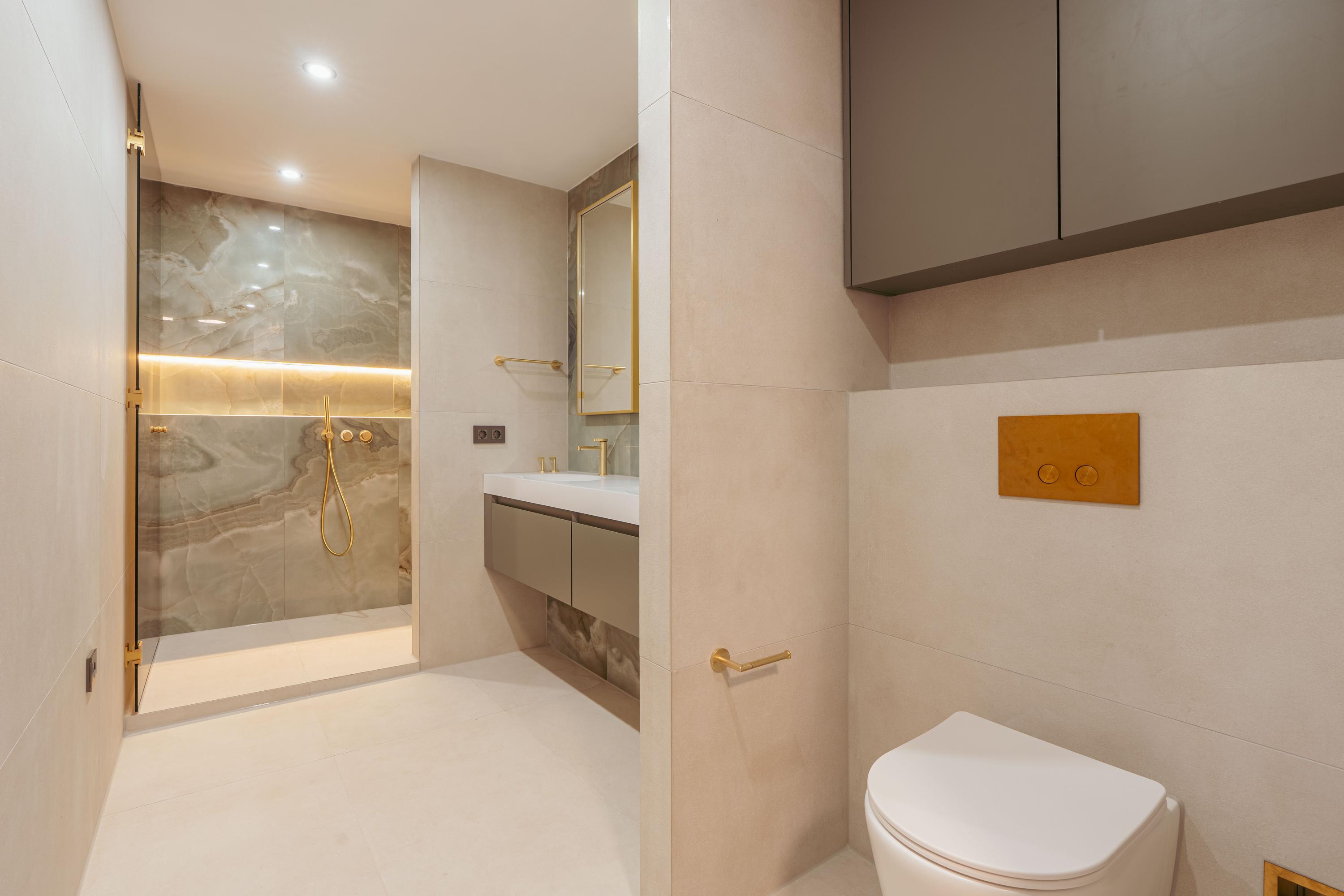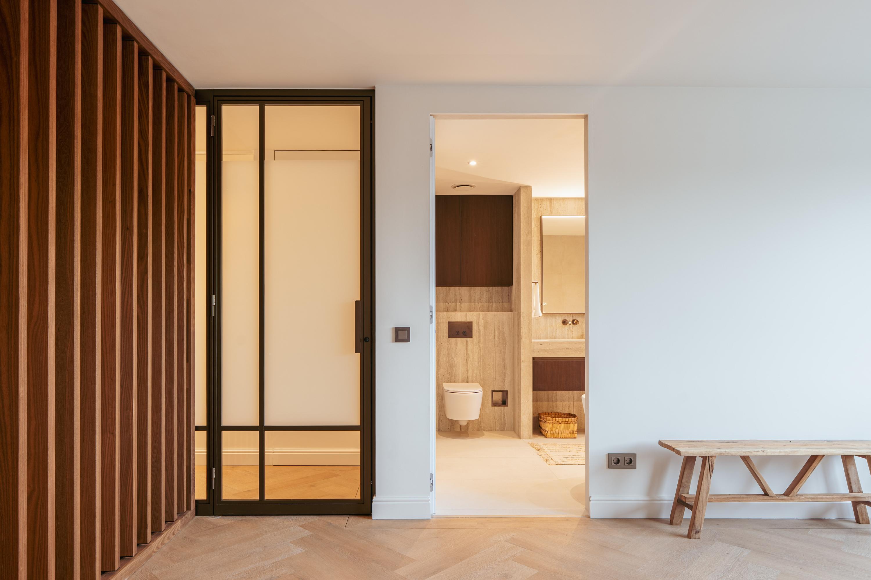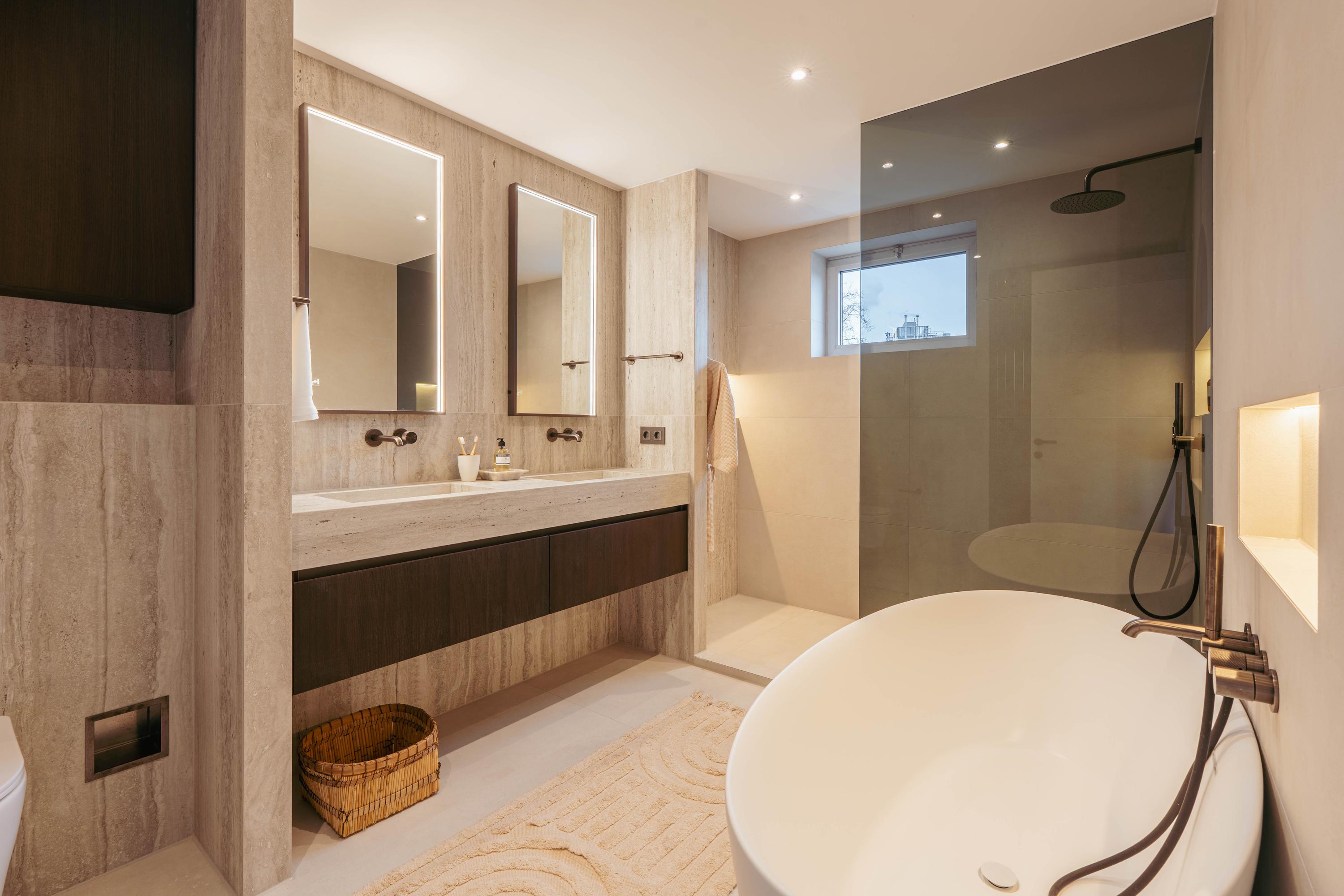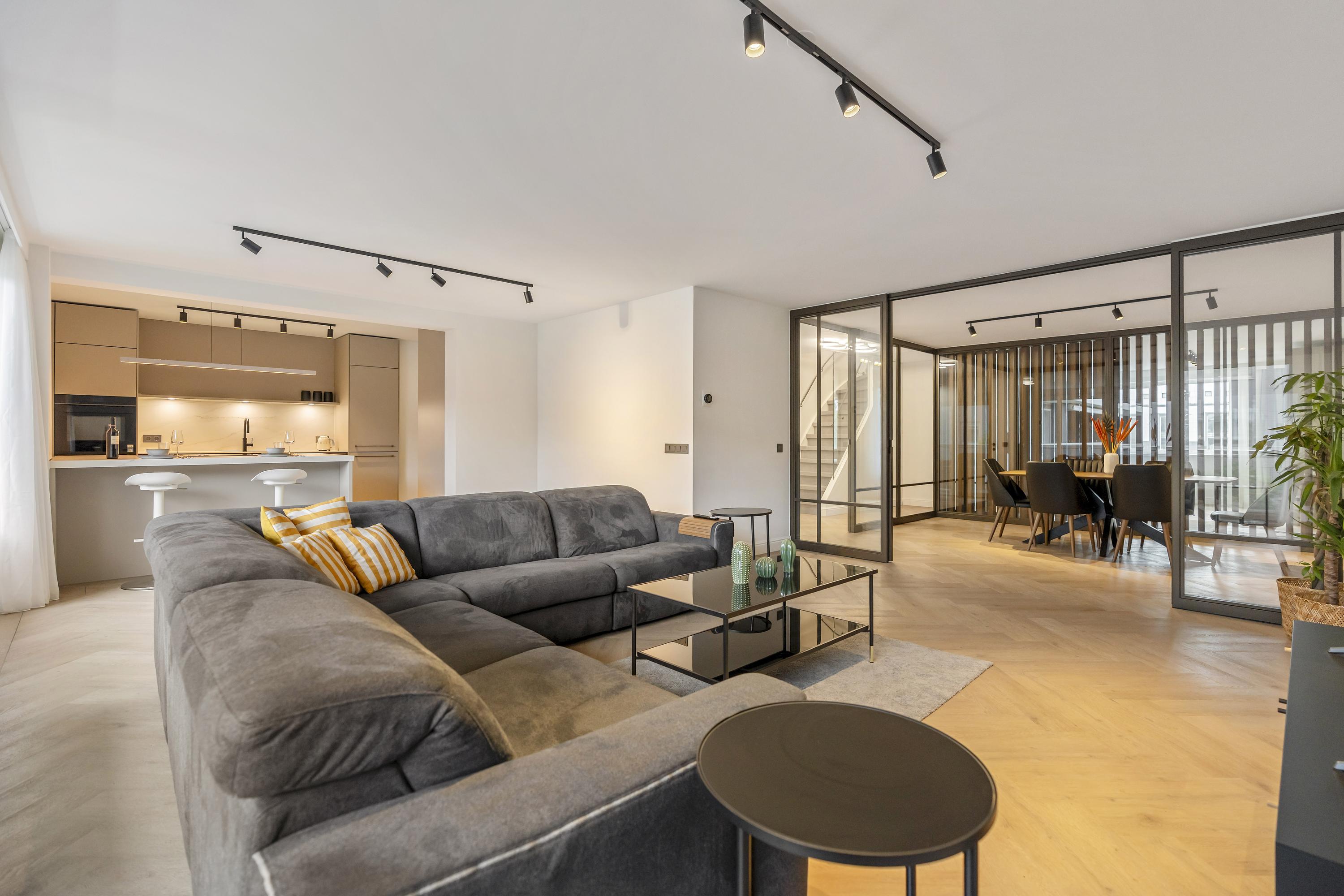 La elegante isla de la cocina, equipada con electrodomésticos modernos, goza de una iluminación sutil que acompaña a cada velada. La suite principal, de casi 22 m² y con vistas al Singelgracht, cuenta con un baño en suite sereno, bañera exenta y ducha a ras de suelo. En la planta superior, dos dormitorios adicionales y un segundo baño mantienen la armonía y discreción del entorno.