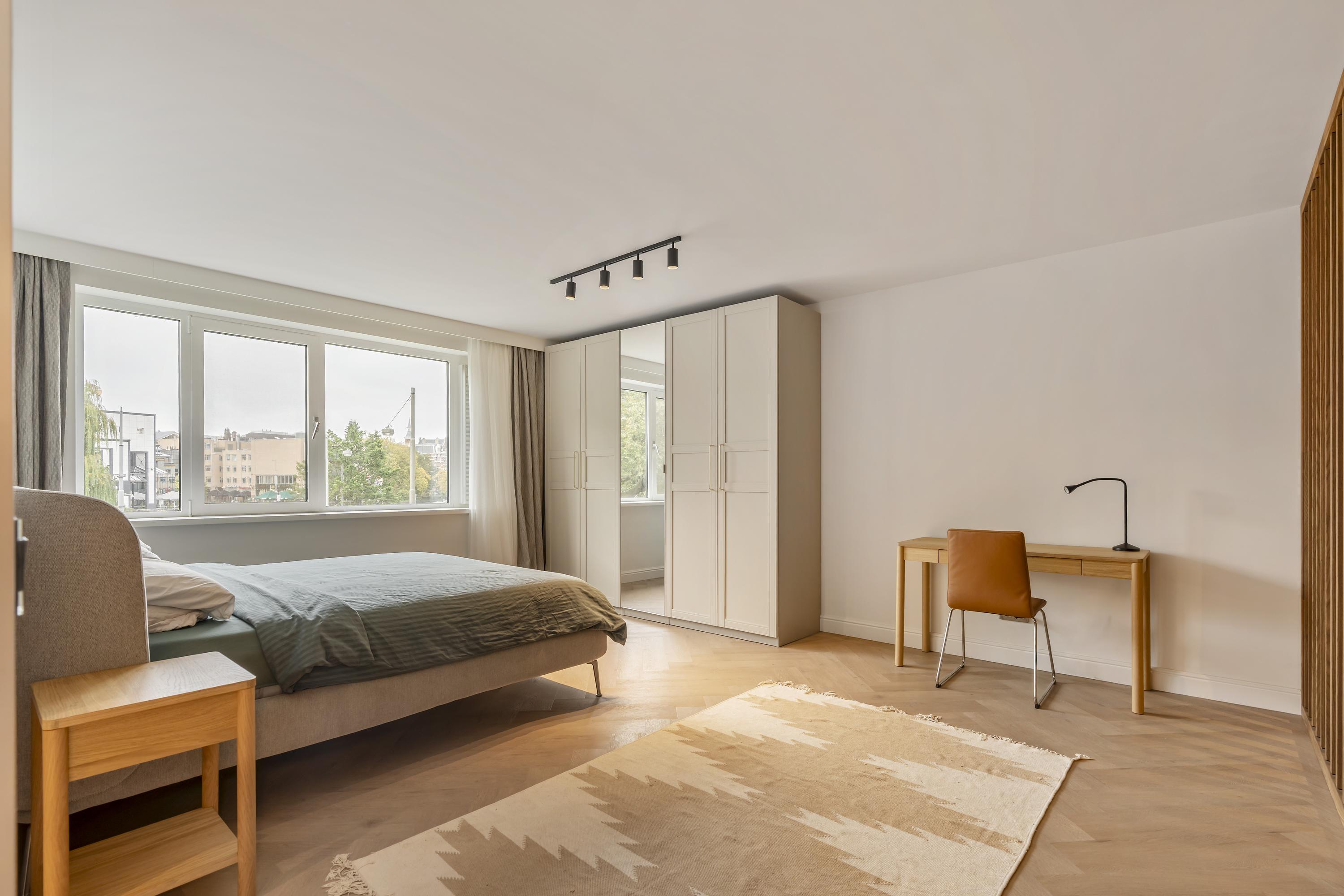 El apartamento Amsterdam Stadhouderskade es un refinado ejemplo de vida contemporánea en el corazón de Ámsterdam, situado en el prestigioso complejo Byzantium junto a Vondelpark. Totalmente renovado, este piso de 157 m² se distribuye en dos niveles y ofrece un equilibrio entre privacidad y conexión, con tres dormitorios y dos baños ideales para quienes valoran la calidad y el espacio. El área principal, realzada por ventanales de suelo a techo y puertas correderas, se abre a una terraza orientada al suroeste de aproximadamente 8 m², aprovechando la luz y la amplitud durante todo el año.