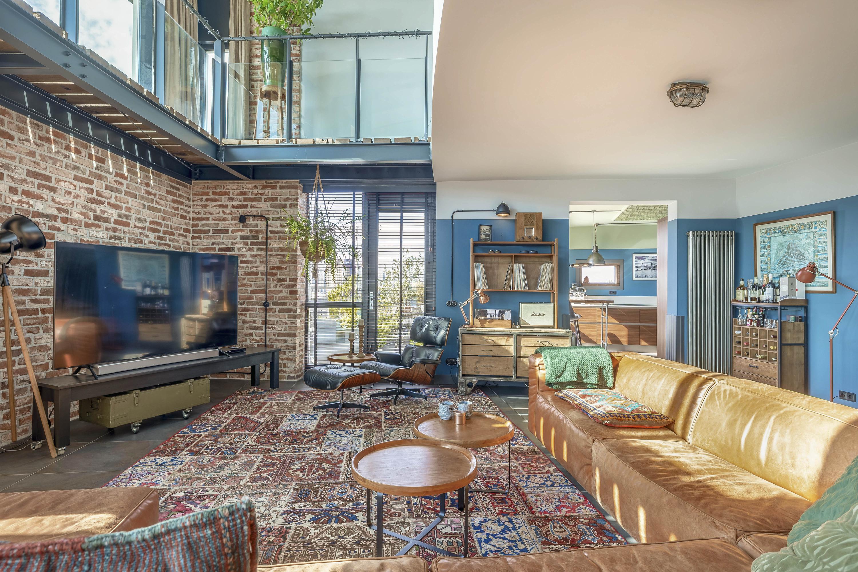 El interior destaca por sus techos altos, suelos de piedra italiana con calefacción radiante y un gran salón presidido por una ventana de siete metros de altura. La cocina semiabierta de 14 m², equipada con electrodomésticos Miele de alta gama y diseño en U, está concebida para disfrutar tanto de momentos tranquilos como de reuniones animadas. Dos dormitorios con baño en suite y una amplia oficina proporcionan flexibilidad para el trabajo y las visitas, con espacio para añadir más habitaciones en el nivel entresuelo. Cada estancia goza de abundante luz natural y vistas a la ciudad, equilibrando ambiente y discreción.
