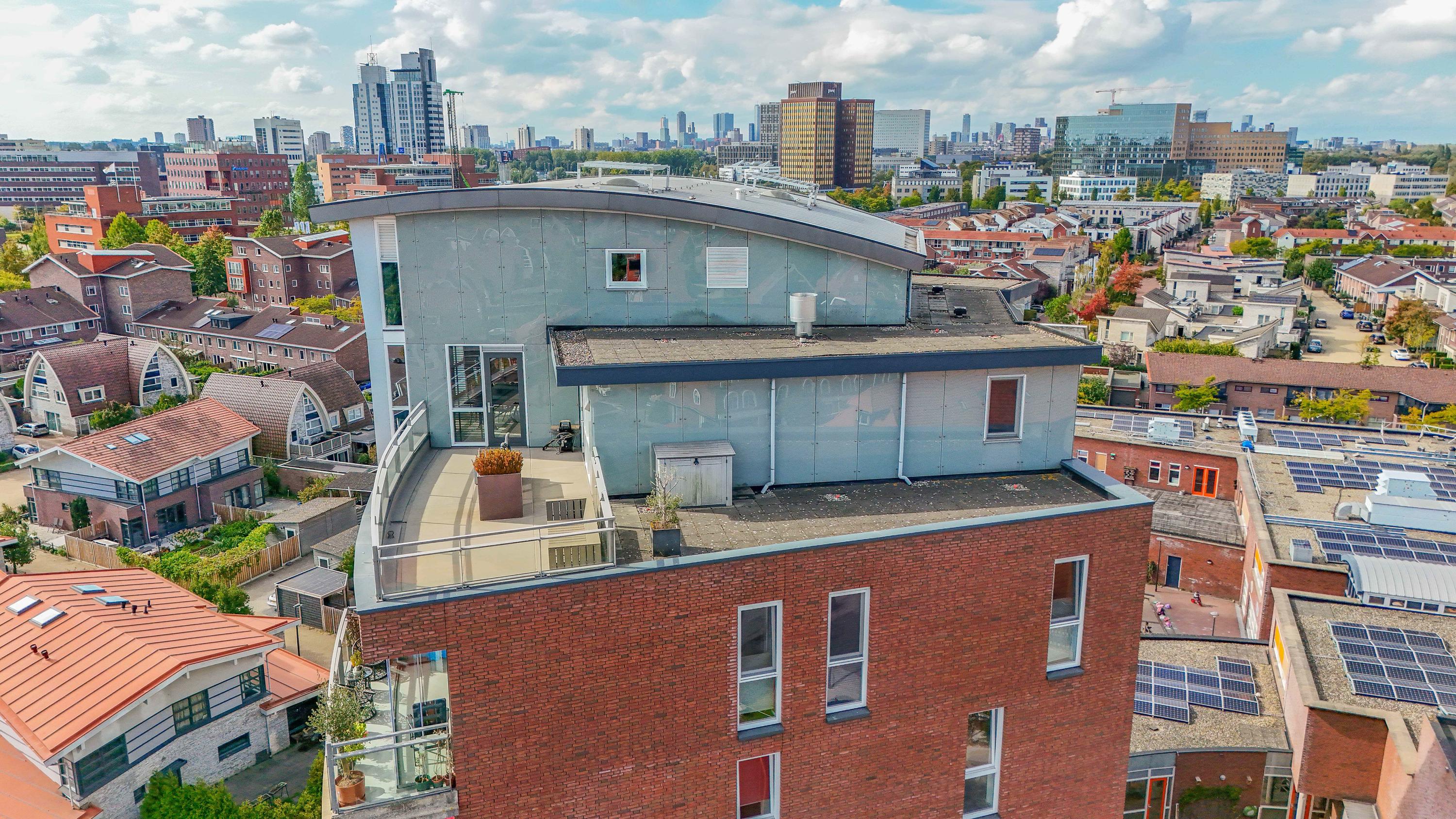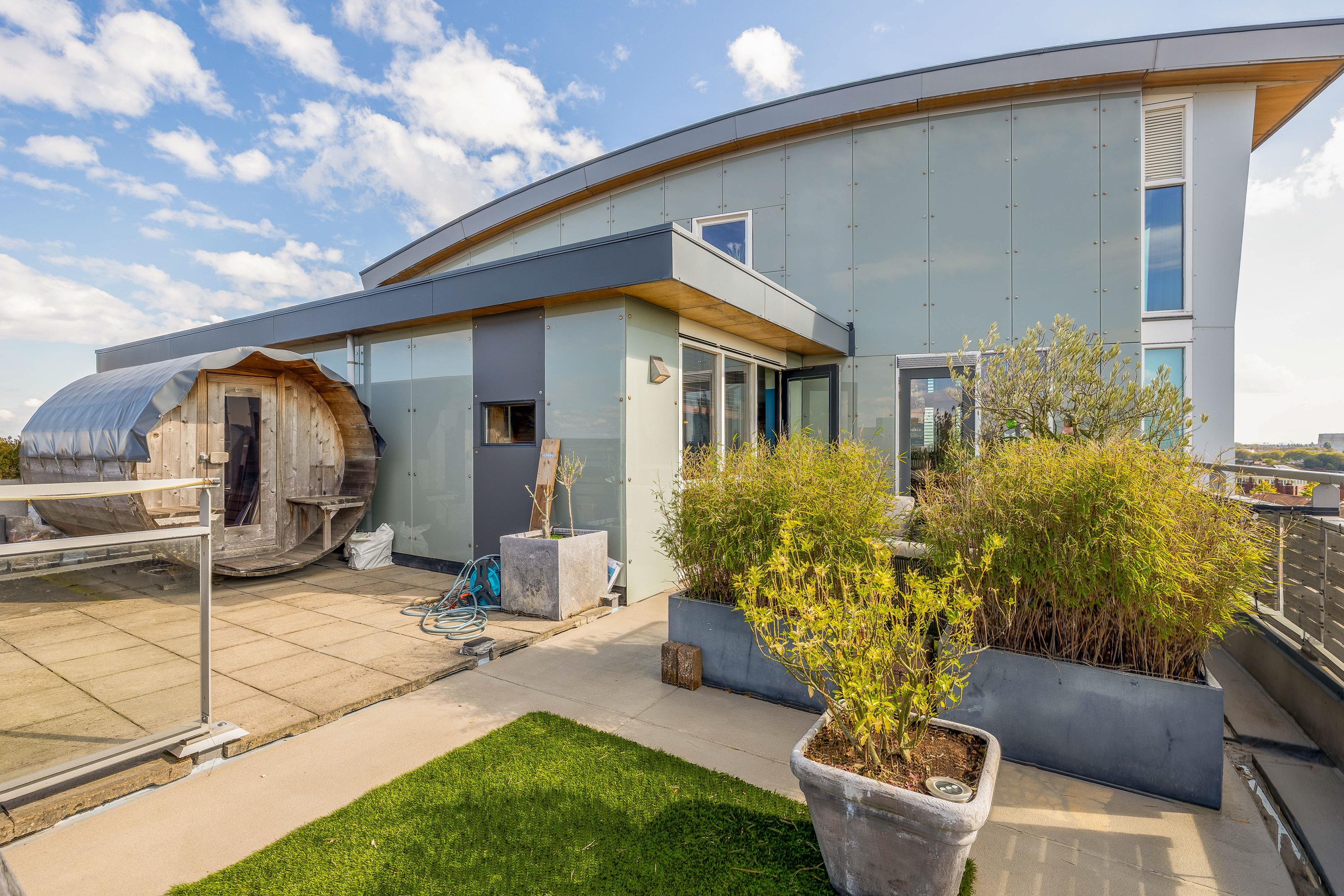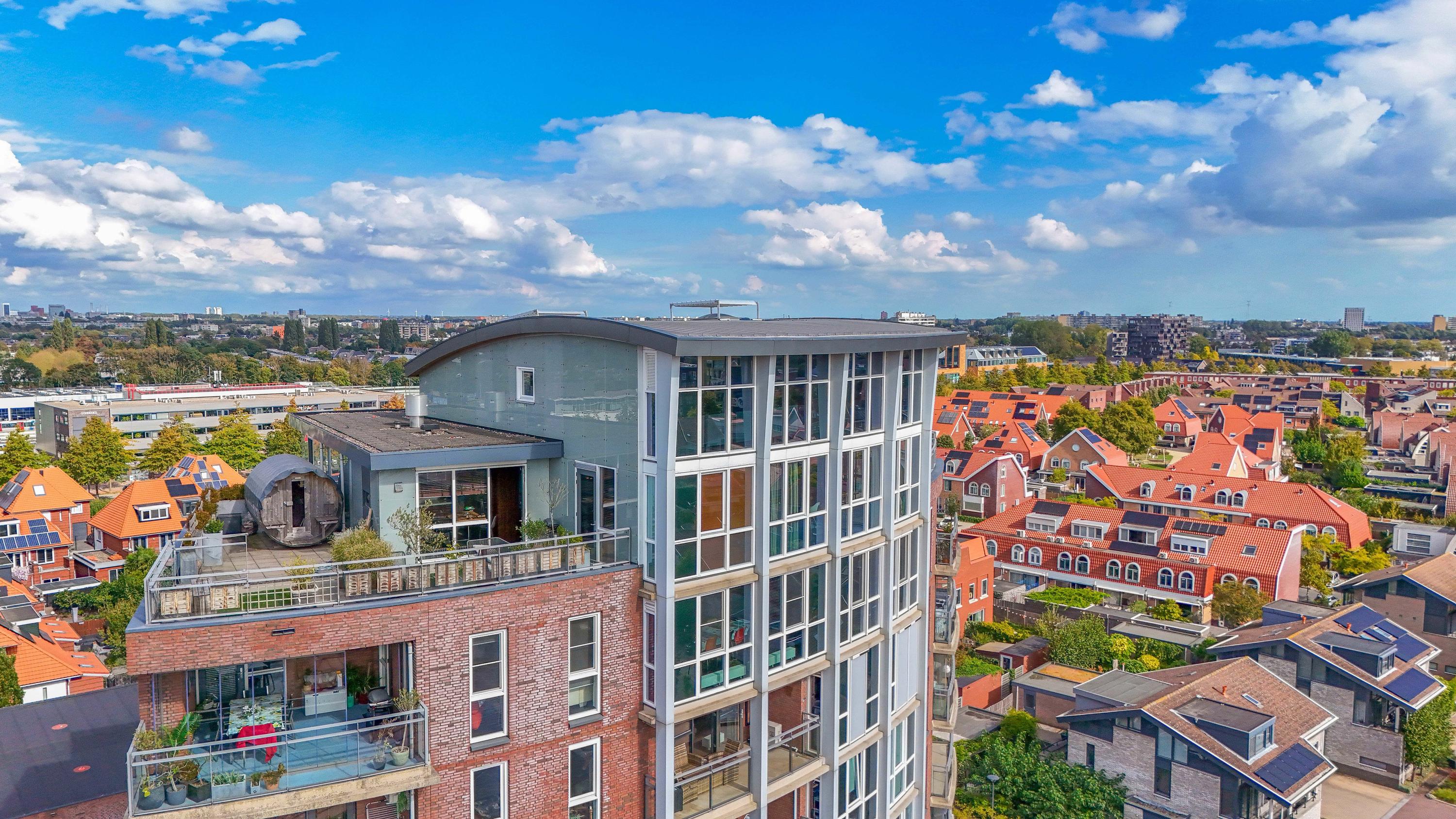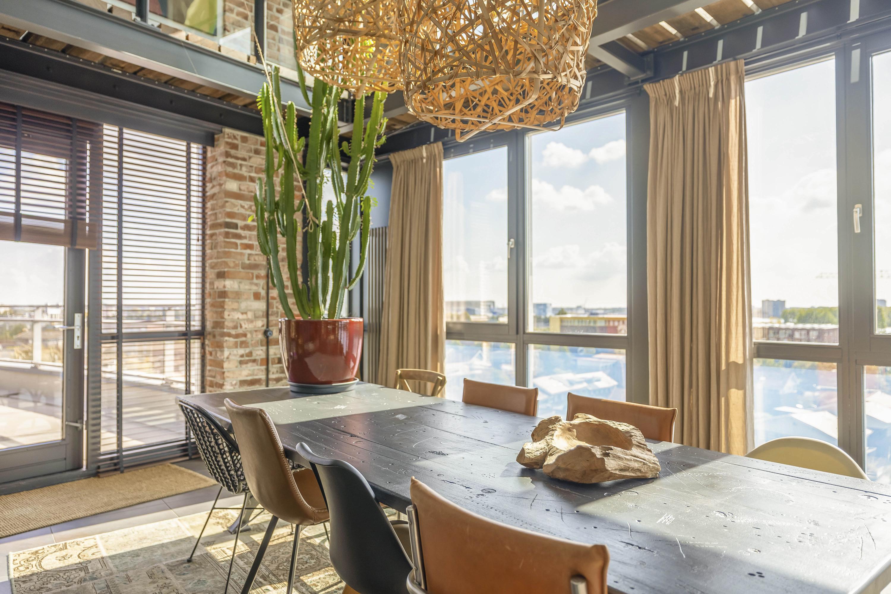 El ático Capelle aan den IJssel representa la máxima elevación urbana, con 251 m² distribuidos en las dos plantas superiores y una panorámica que abarca desde el vibrante perfil de la ciudad hasta el puente Brienenoord y el estadio De Kuip. El diseño de este exclusivo ático doble ofrece una rara conjunción de amplitud, intimidad y serenidad, sin vecinos inmediatos y con dos terrazas que suman 98 m², orientadas para aprovechar el sol tanto de mañana como de tarde.